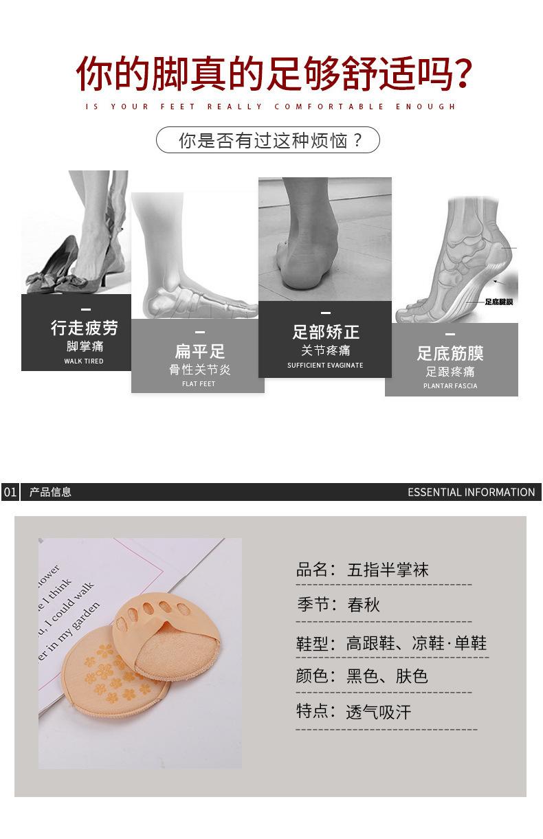 Calcetines náuticos para mujer, calcetines de cinco dedos, invisibles, para antepié, tacones altos, calcetines para mujer, calcetines para la planta del pie, media palma, anti-talón