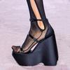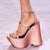 Sandalias de cuña con punta cuadrada y tiras finas de comercio exterior, talla grande europea y americana, zapatos de tacón alto de piel de oveja con tiras de una palabra, 2022