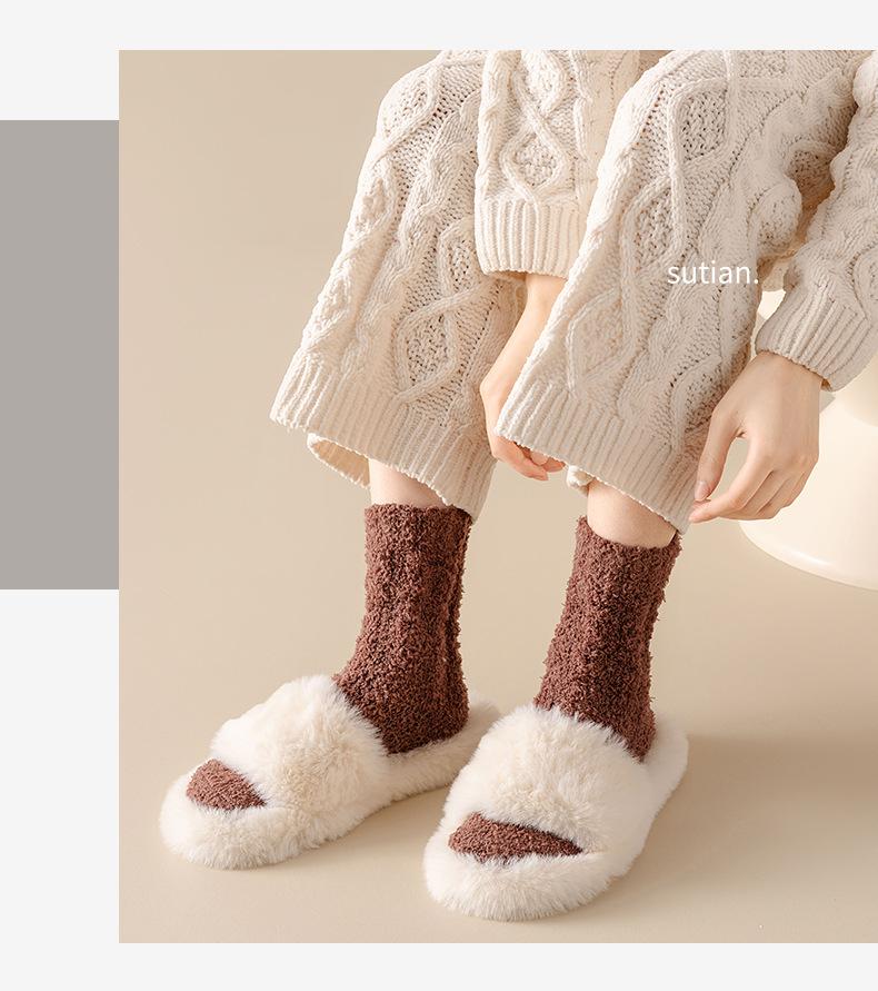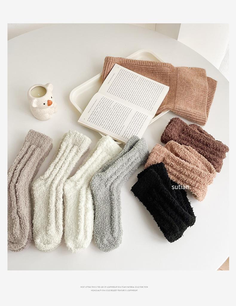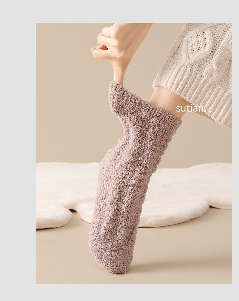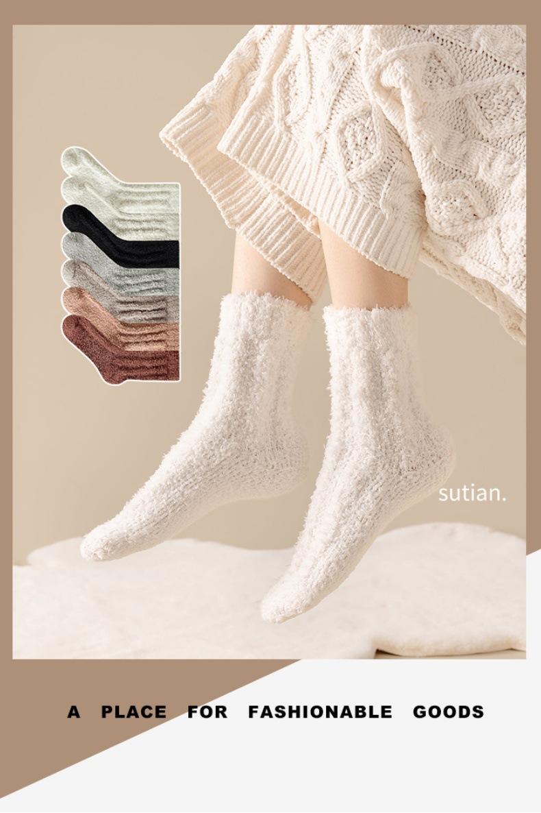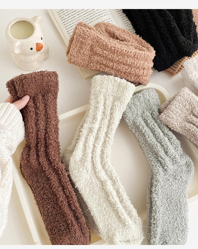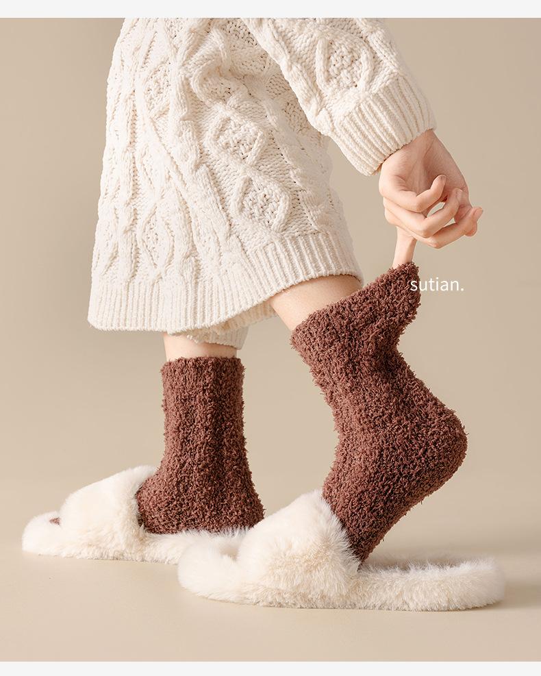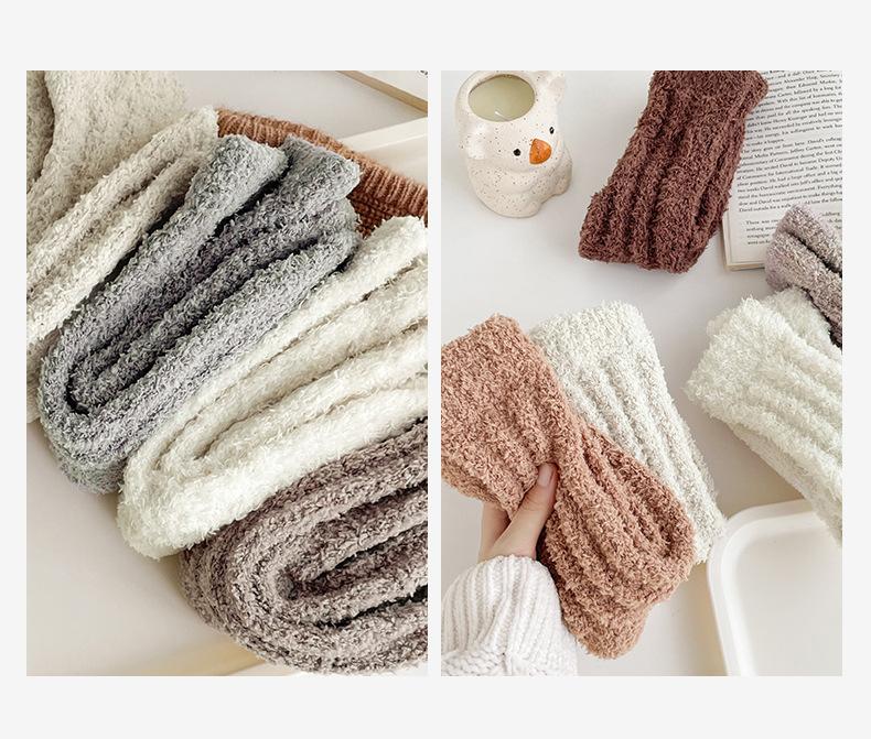 Calcetines de mujer de otoño e invierno de forro polar coral grueso con forro polar, cálidos, transpirables, absorbentes del sudor, de tubo largo, de felpa de invierno para mujer.