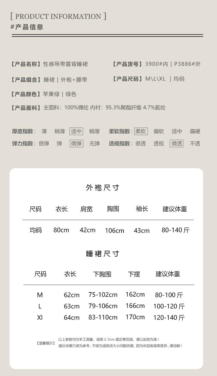 3900 Apple Green (nightdress), P3886 Green (Robe + Belt)