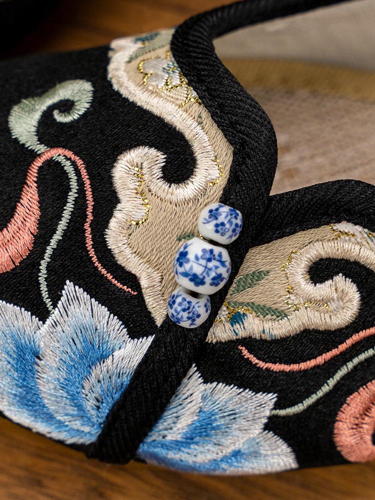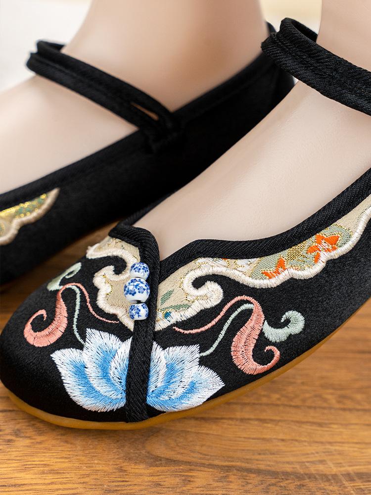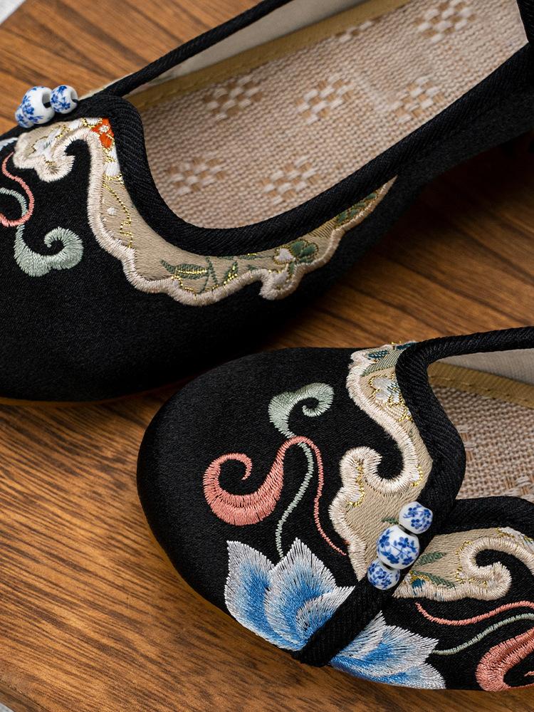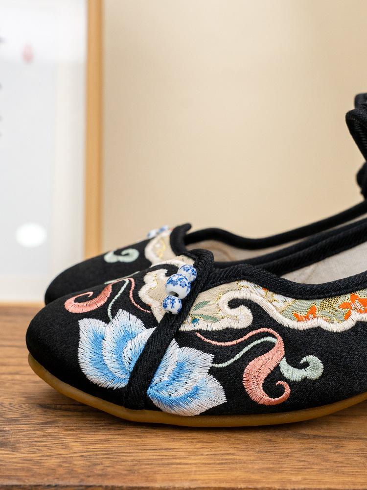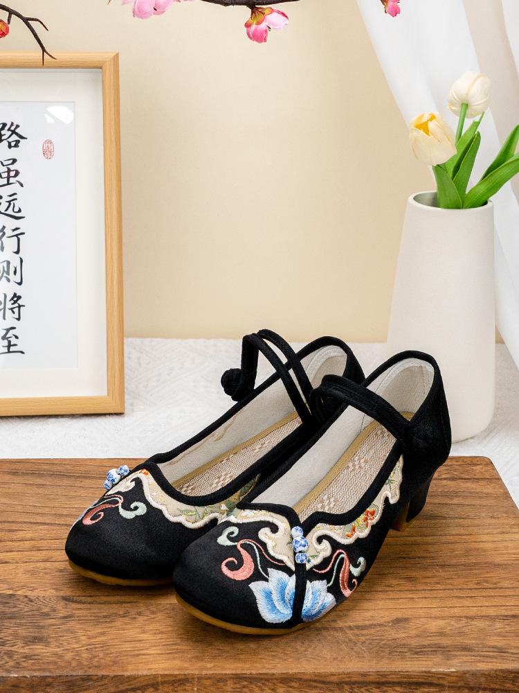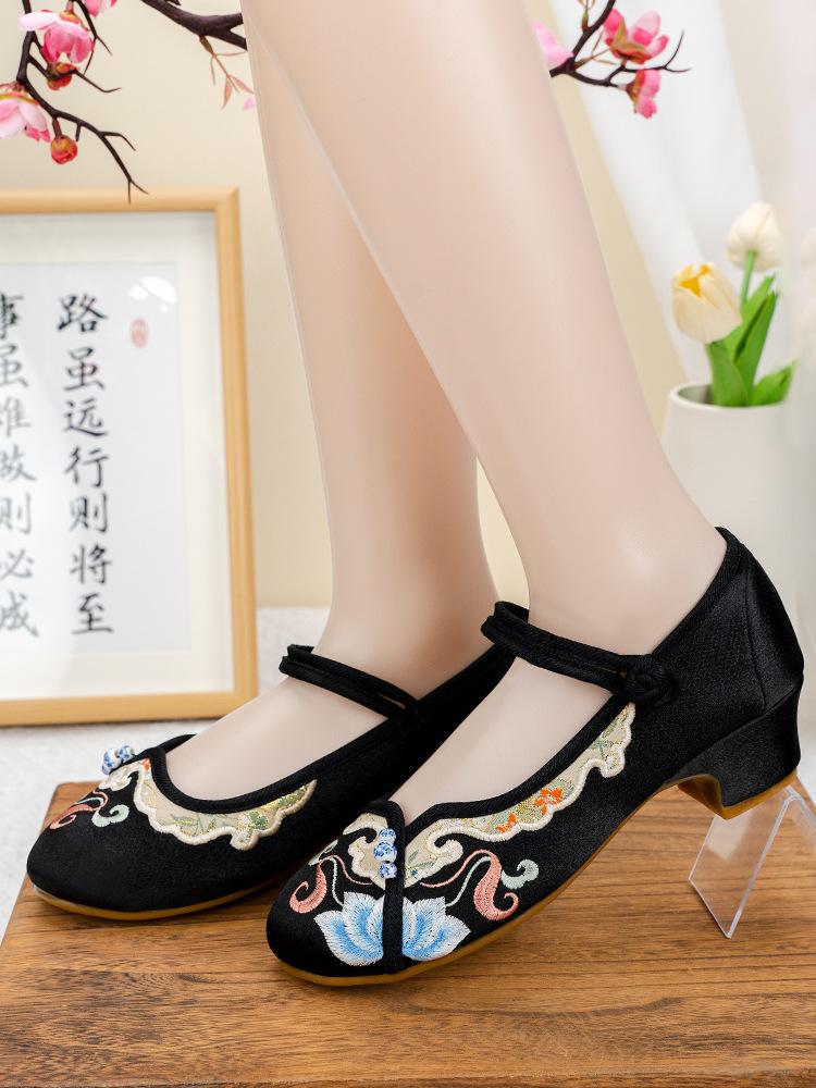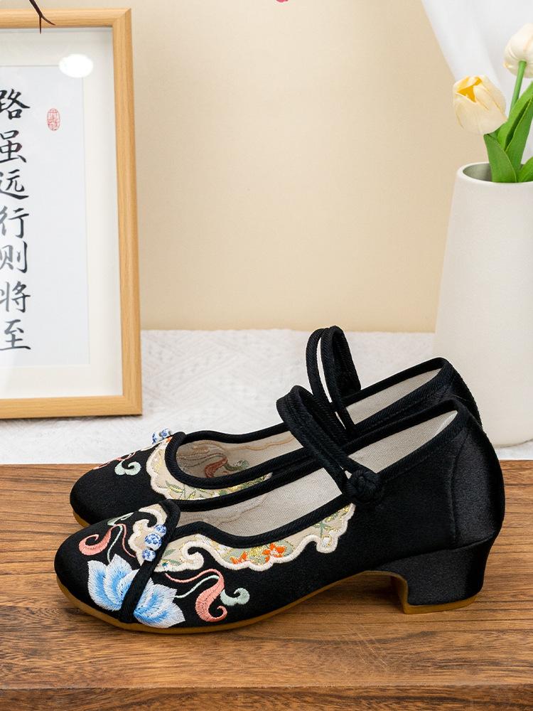 Zapatos bordados Hanfu de otoño, nuevos zapatos cheongsam de una sola capa de estilo nacional retro bordados, cómodos zapatos de tela transpirables para mujer
