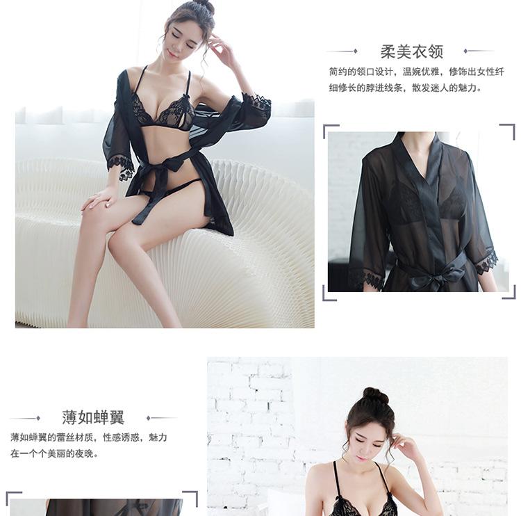 Yiyou ropa interior sexy bata de perspectiva sexy encaje sexy gasa conjunto cárdigan pijamas tentación caliente comercio exterior mayoreo