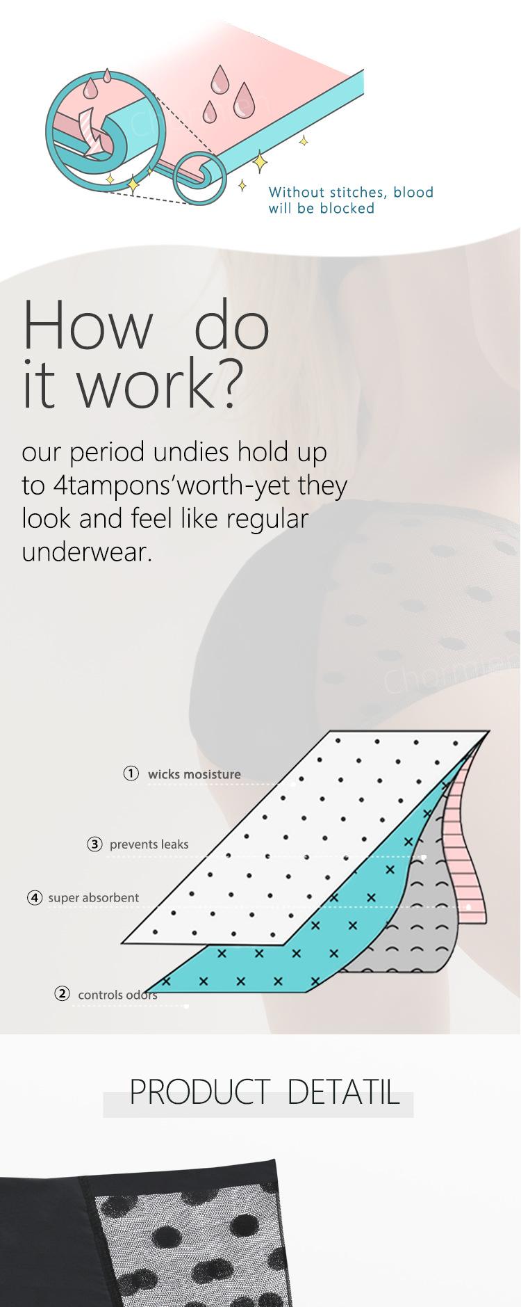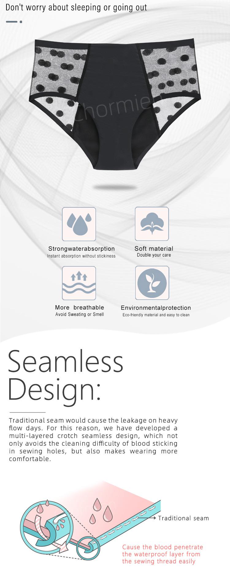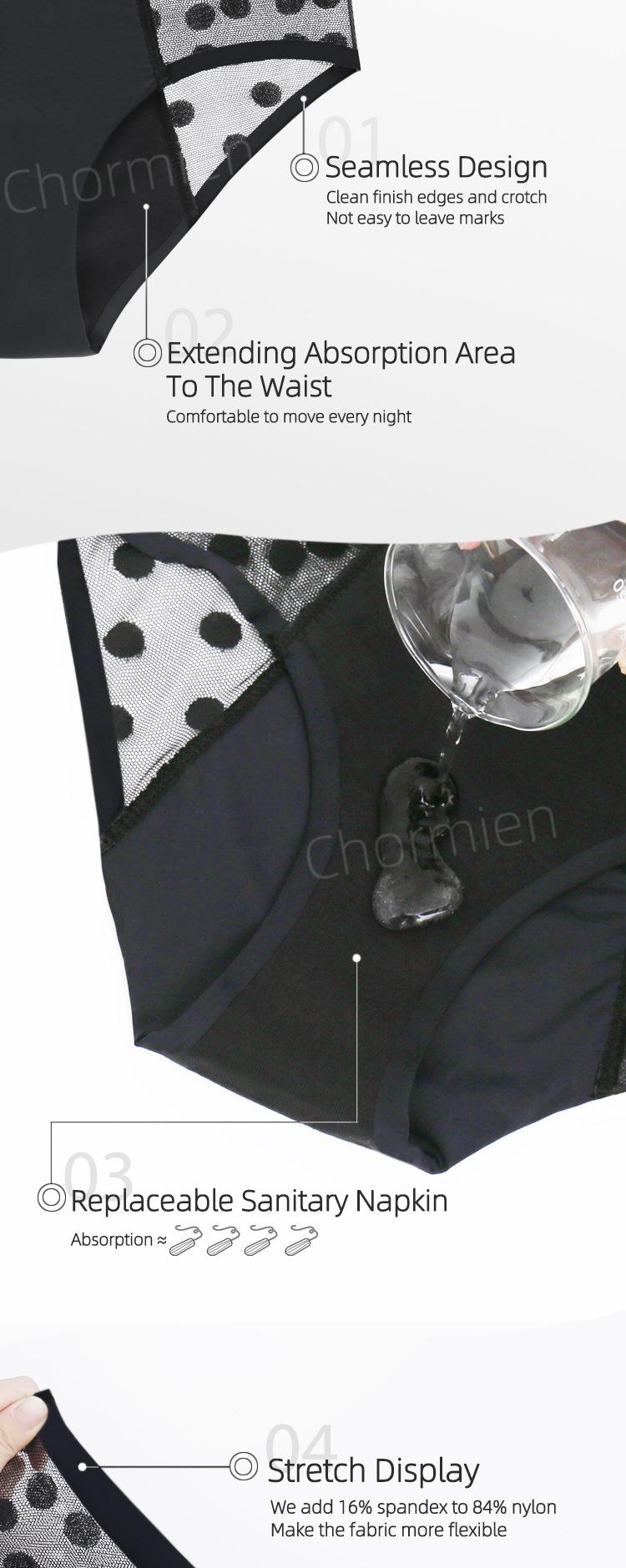 Ropa interior fisiológica a prueba de fugas de cuatro capas adhesiva de encaje sexy para mujeres europeas y americanas transfronterizas, compresas no sanitarias, pantalones de tía, parte delantera y trasera