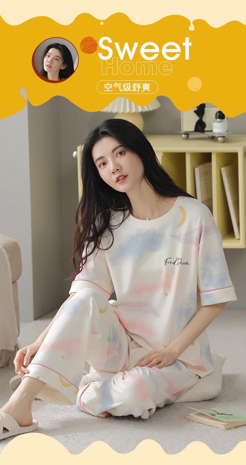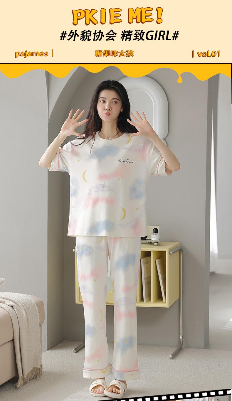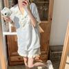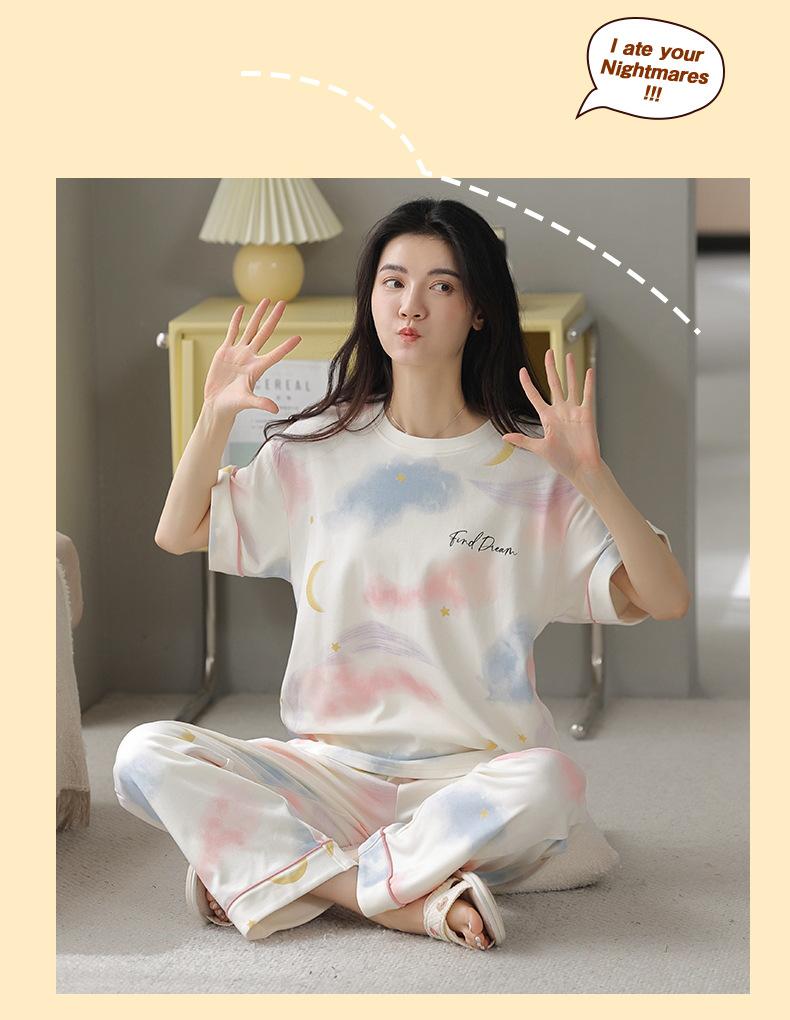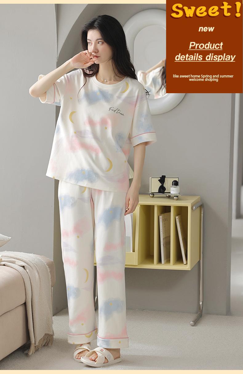 Pijama Nuevo para Mujer 2025, Pantalones de Manga Corta, Cuello Redondo Holgado, Ropa para el Hogar de Estilo Dulce, Traje Delgado de Algodón Puro