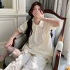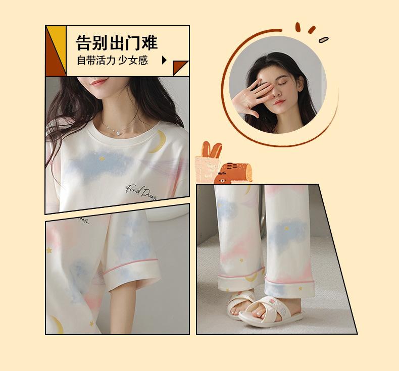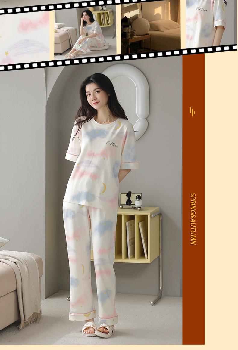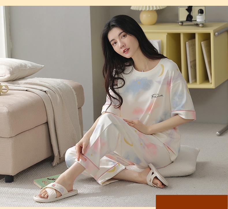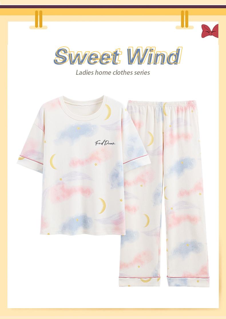 Pijama Nuevo para Mujer 2025, Pantalones de Manga Corta, Cuello Redondo Holgado, Ropa para el Hogar de Estilo Dulce, Traje Delgado de Algodón Puro