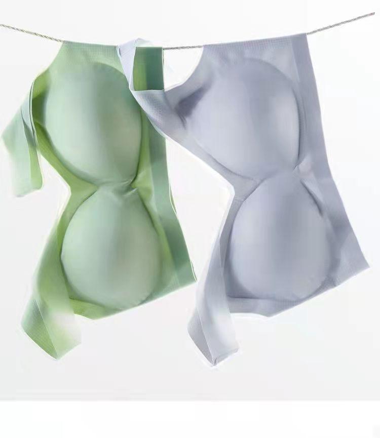 Ropa Interior de Verano Ultrafina de Seda de Hielo Sin Costuras para Mujer, Estilo Tank Top de Una Pieza Transpirable, Minimiza Busto Grande, Sujetador para Dormir