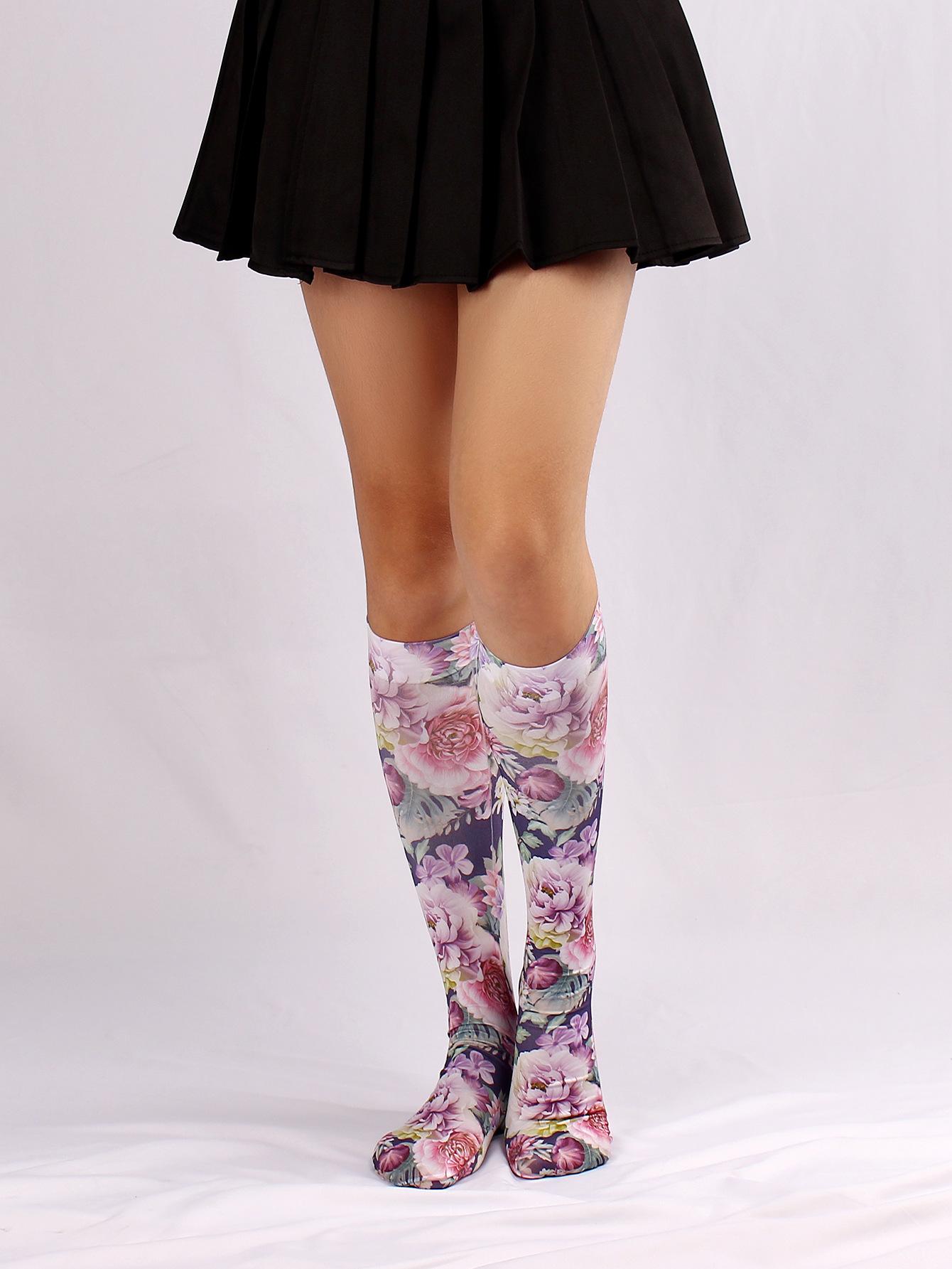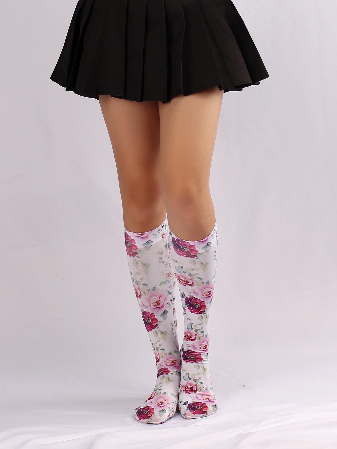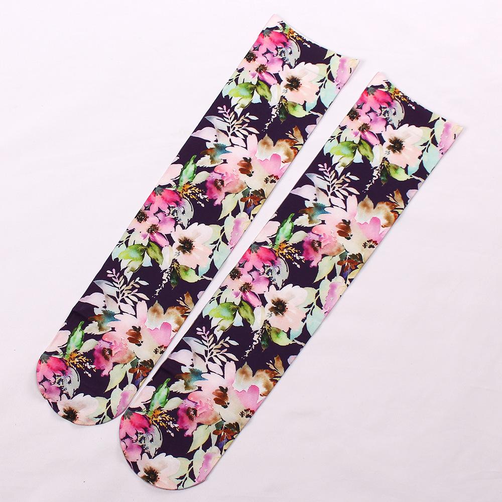 Calcetines de media caña estampados al por mayor transfronterizos calcetines de pantorrilla con flores calcetines hasta la rodilla alta elasticidad cómodos transpirables ultradelgados calcetines altos verano