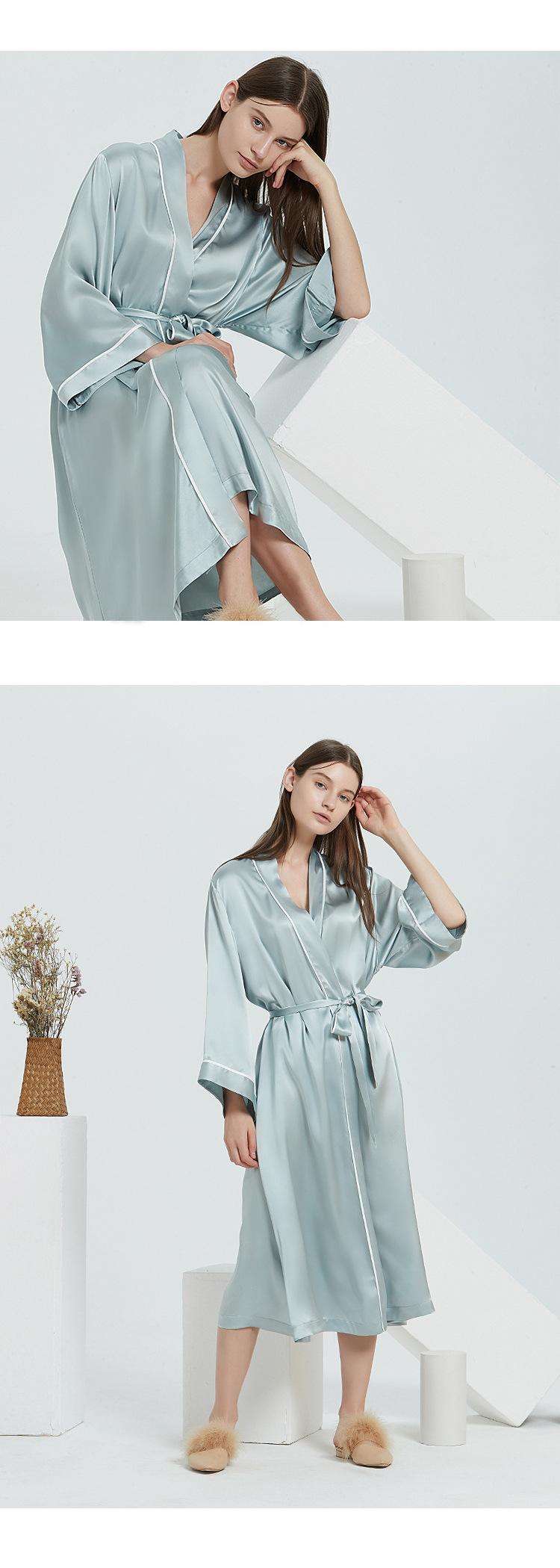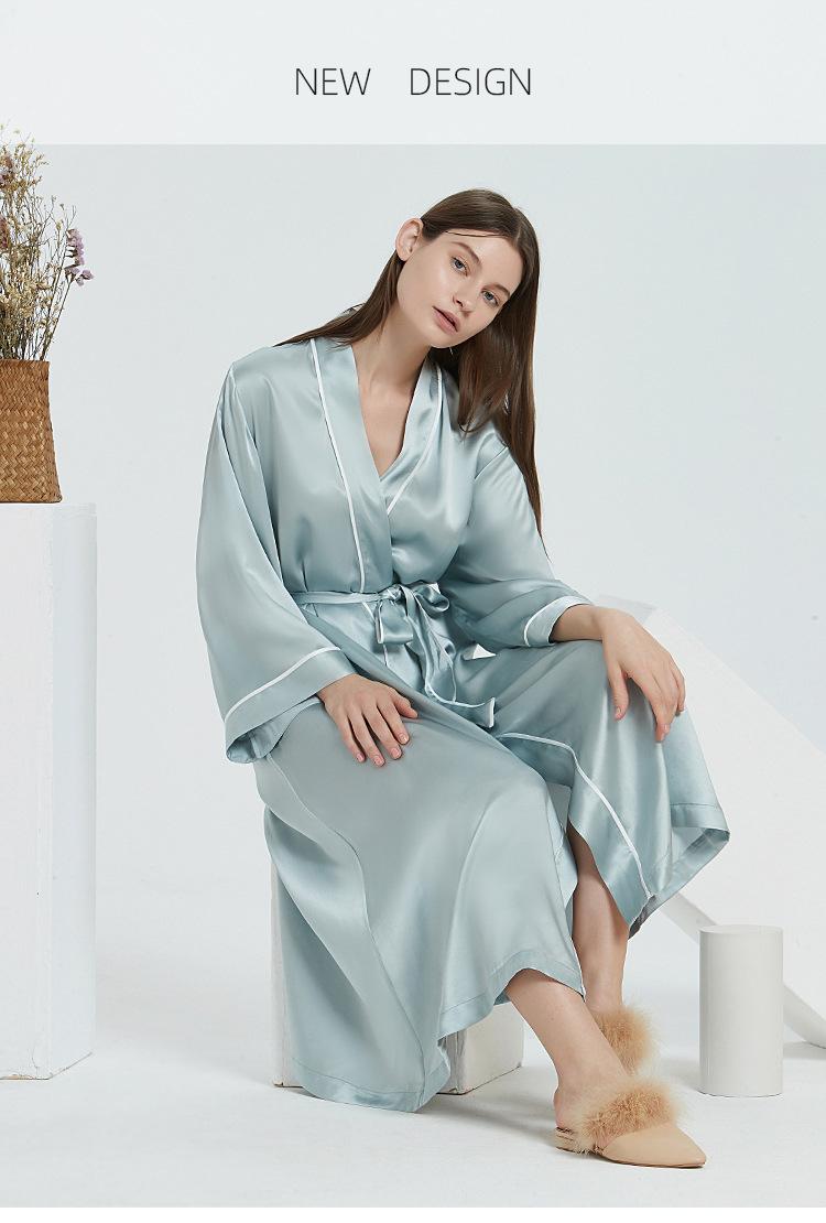 Camisón de seda, pijama largo para mujer, moda europea y americana, con cordones, 100% seda, conjunto de bata de seda, venta al por mayor