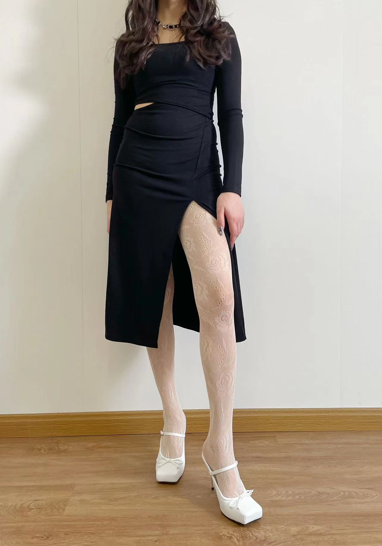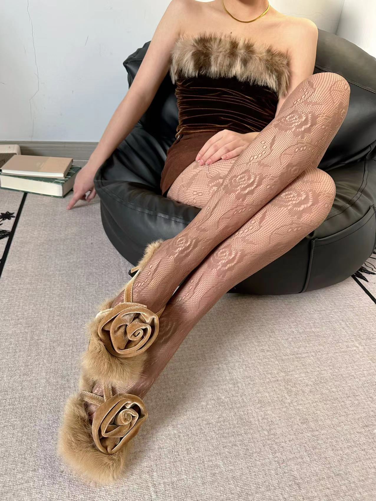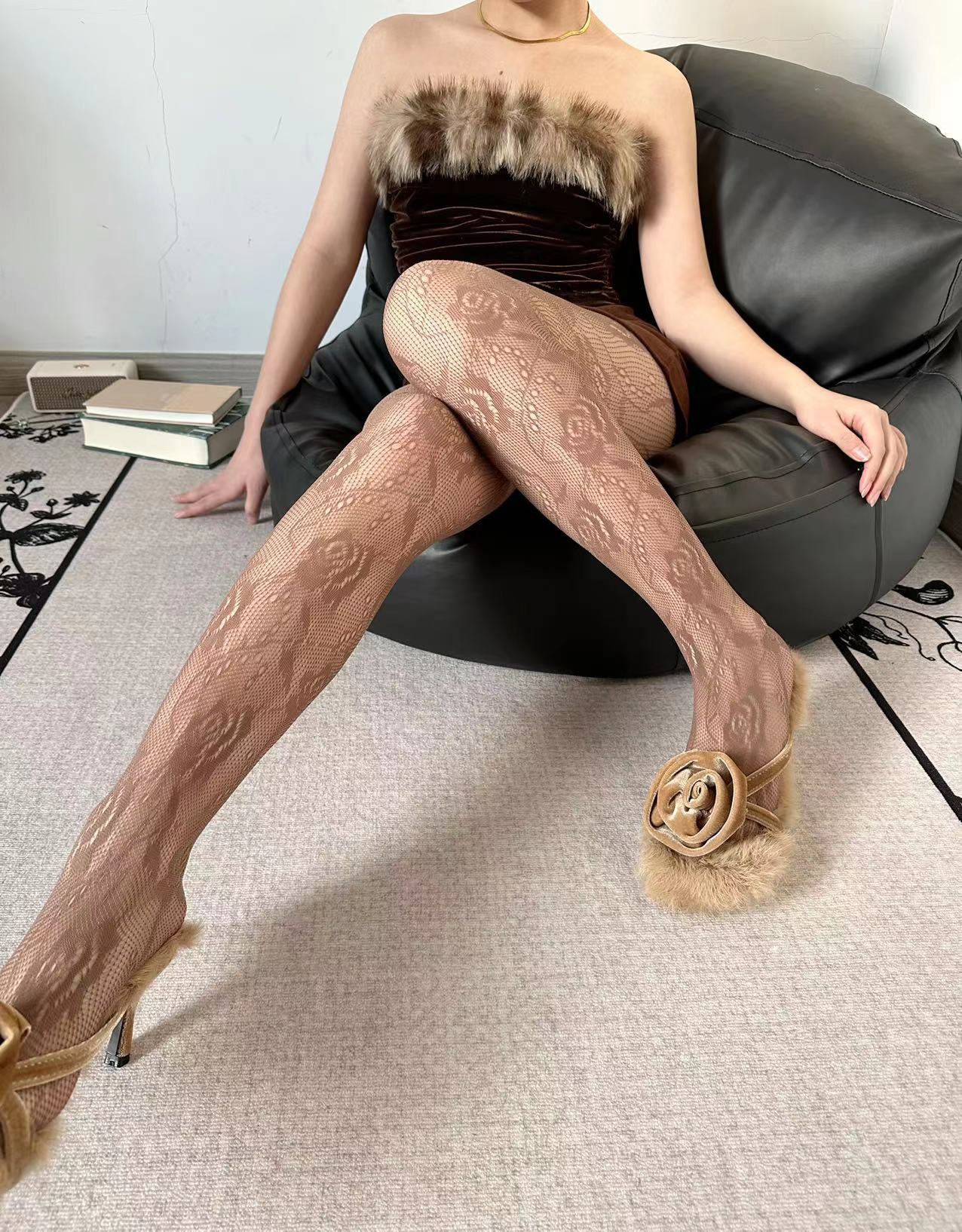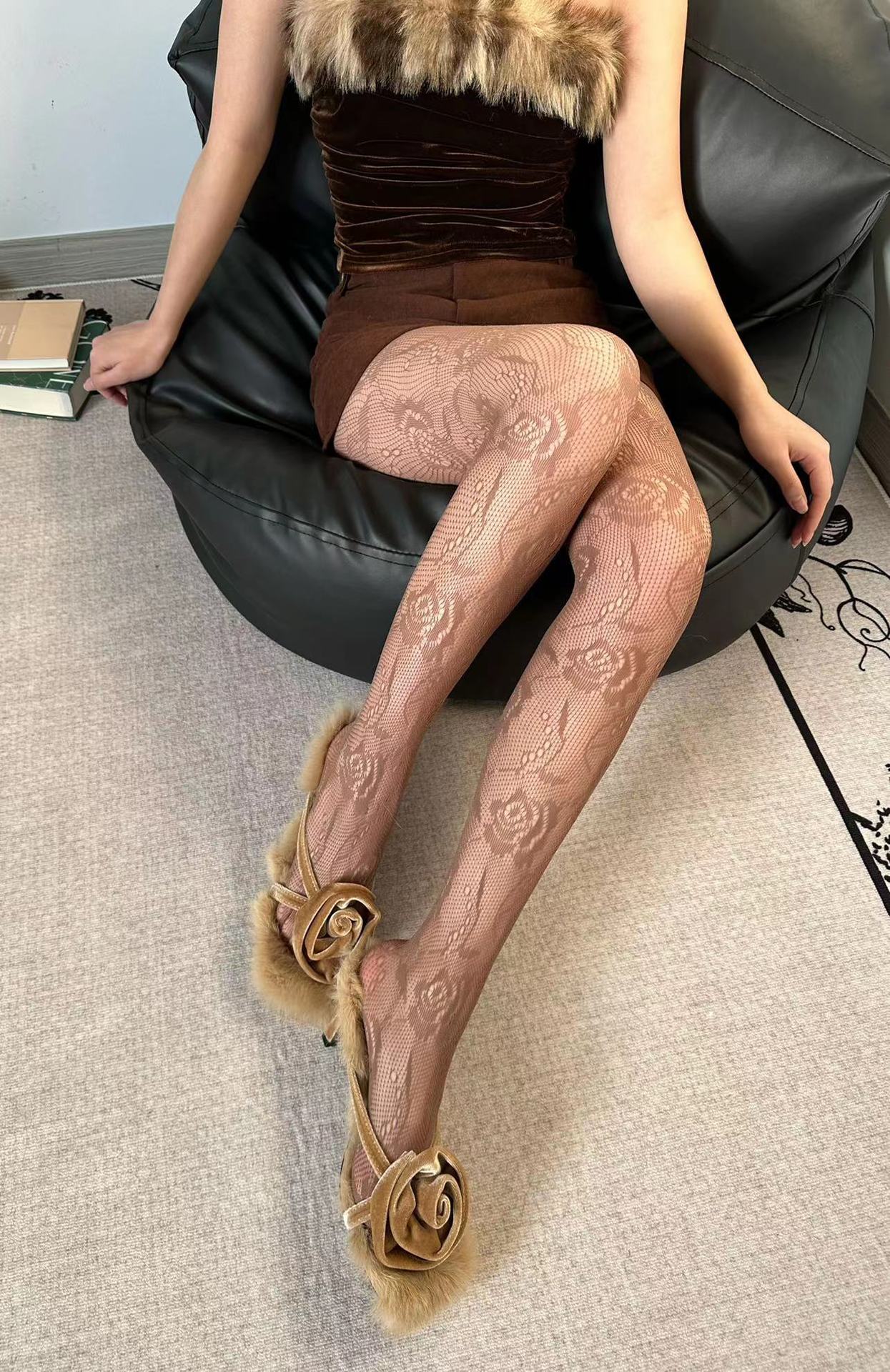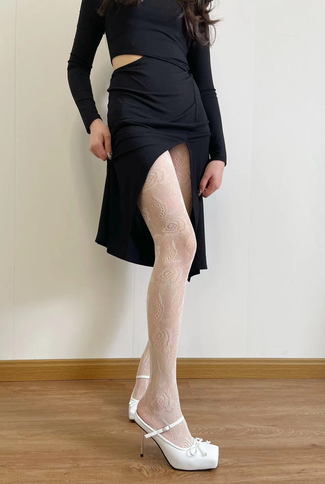 Calcetines de red de jacquard con huecos de rosas de estilo chino retro nuevos de primavera y verano, medias de seda antienganches para mujer