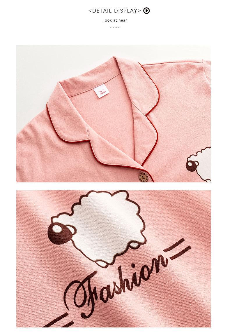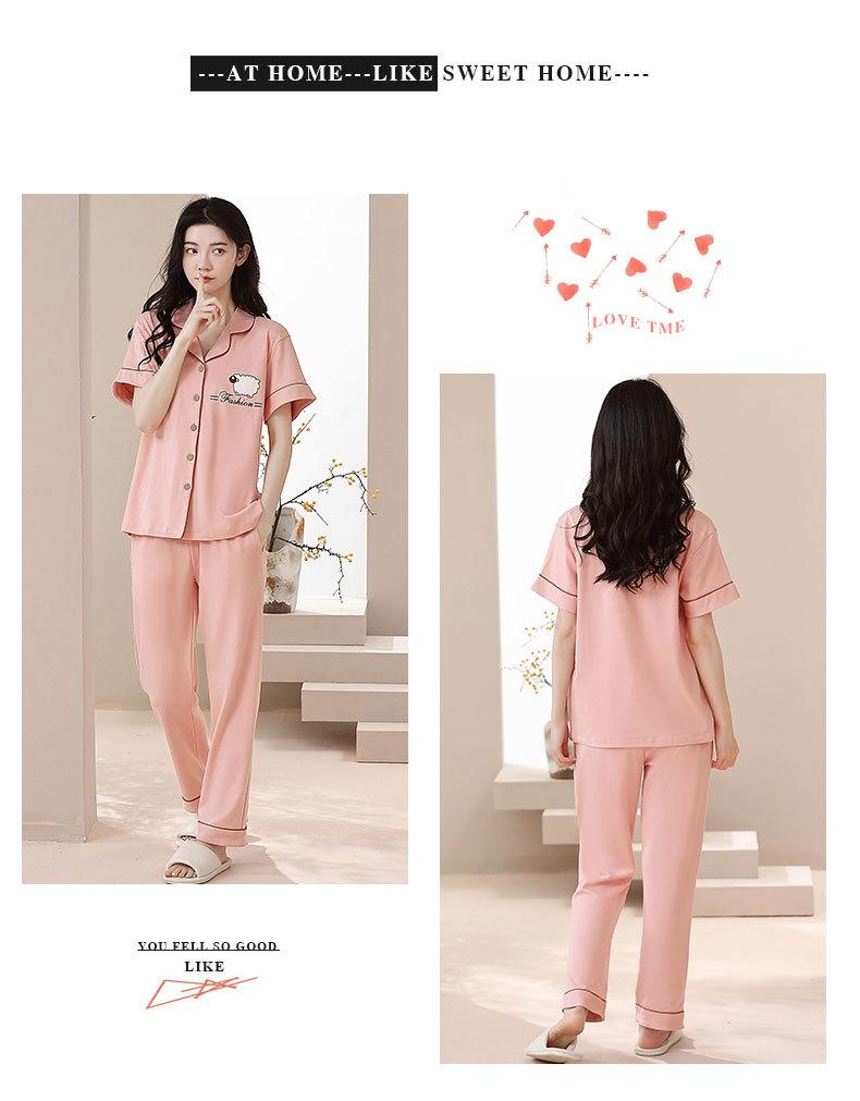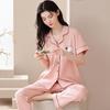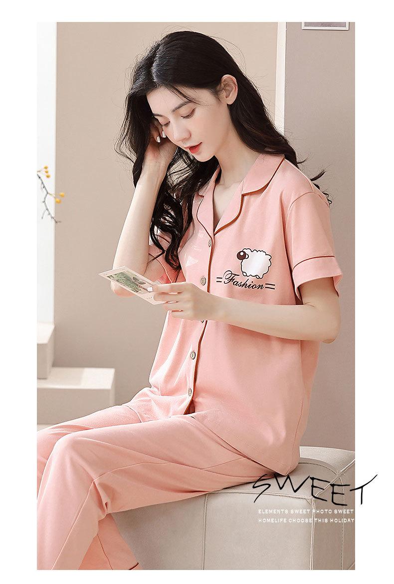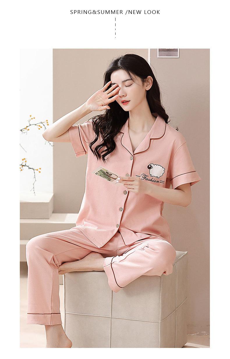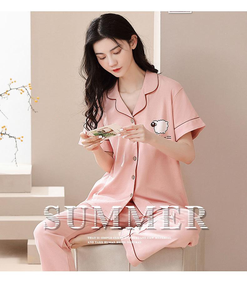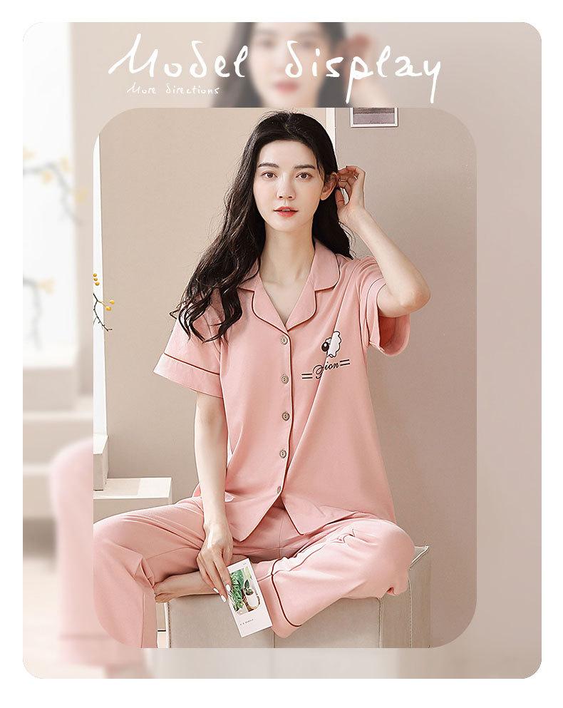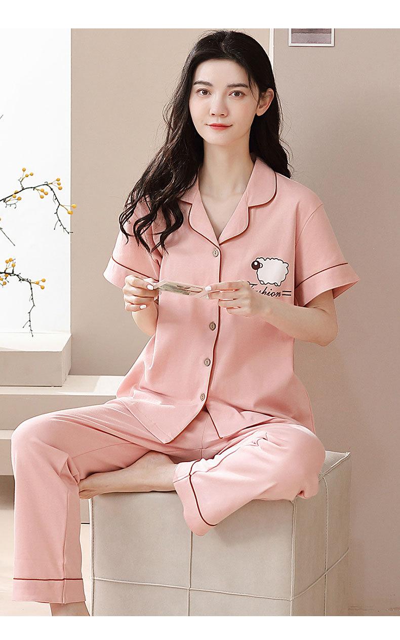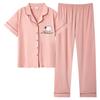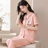 Pijama de Algodón para Mujer Traje de Cárdigan de Manga Corta Verano Delgado Lindo Dibujos Animados Casual Ropa de Casa para Estudiante Puede Salir