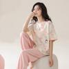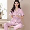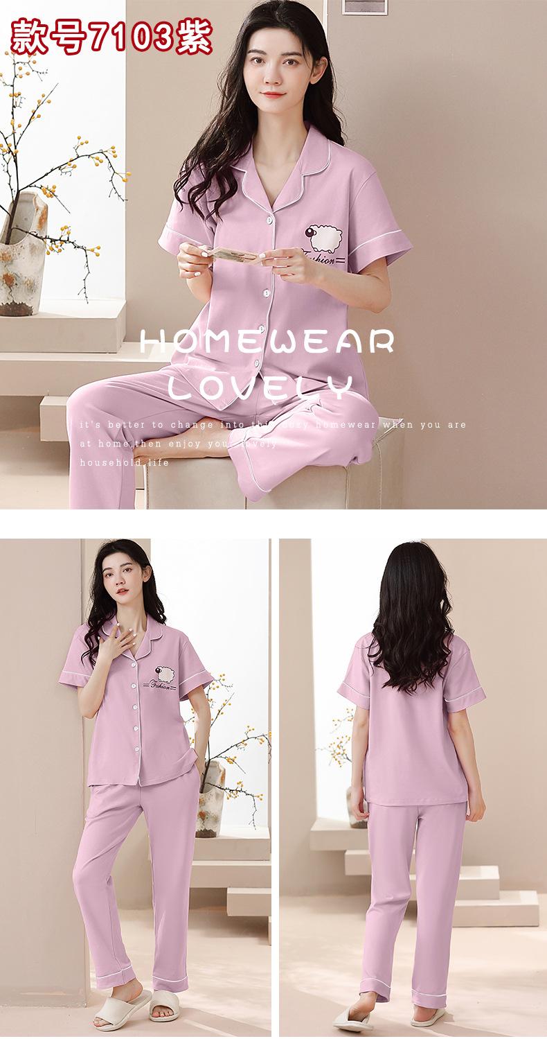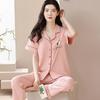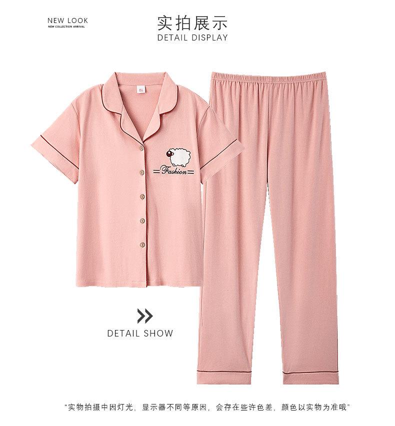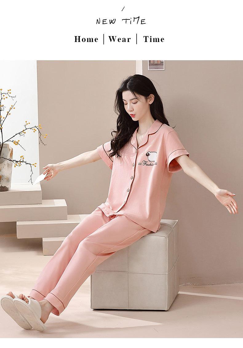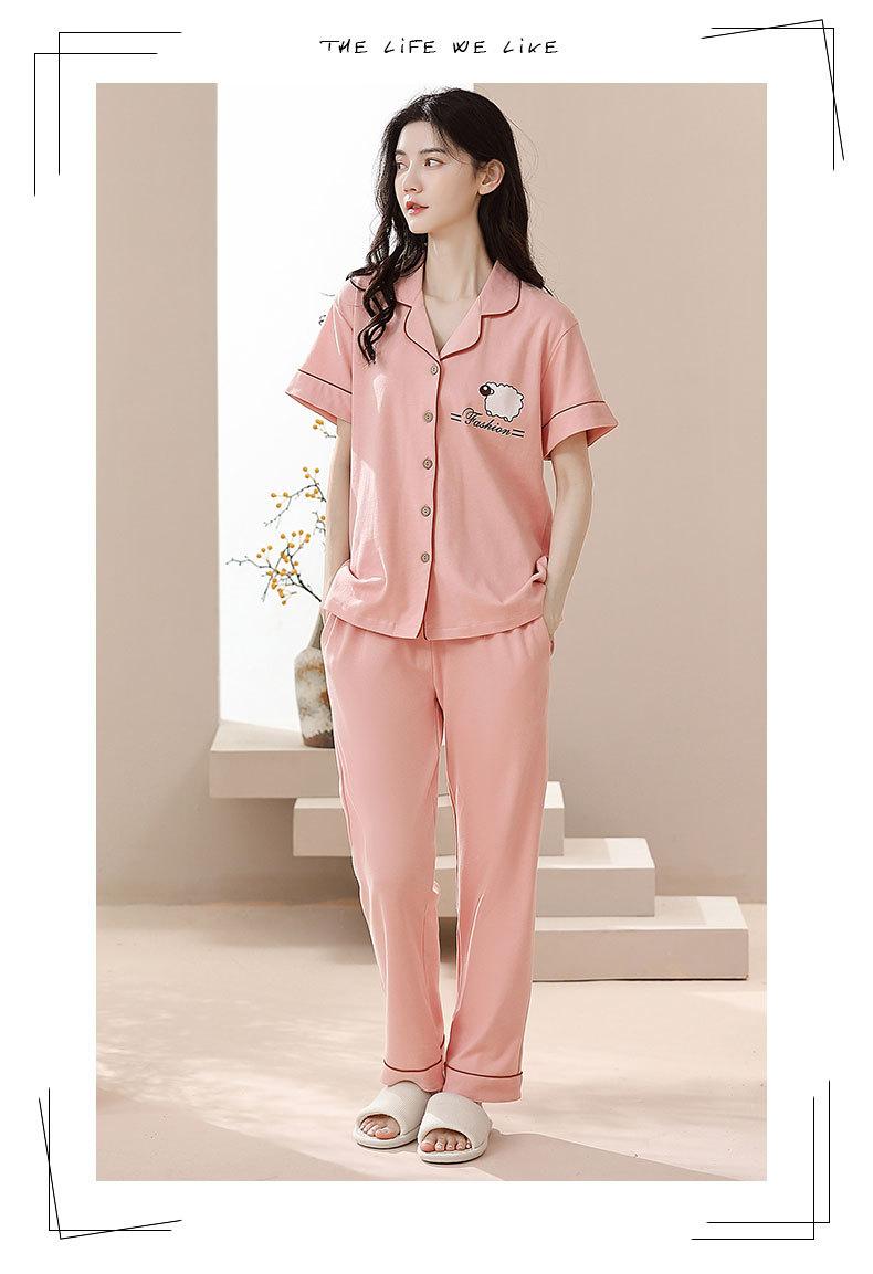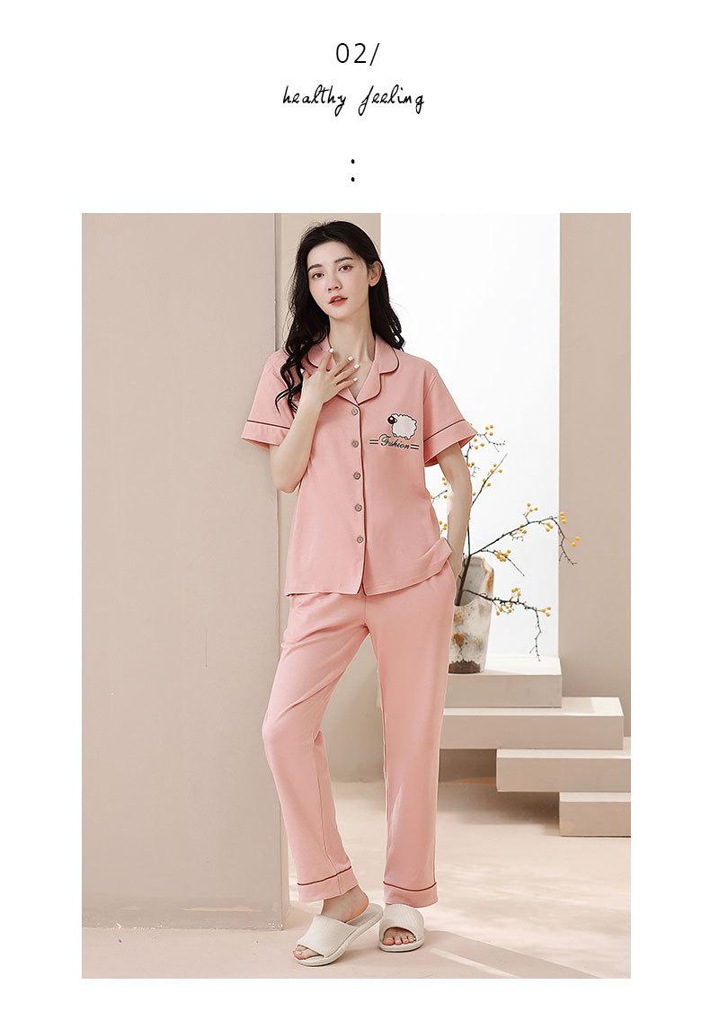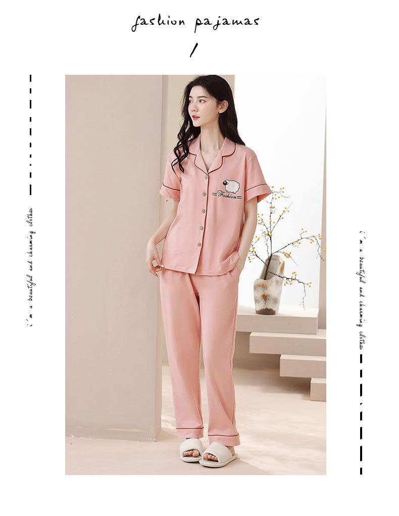 Pijama de Algodón para Mujer Traje de Cárdigan de Manga Corta Verano Delgado Lindo Dibujos Animados Casual Ropa de Casa para Estudiante Puede Salir