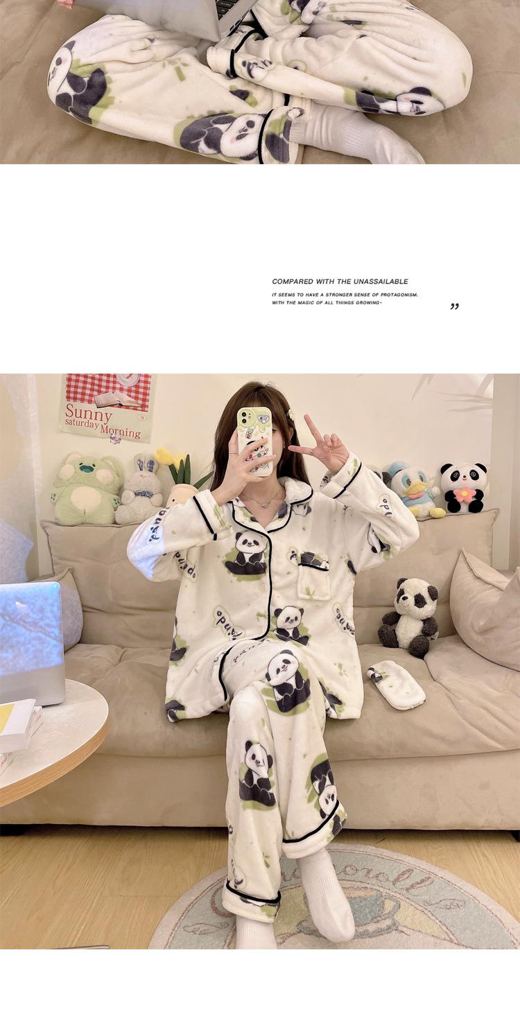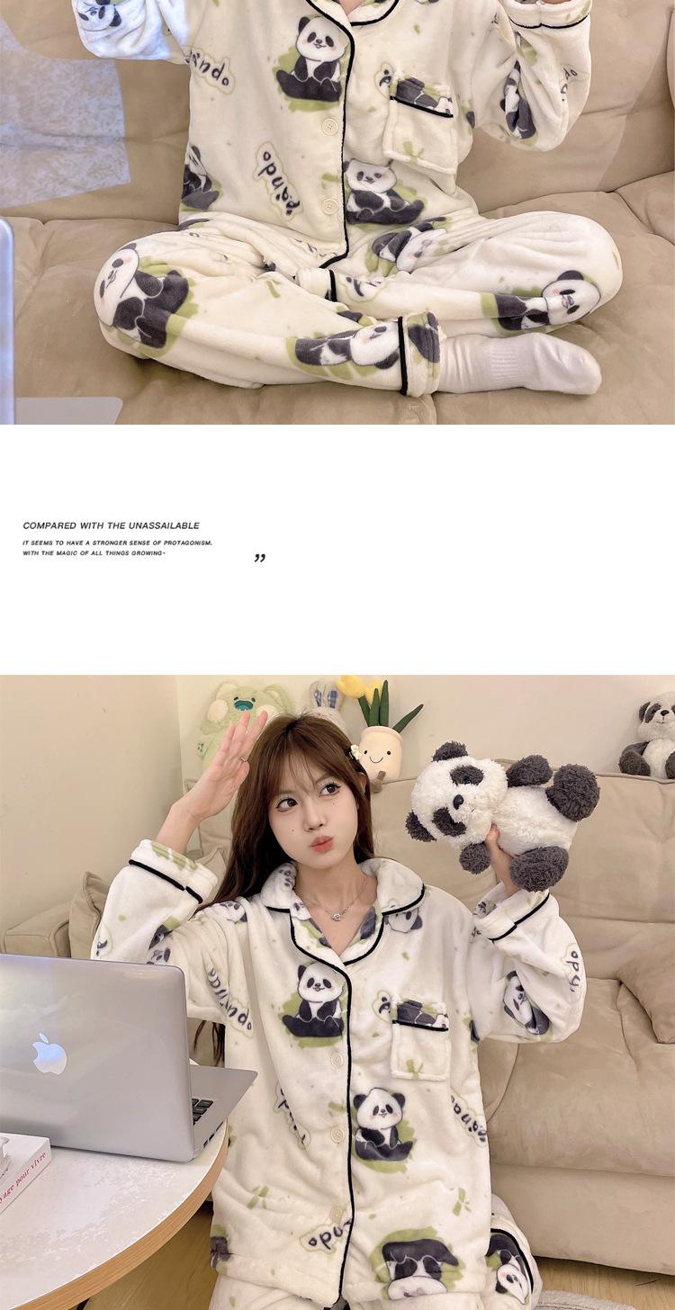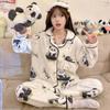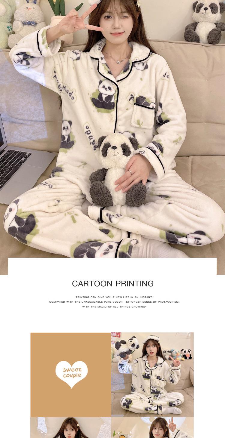 Pijama de franela con diseño de panda perezoso para niña, otoño e invierno, nuevo conjunto con forro polar, ropa gruesa para el hogar, venta al por mayor