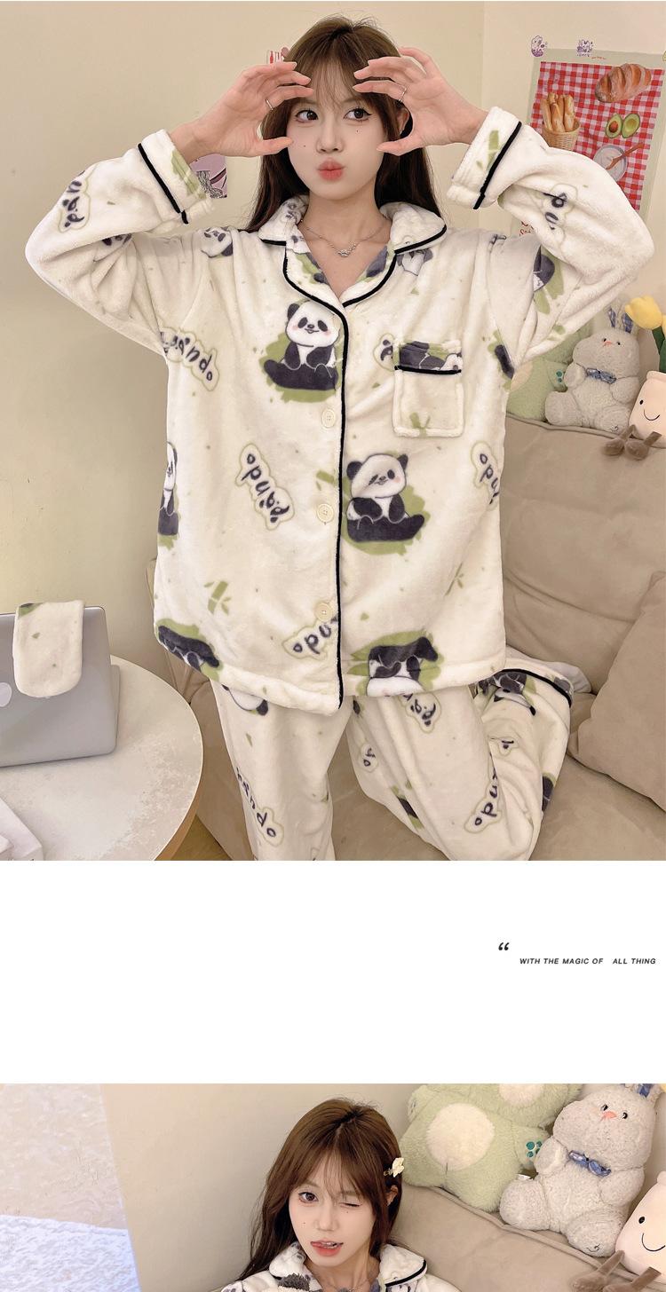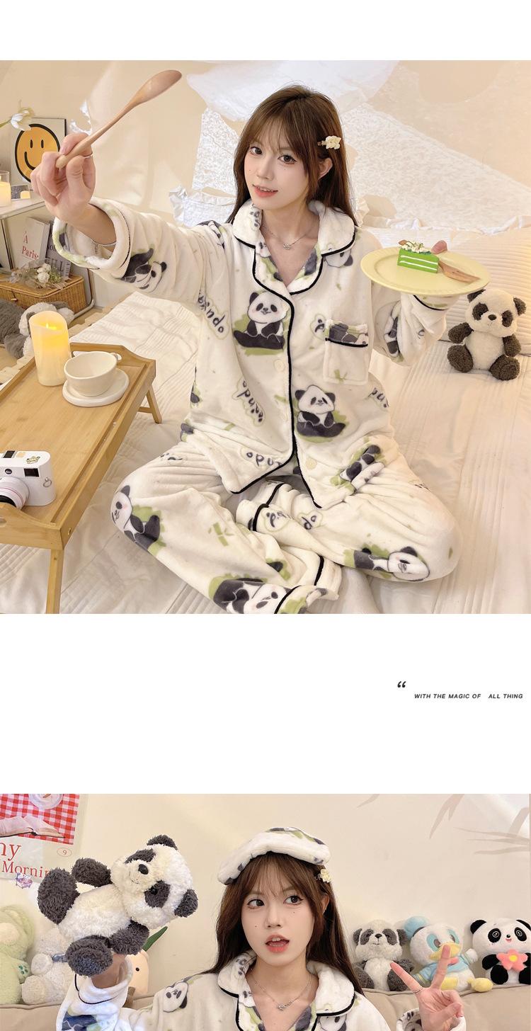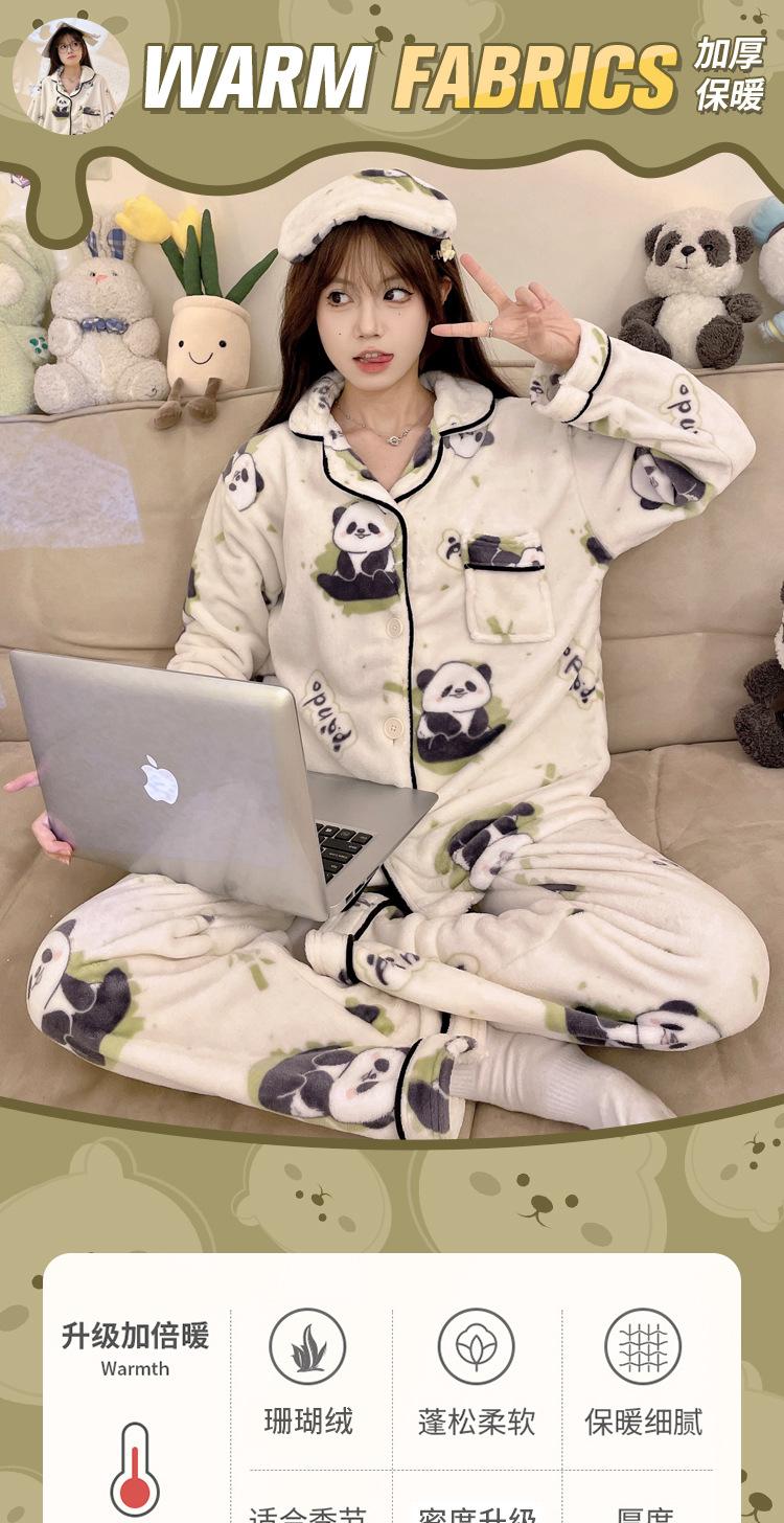 Pijama de franela con diseño de panda perezoso para niña, otoño e invierno, nuevo conjunto con forro polar, ropa gruesa para el hogar, venta al por mayor