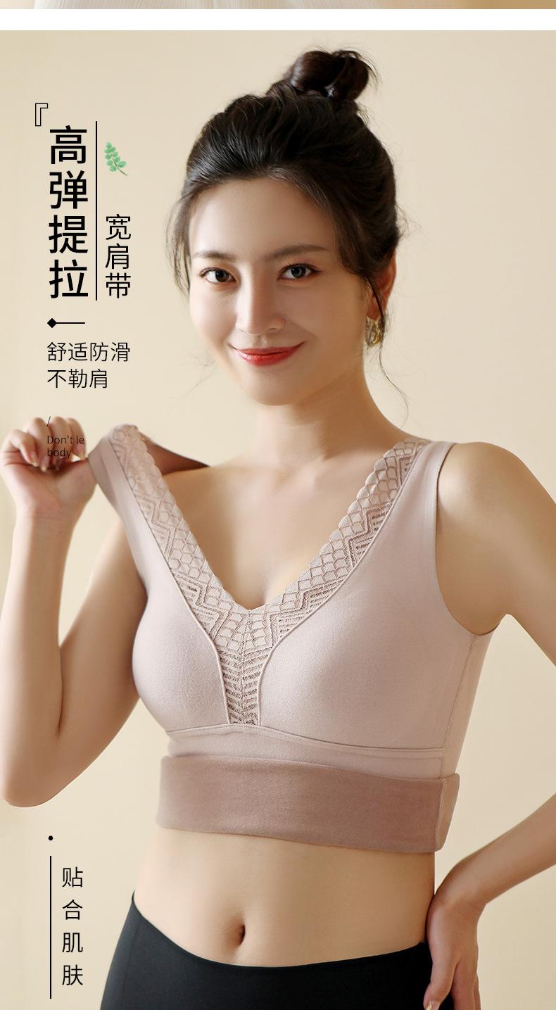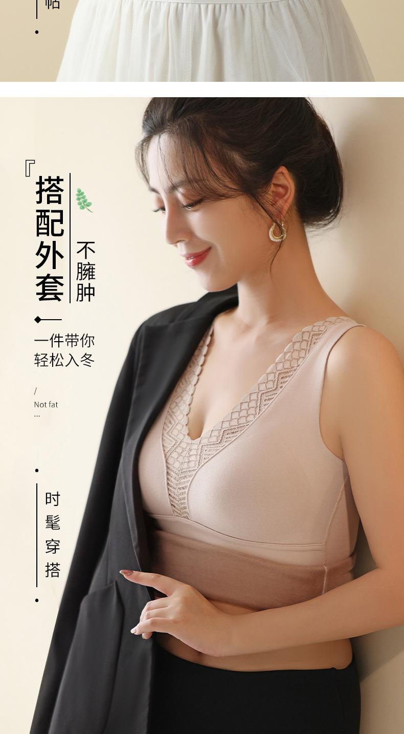 Chaleco térmico de terciopelo para mujer, otoño e invierno, forrado de vellón, grueso, para usar debajo, con almohadilla en el pecho, encaje sexy, ropa abrigadora