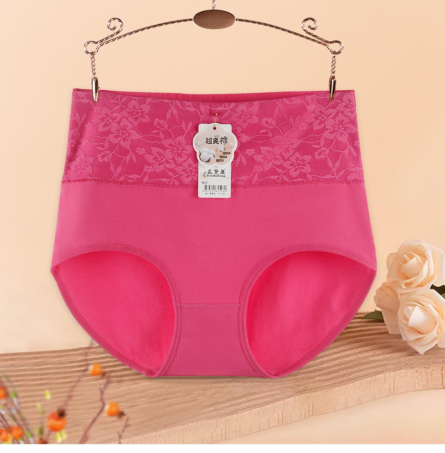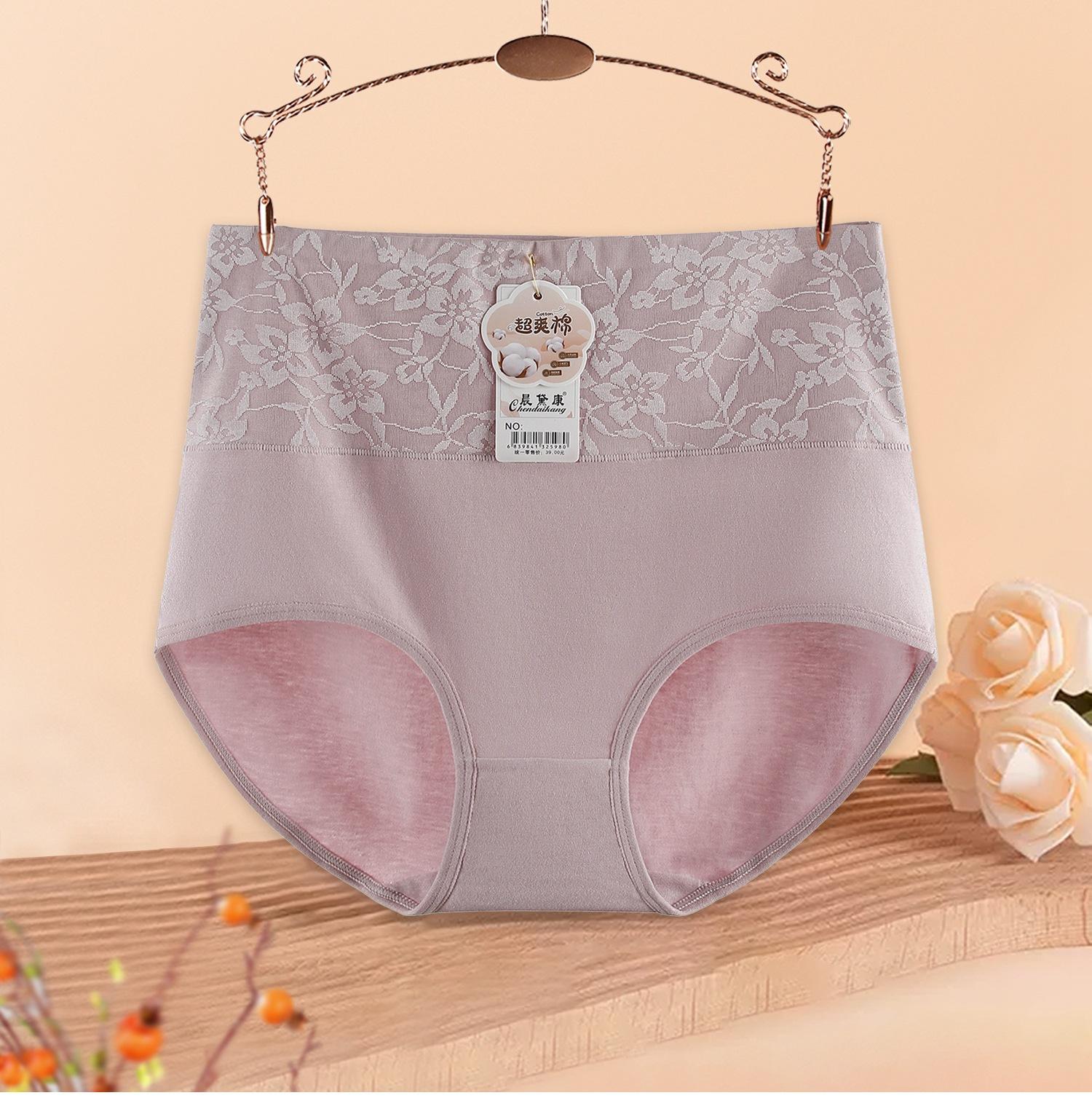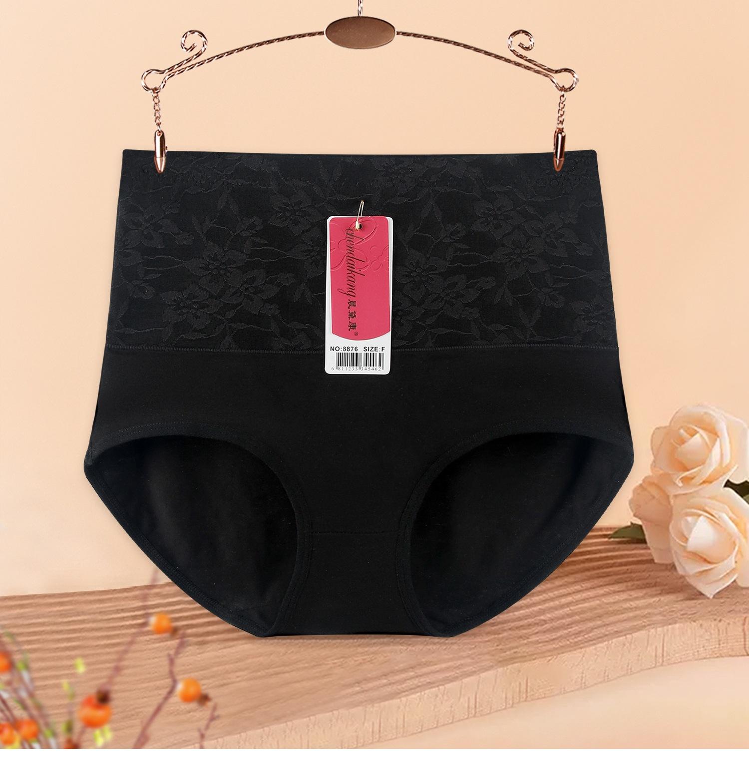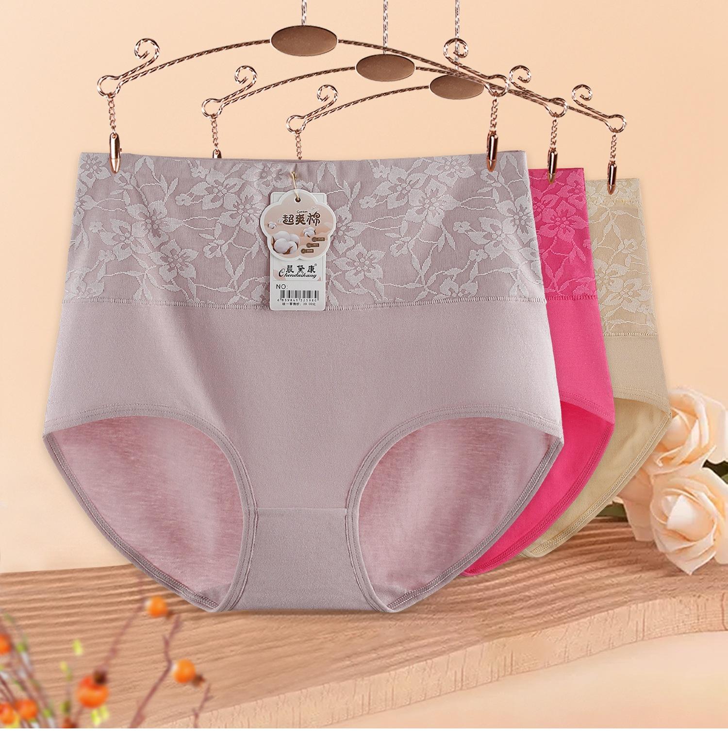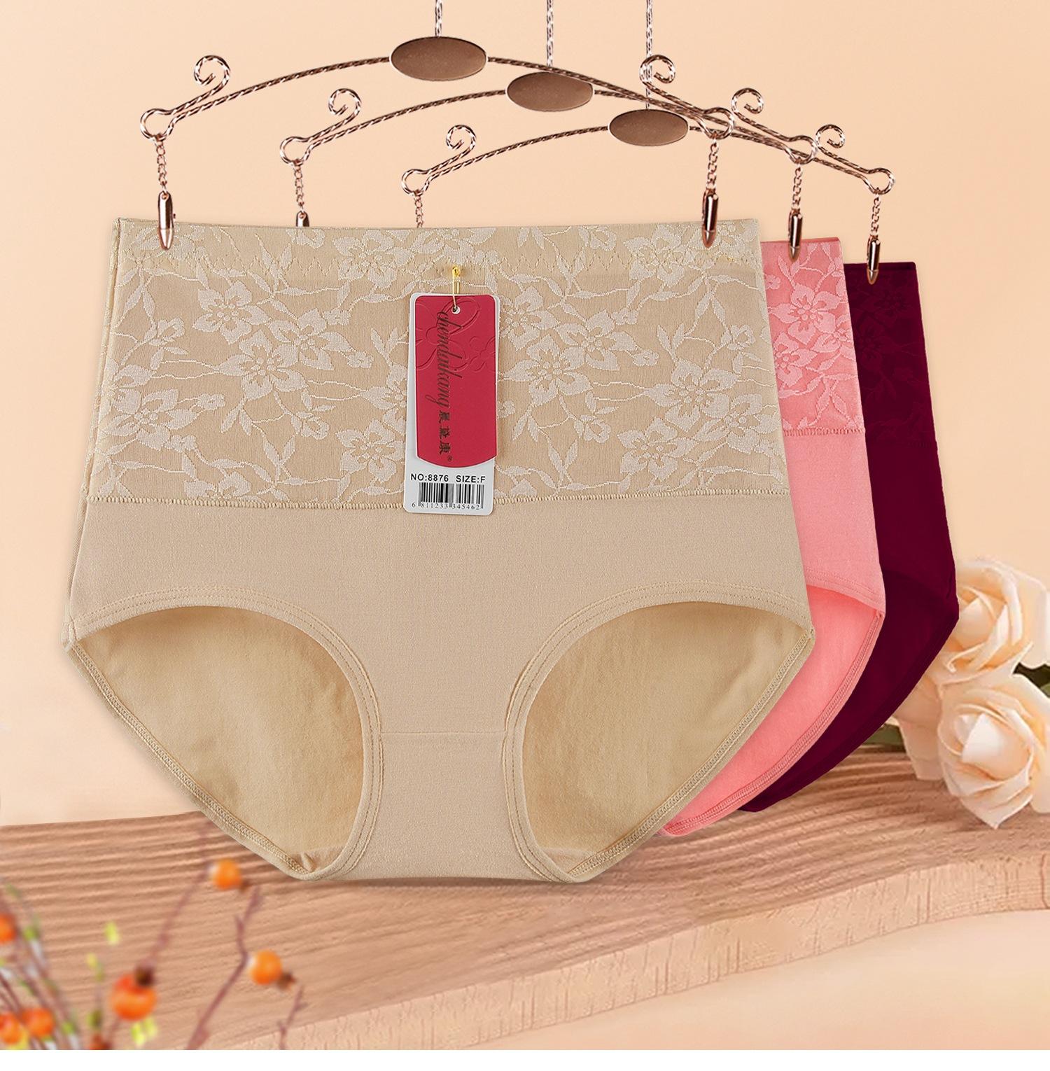 Ropa interior de mujer, cintura alta, vientre teñido, cadera, encaje, pantalones cortos de algodón, bragas triangulares de talla grande para madres de mediana edad y mayores.