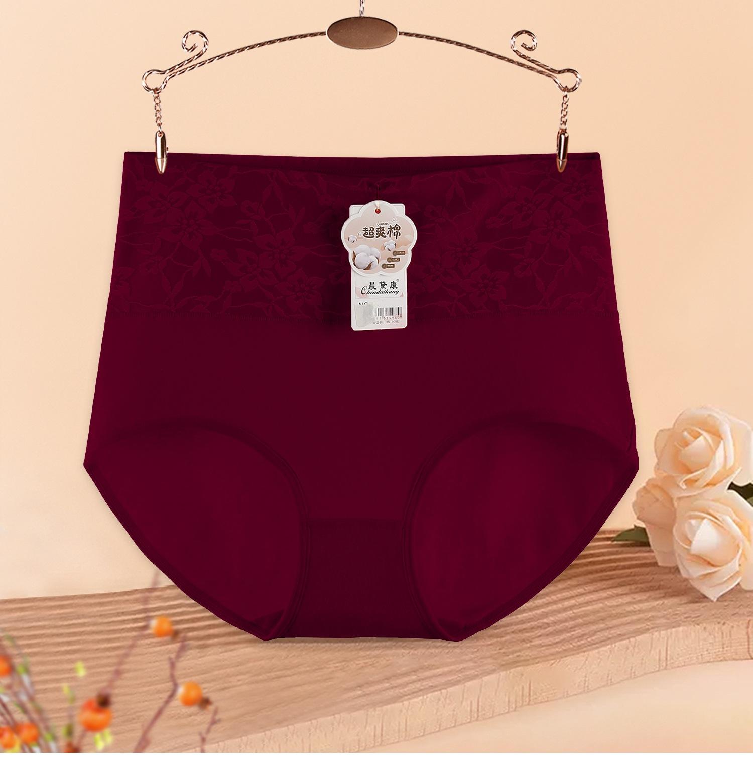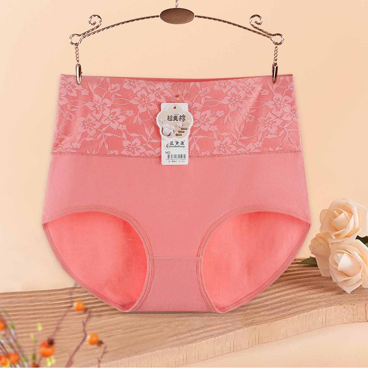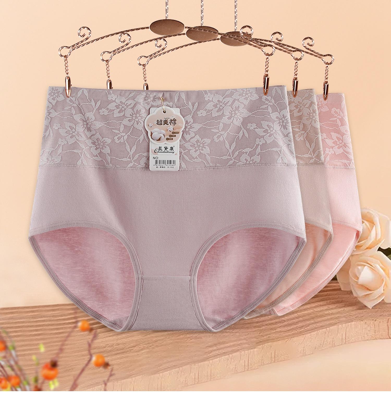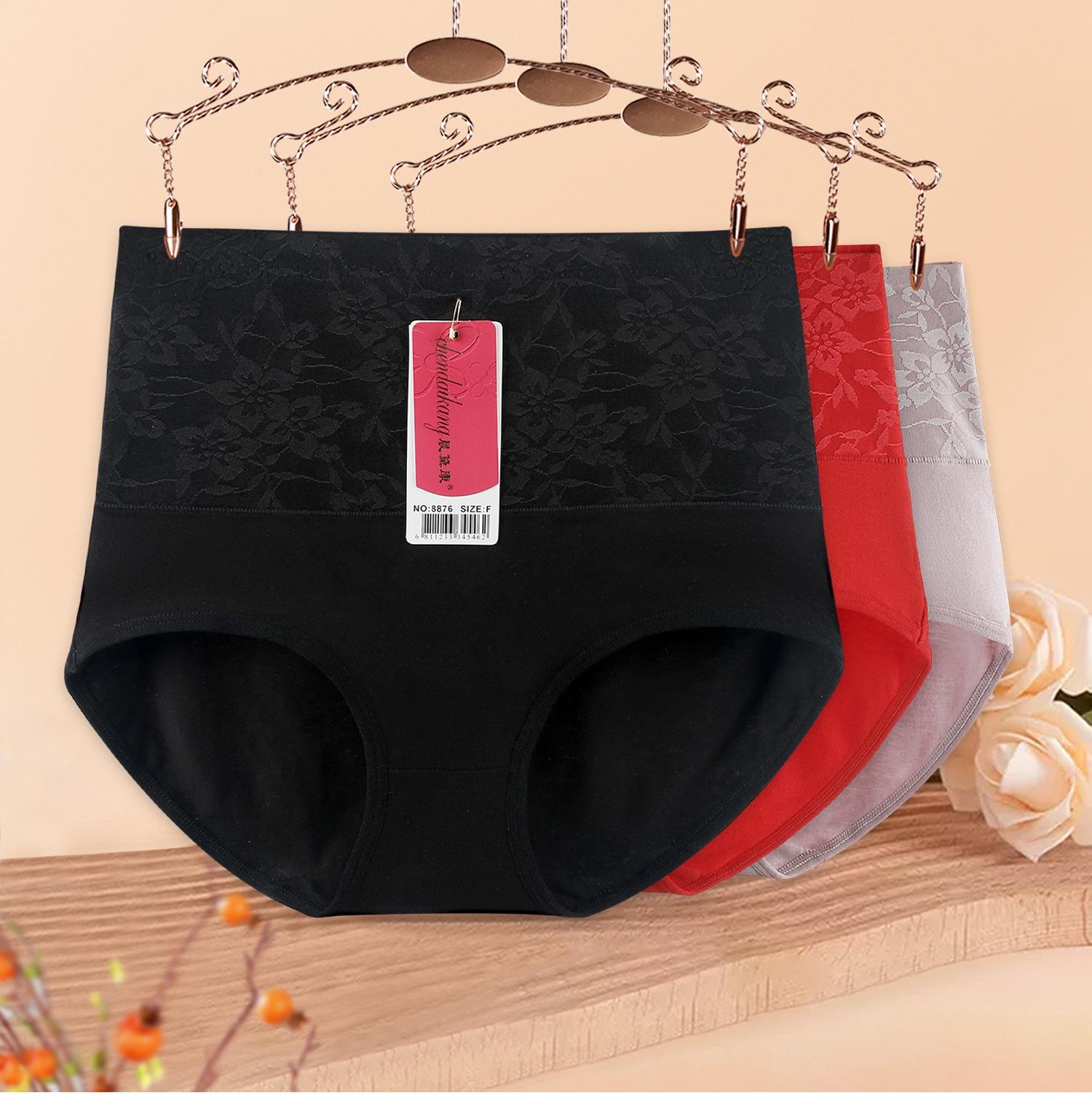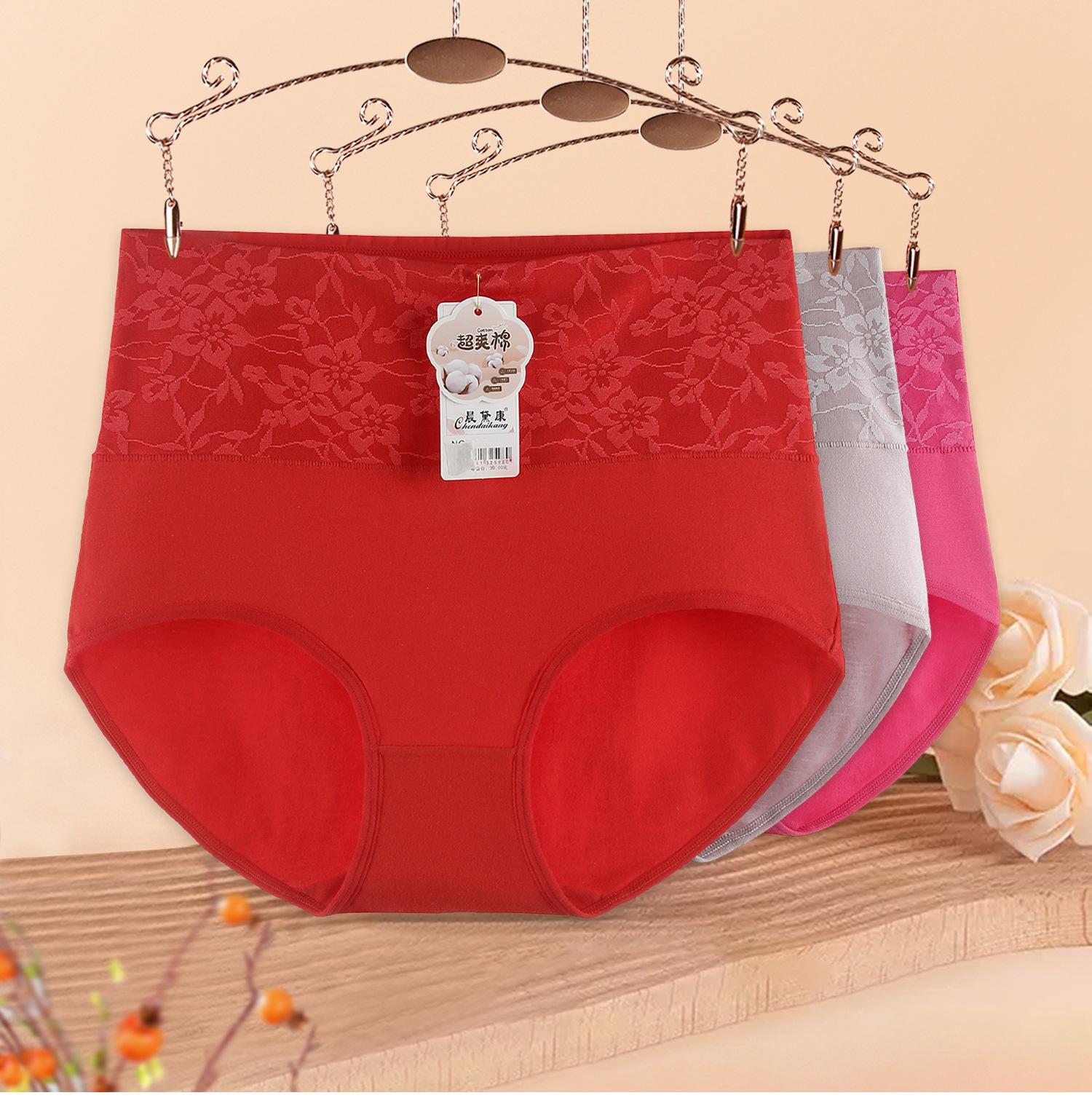 Ropa interior de mujer, cintura alta, vientre teñido, cadera, encaje, pantalones cortos de algodón, bragas triangulares de talla grande para madres de mediana edad y mayores.