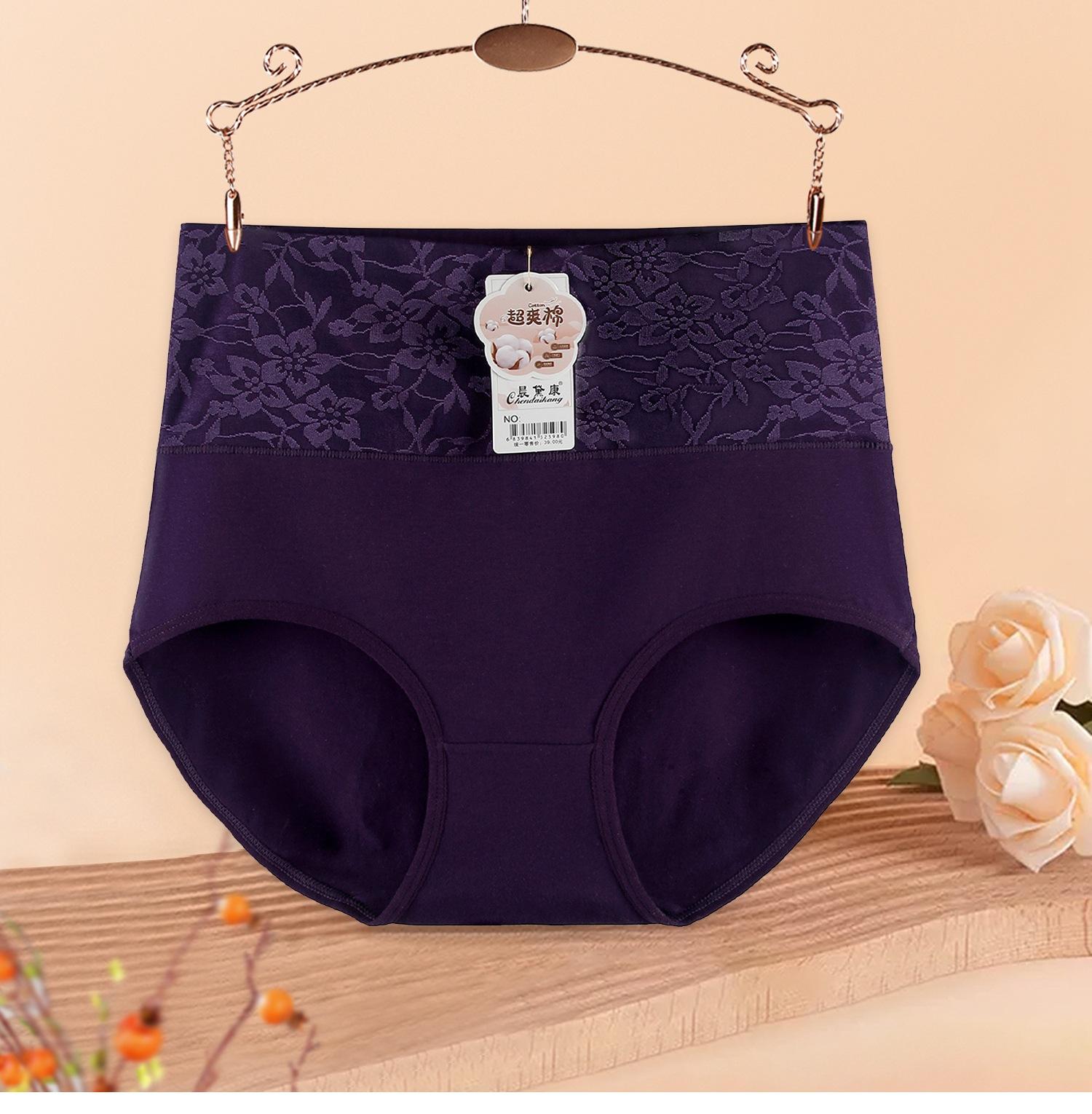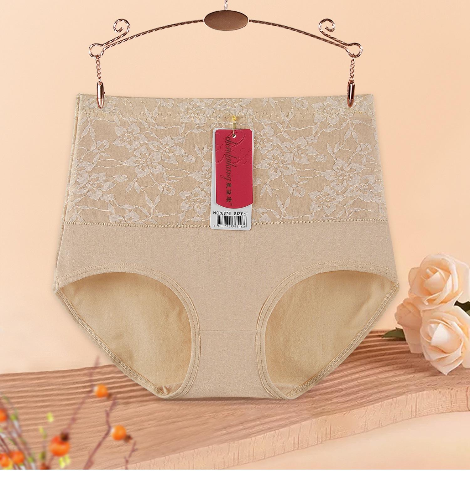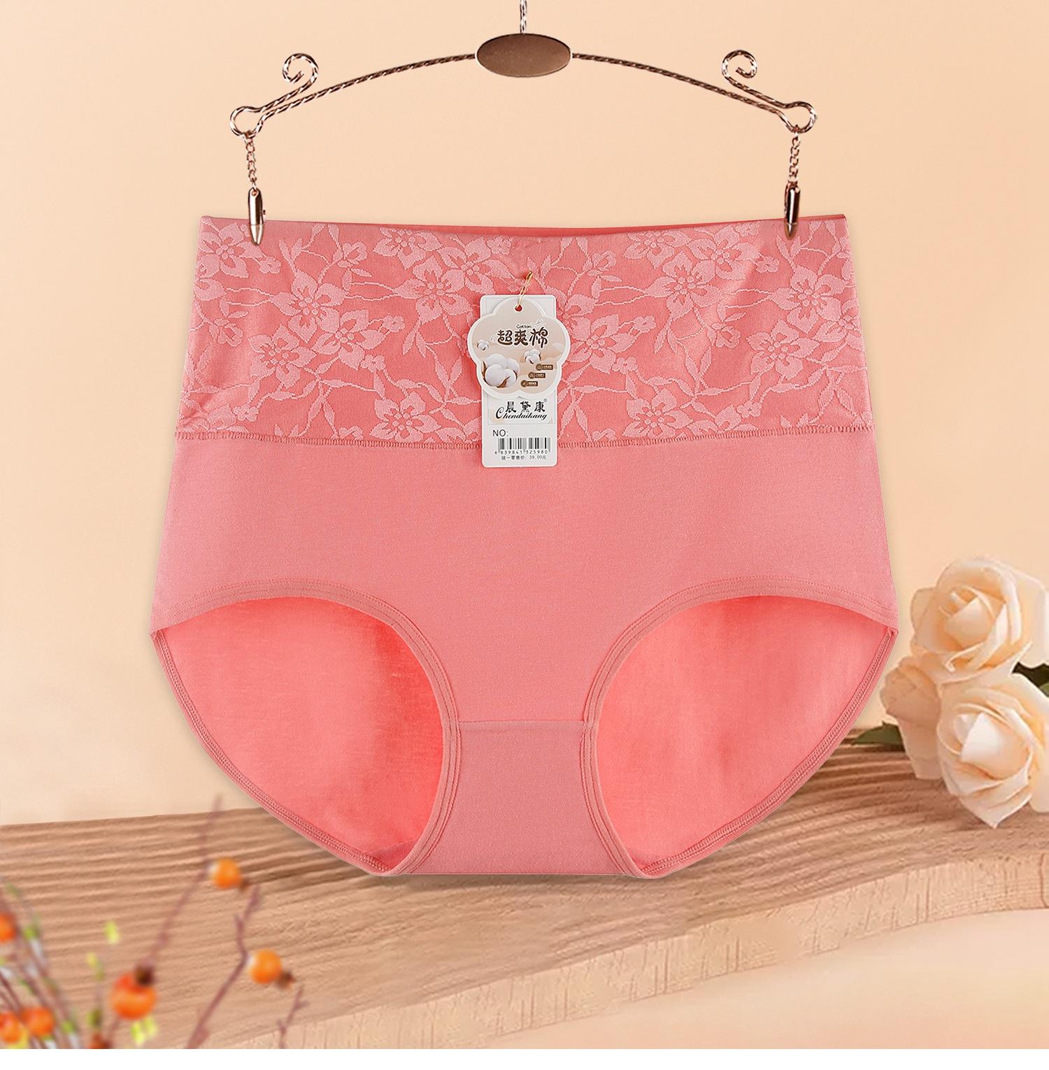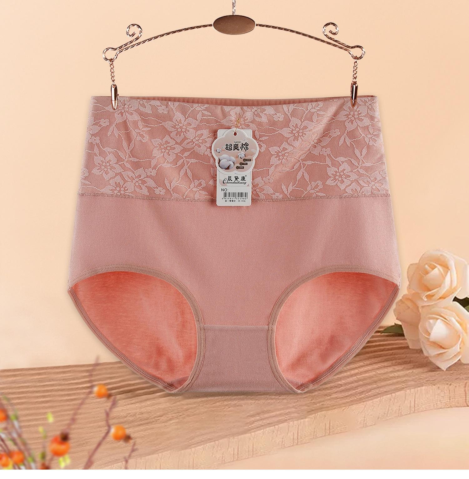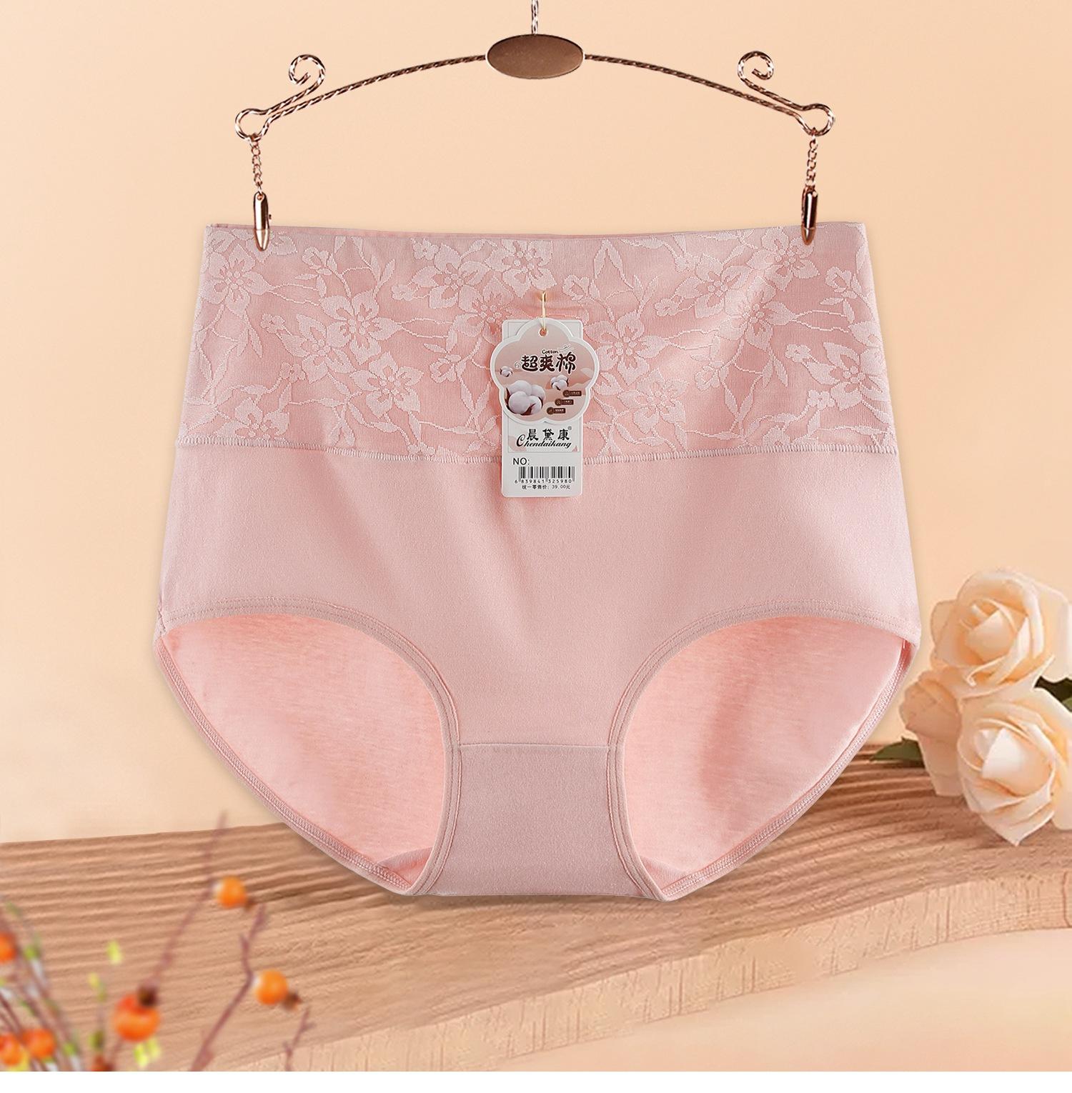 Ropa interior de mujer, cintura alta, vientre teñido, cadera, encaje, pantalones cortos de algodón, bragas triangulares de talla grande para madres de mediana edad y mayores.