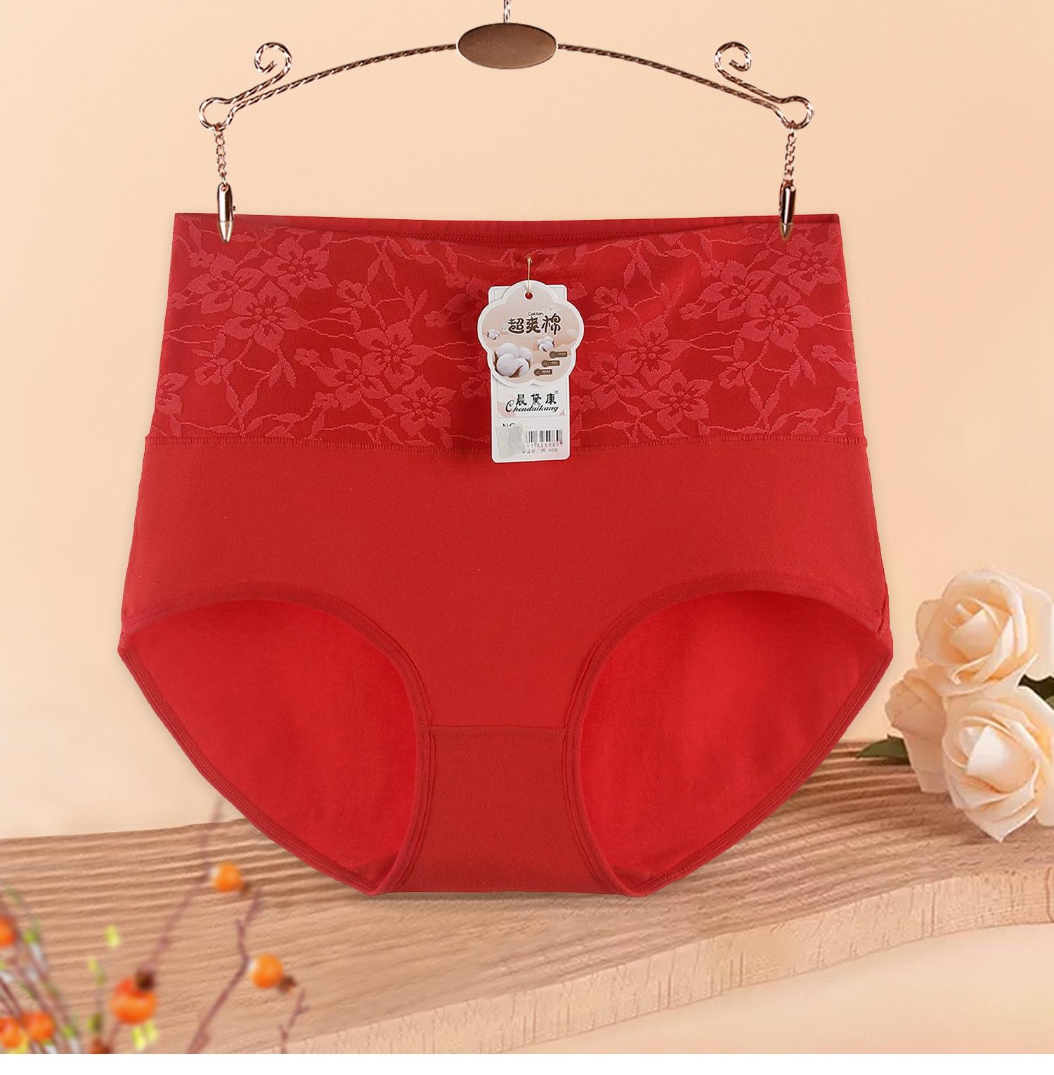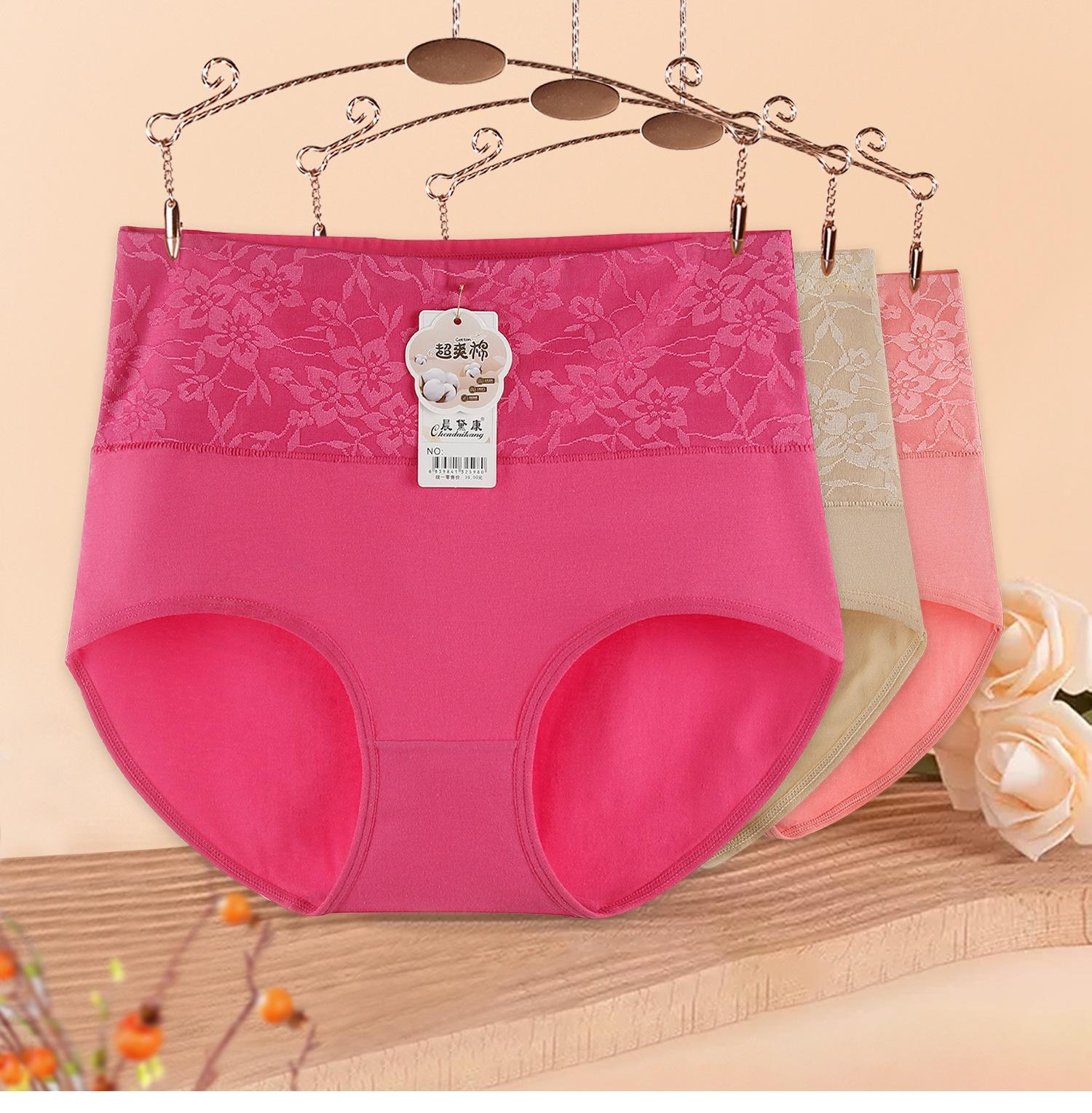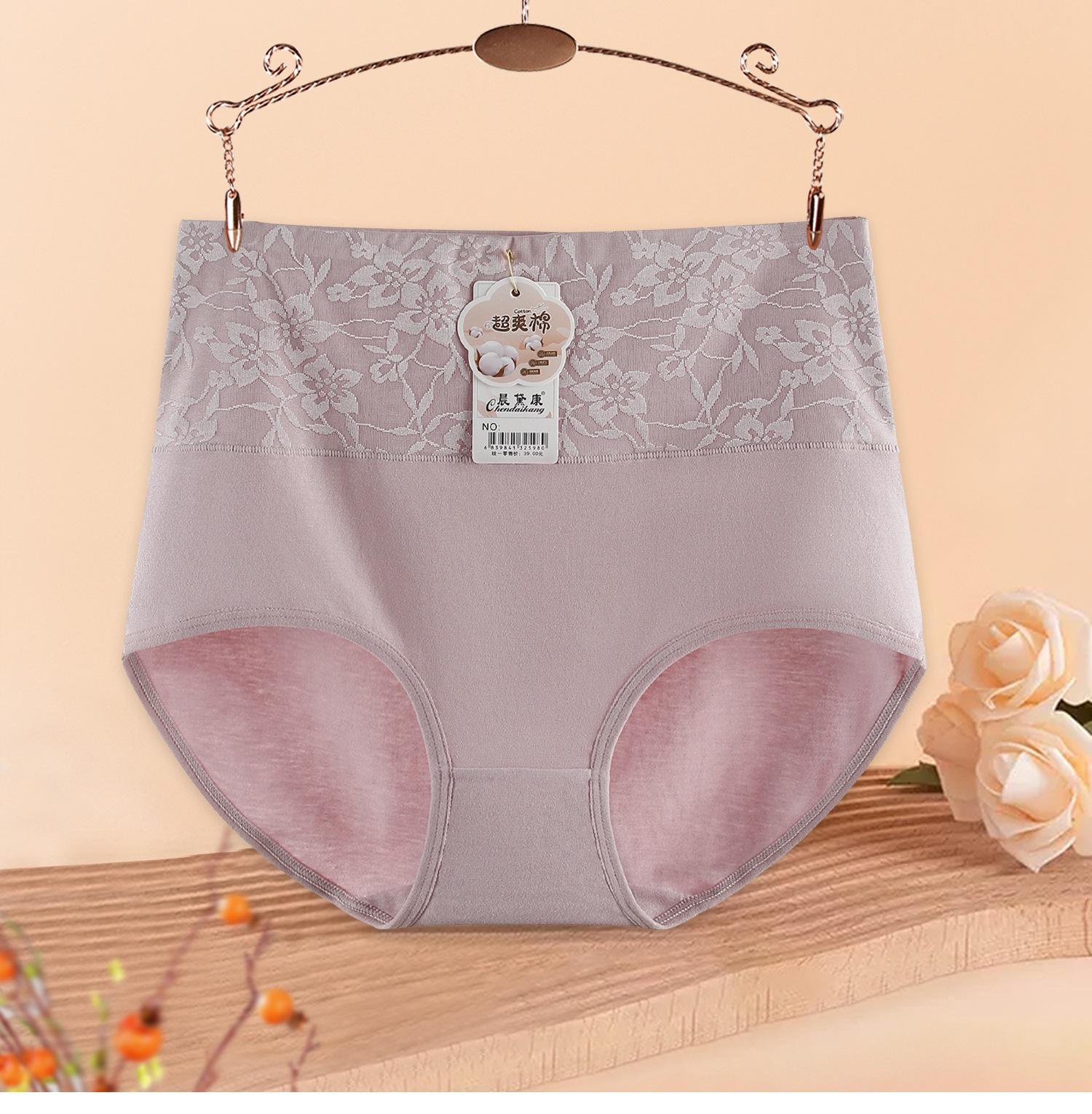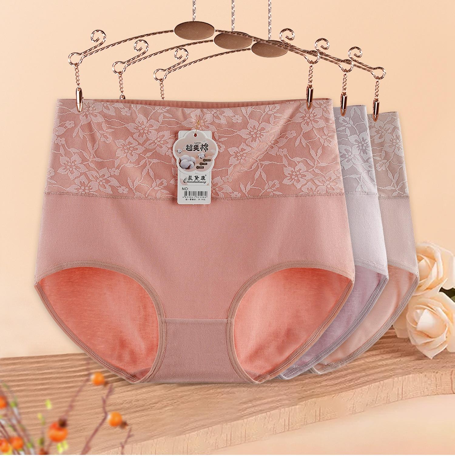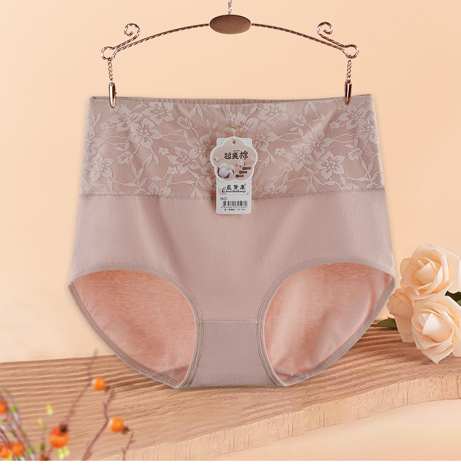 Ropa interior de mujer, cintura alta, vientre teñido, cadera, encaje, pantalones cortos de algodón, bragas triangulares de talla grande para madres de mediana edad y mayores.