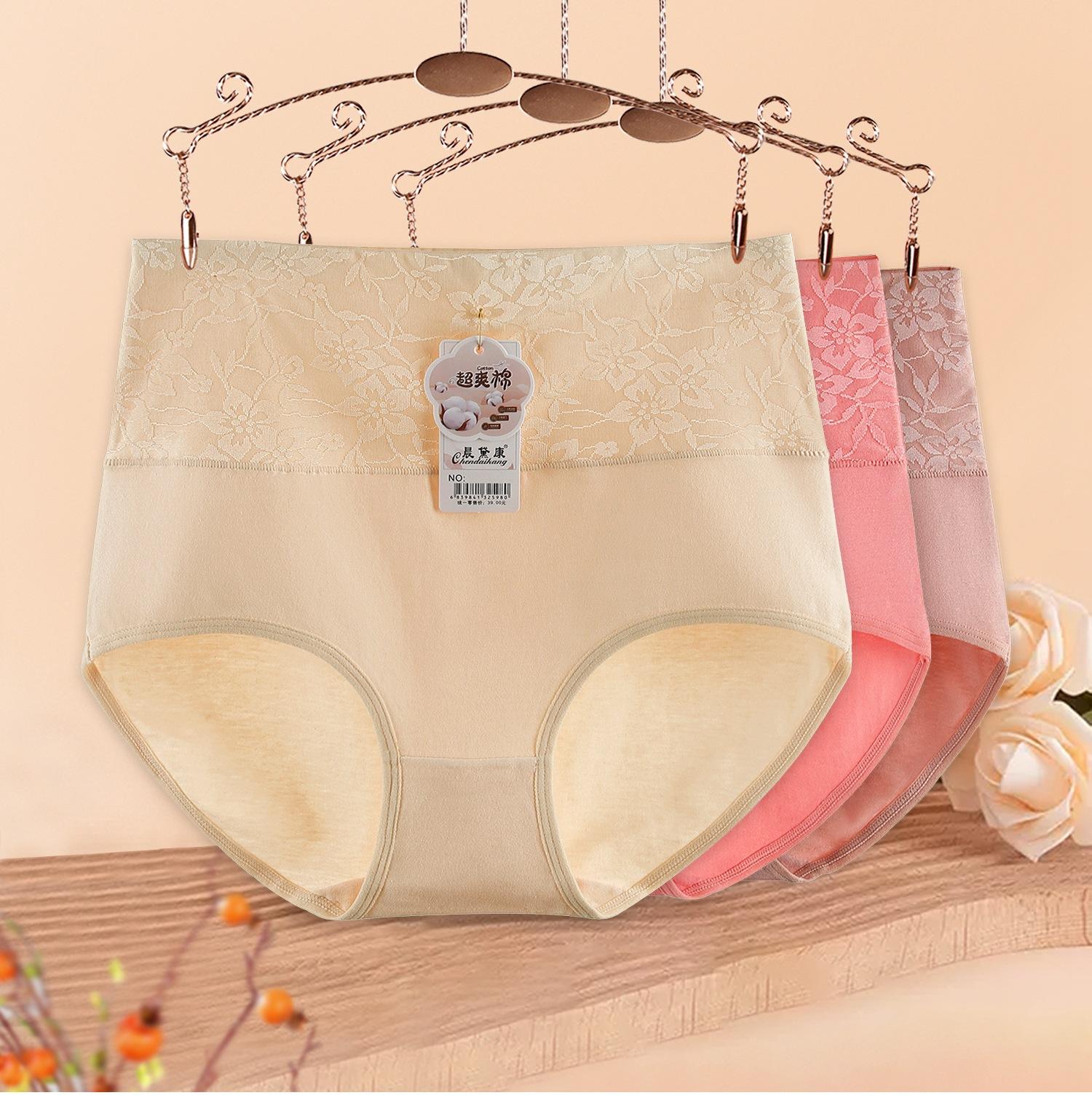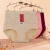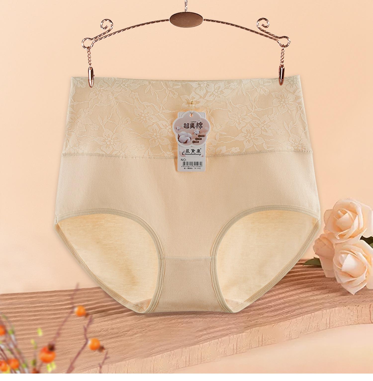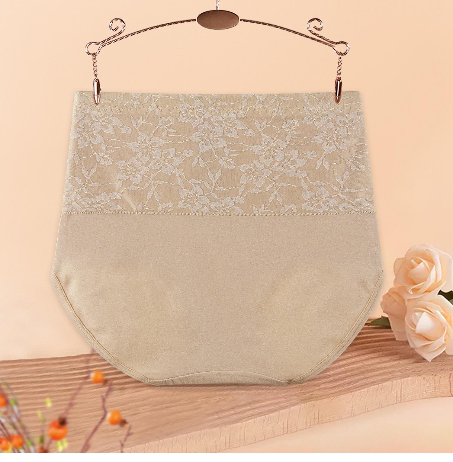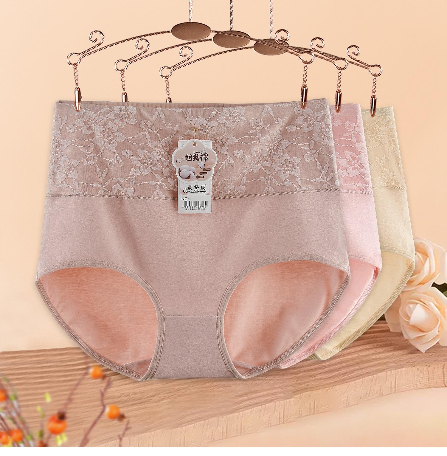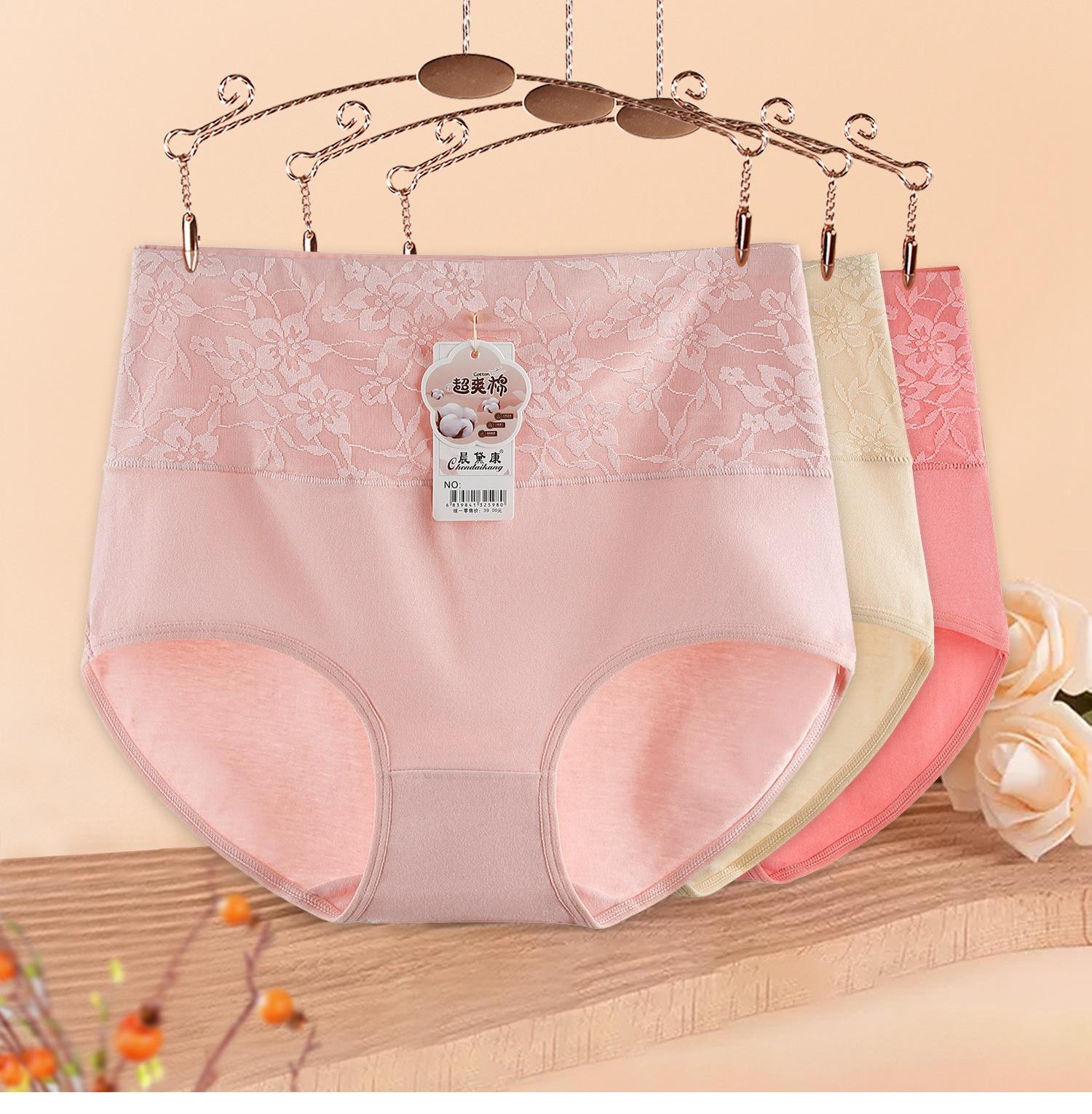 Ropa interior de mujer, cintura alta, vientre teñido, cadera, encaje, pantalones cortos de algodón, bragas triangulares de talla grande para madres de mediana edad y mayores.