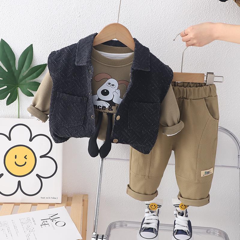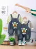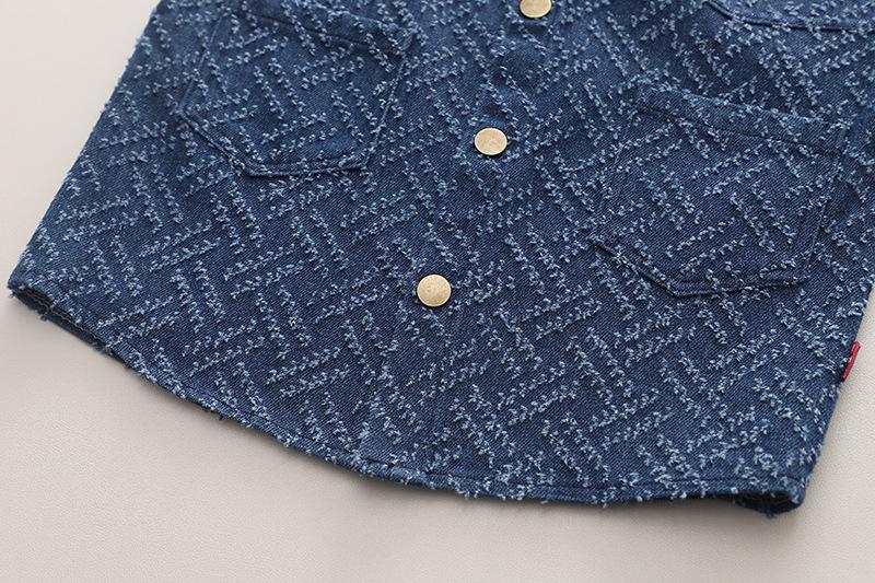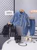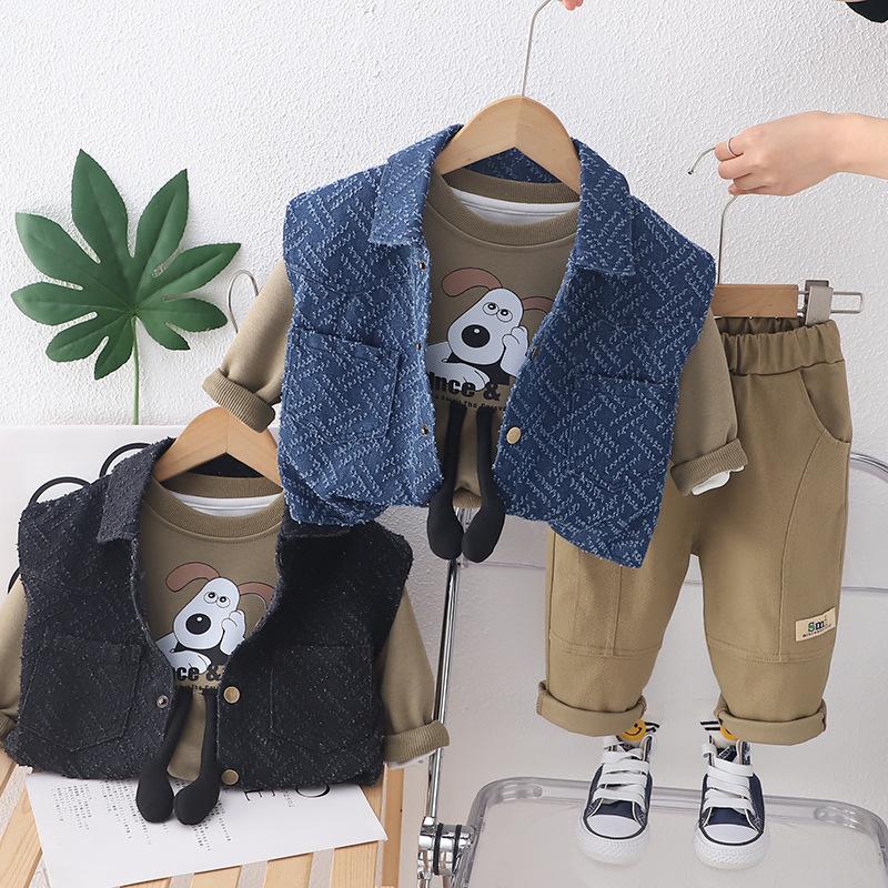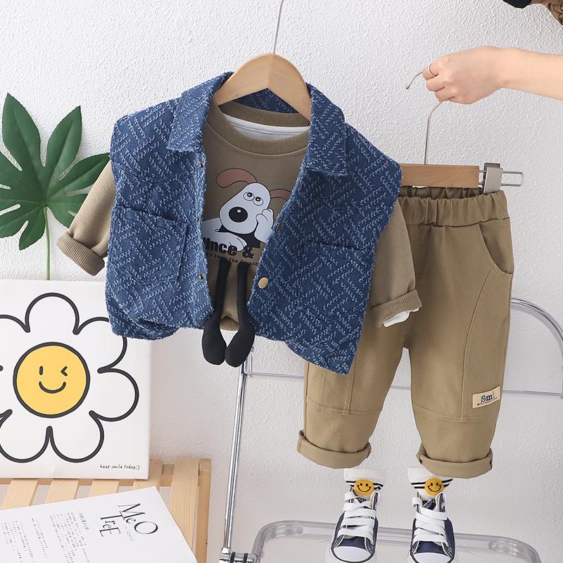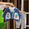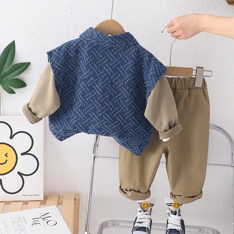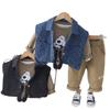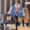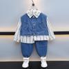 Traje para niño primavera y otoño 2024 Nuevo estilo occidental bebé guapo ropa de primavera bebé niños Chaleco de mezclilla traje de tres piezas