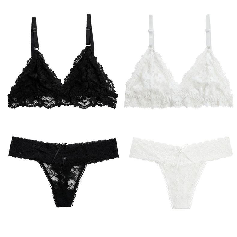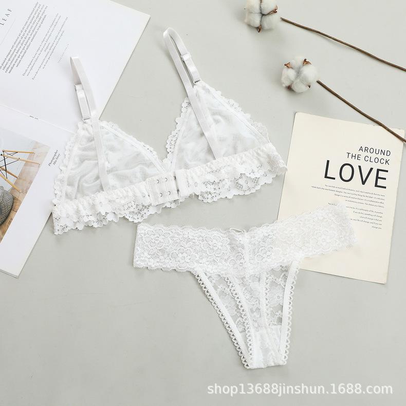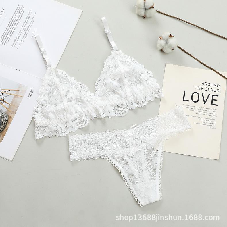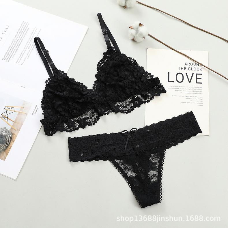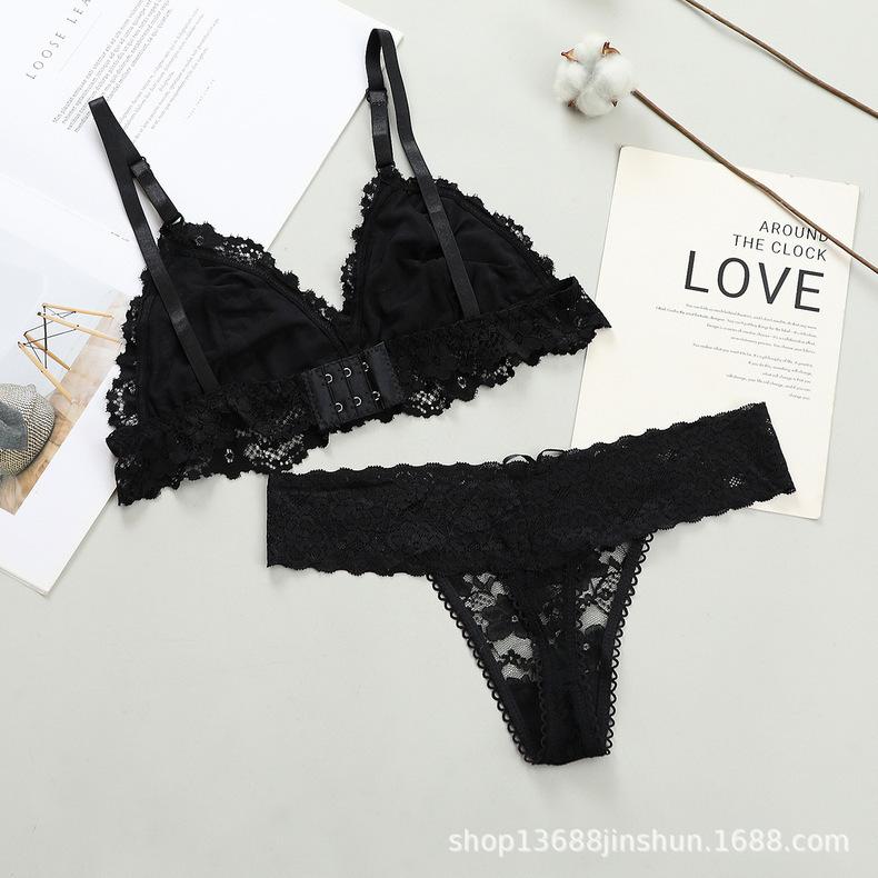 Europeo y Americano Profundo V Ultradelgado Encaje Sin Costuras Sexy Espalda Hermosa Sin Aro de Acero Sin Almohadilla en el Pecho Sujetador Set de Lencería para Mujer 3820