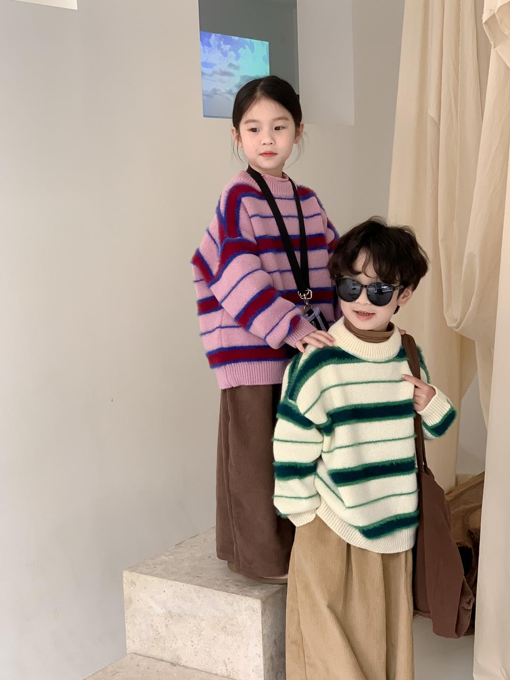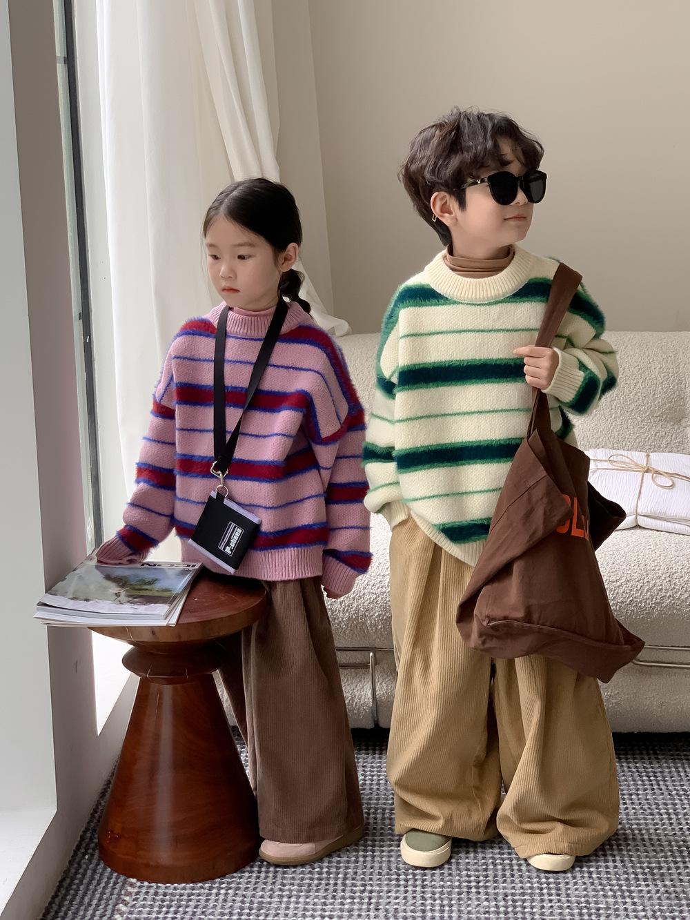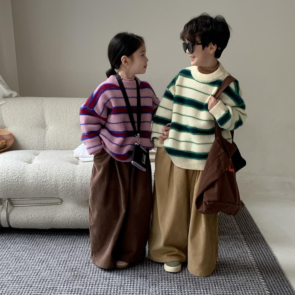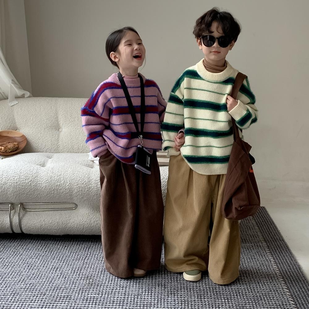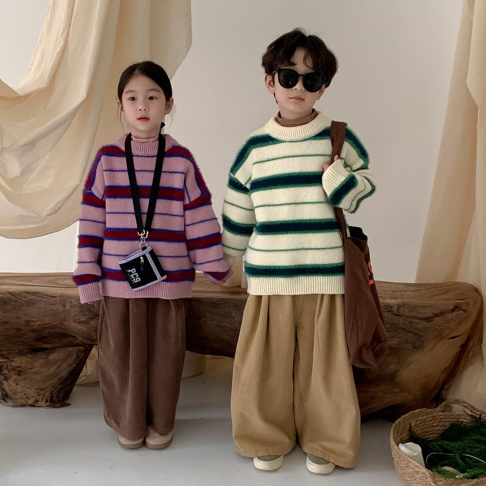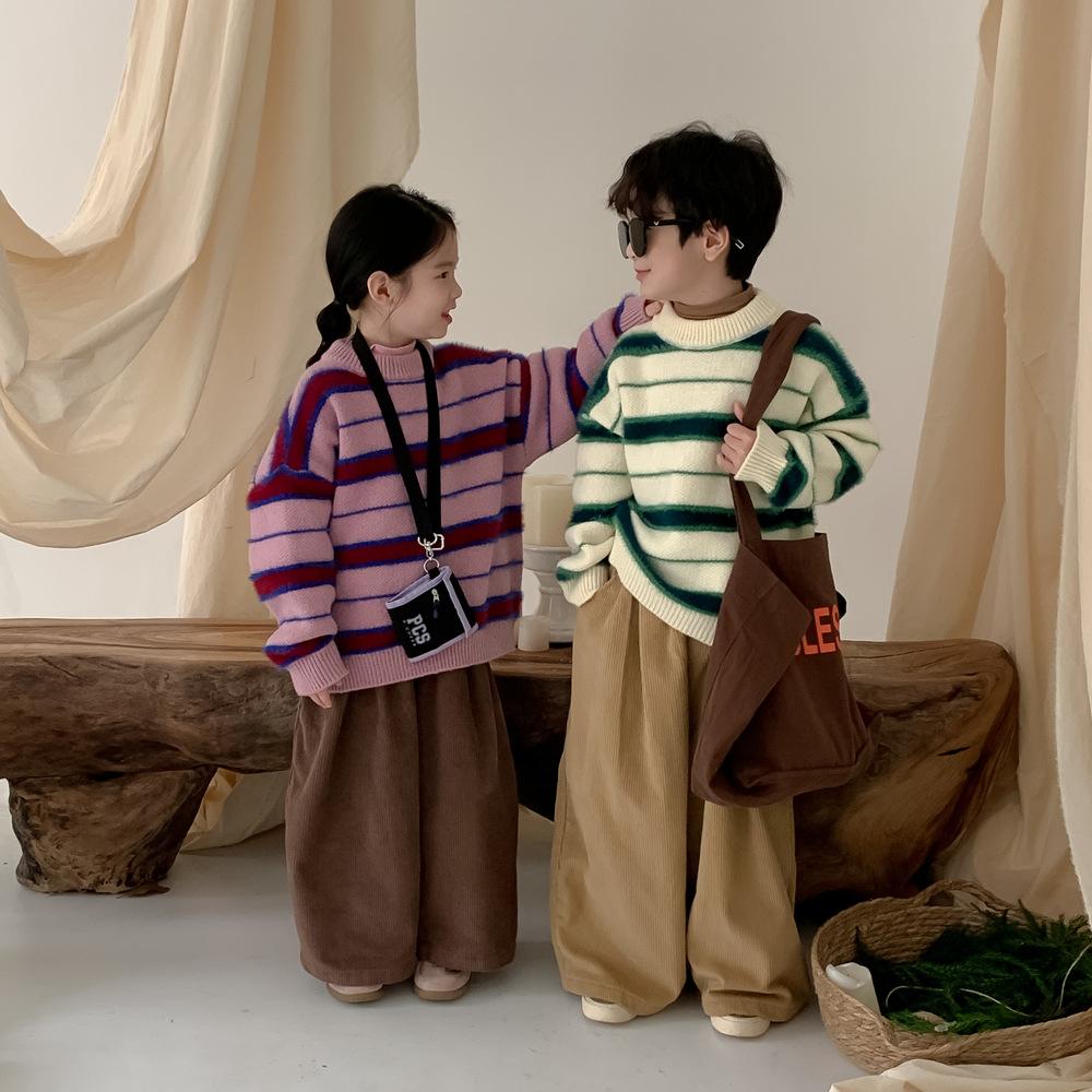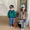 Suéter para niños 2025 Invierno Niños y Niñas Coreano Rayado Tops de Punto Suéteres Casuales Holgados de Cuello Redondo para Niños