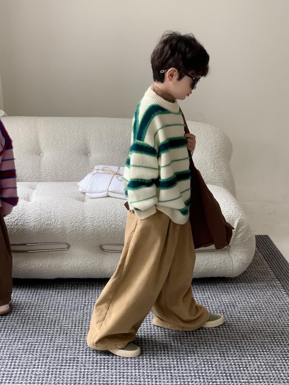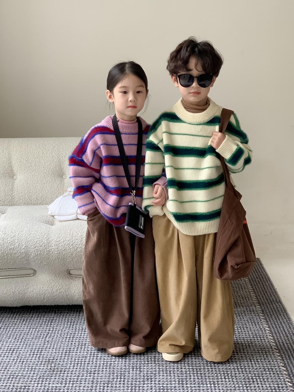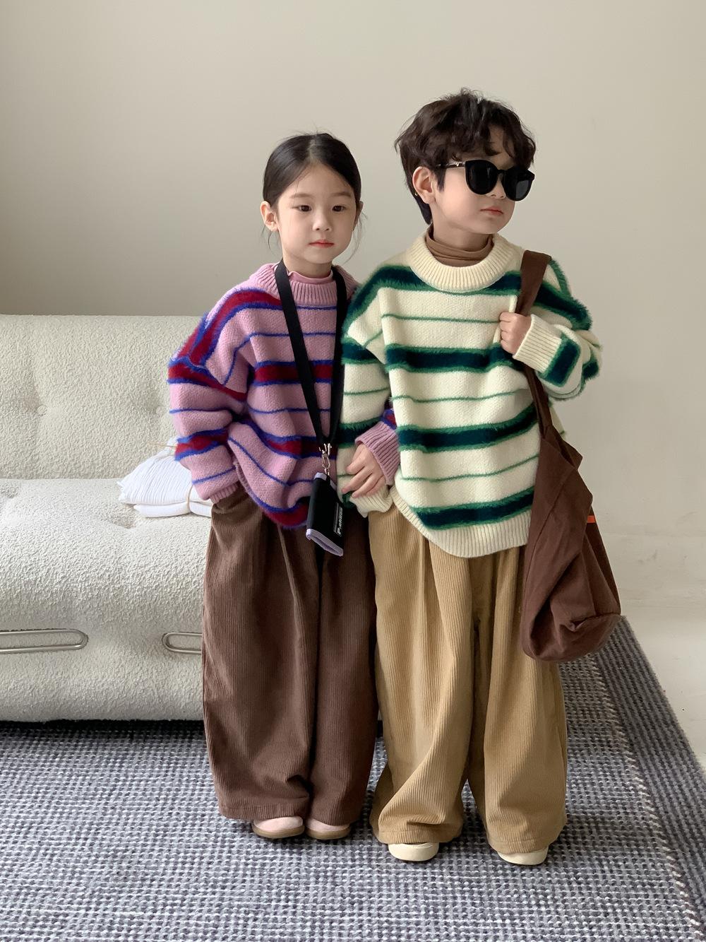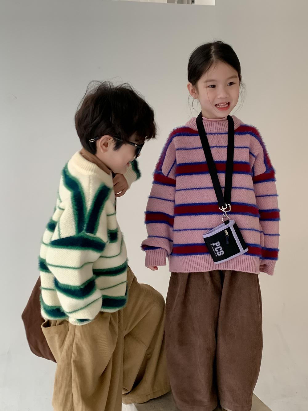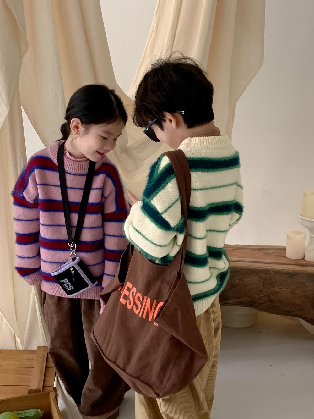 Suéter para niños 2025 Invierno Niños y Niñas Coreano Rayado Tops de Punto Suéteres Casuales Holgados de Cuello Redondo para Niños