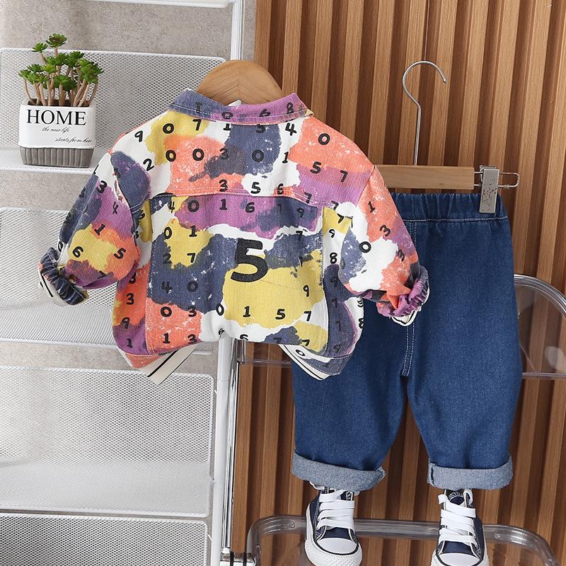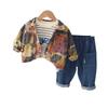 Traje de otoño para niño 2023, nuevo traje de tres piezas con estampado de primavera y otoño para bebé, estilo occidental