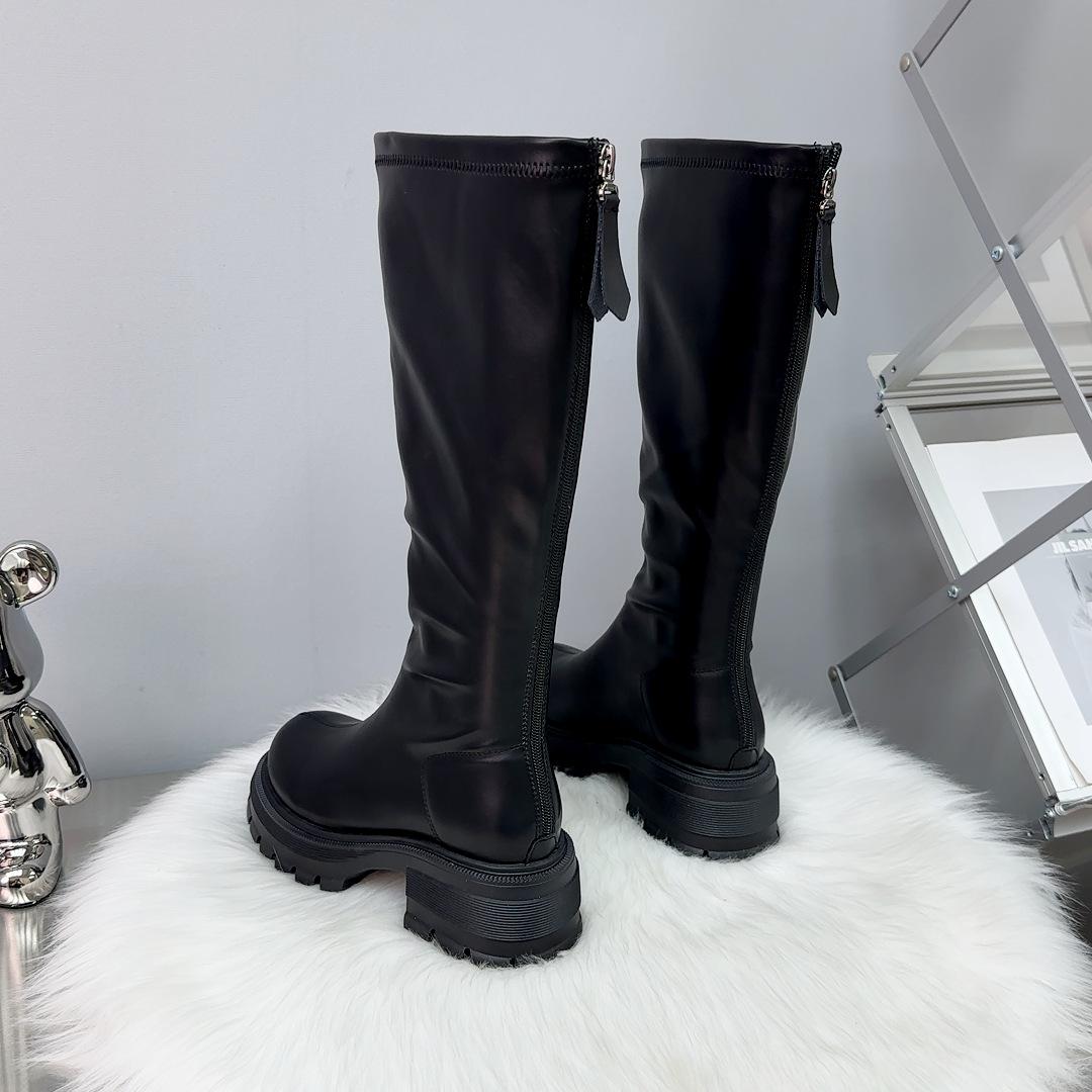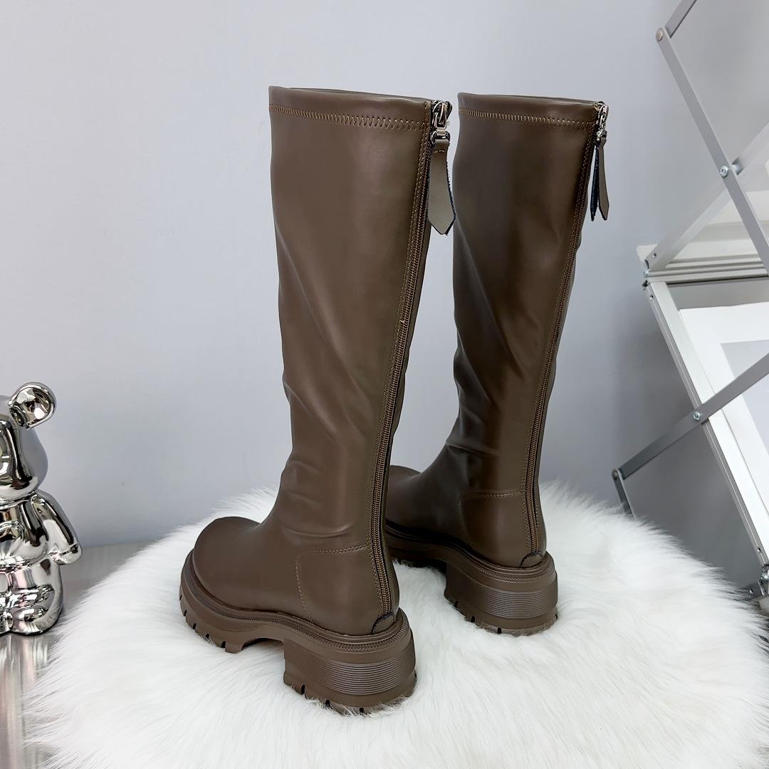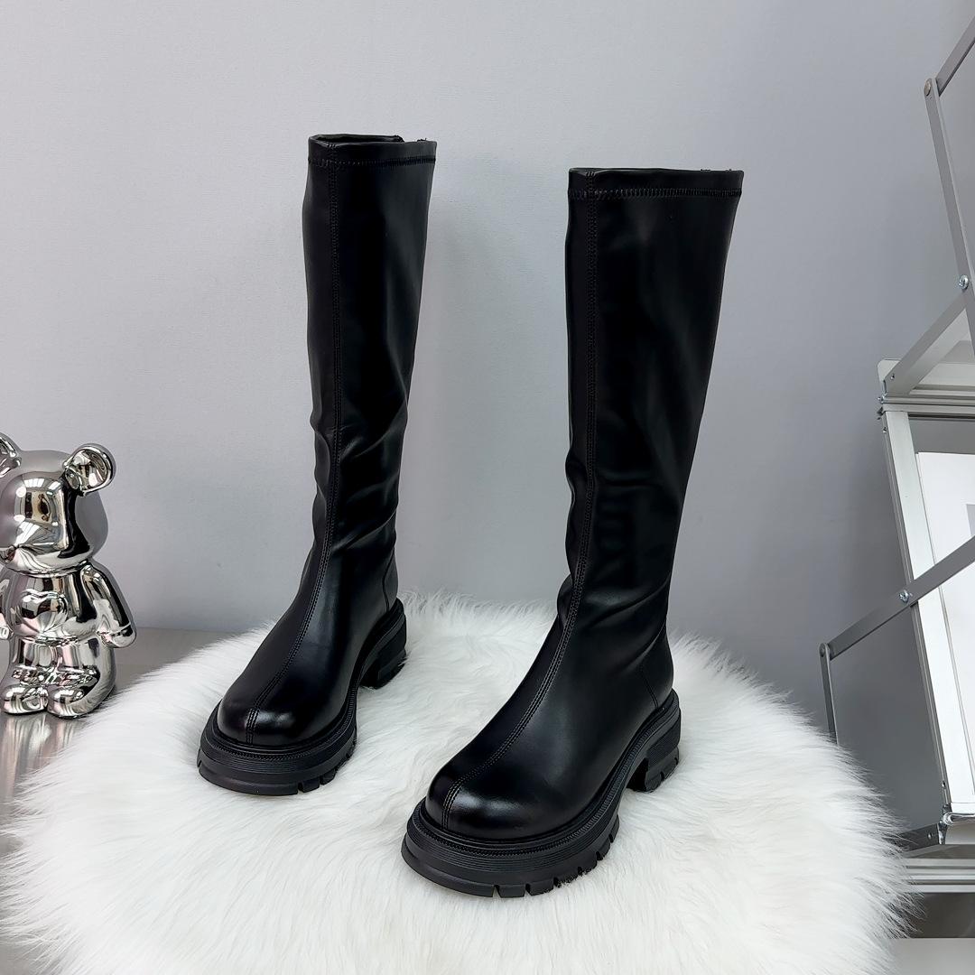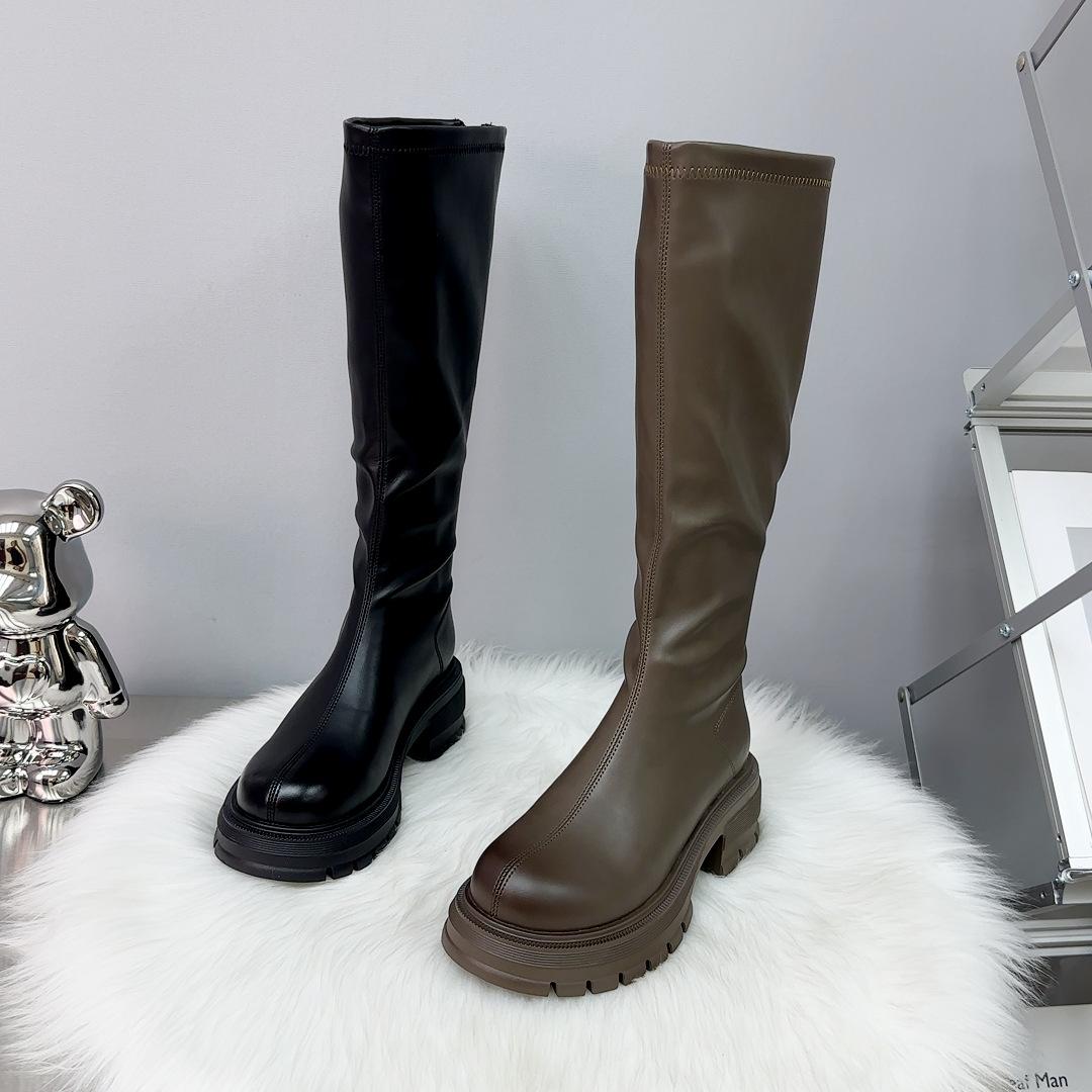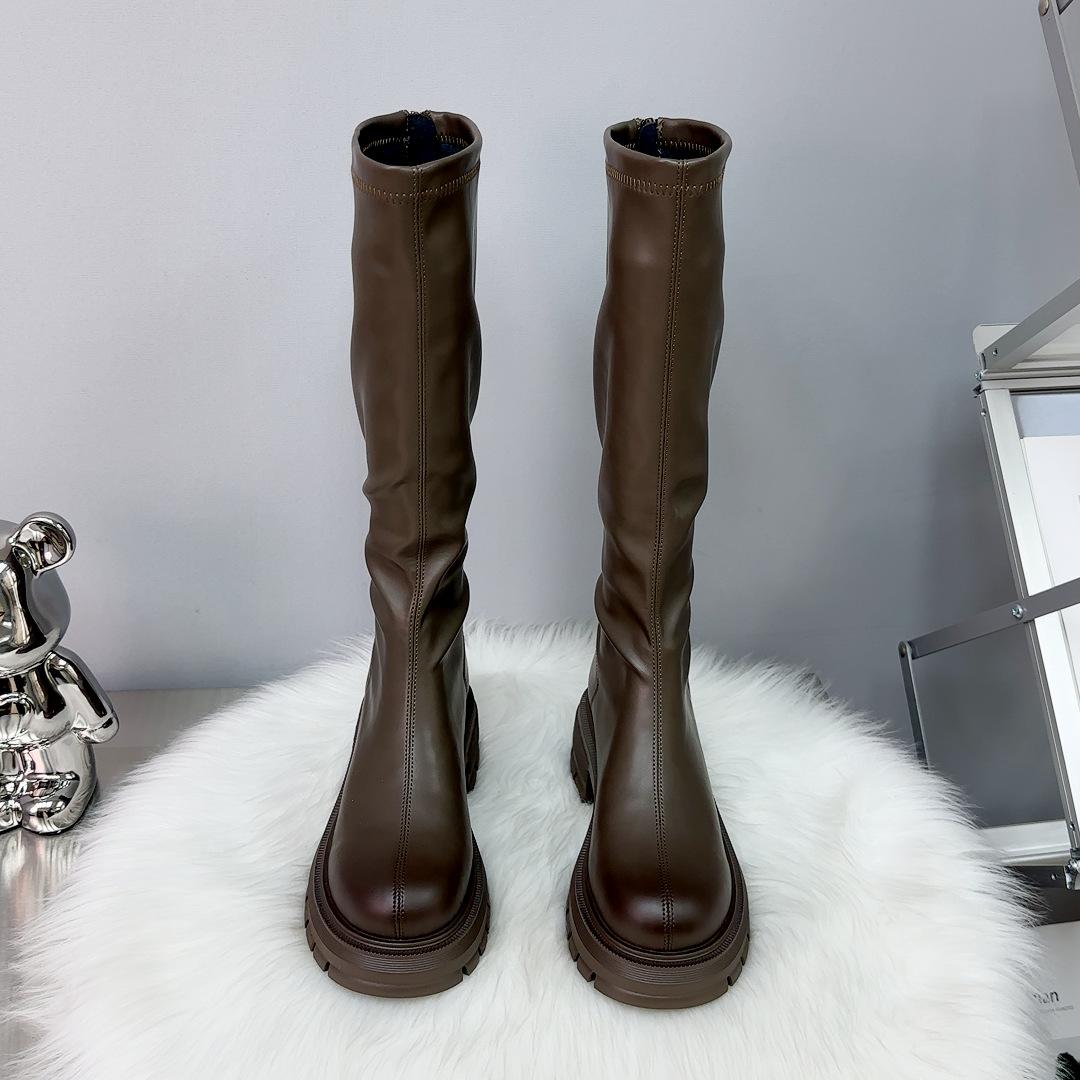 Botas largas otoño 2023, botas altas de caballero, botas de mujer con suela gruesa y aumento de altura, botas finas con cremallera trasera, botas de cuero para mujer