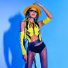 Fuente de comercio exterior Europa y Estados Unidos nuevo charol ajustado calado estilo red de pesca europea traje de actuación hip hop para club nocturno