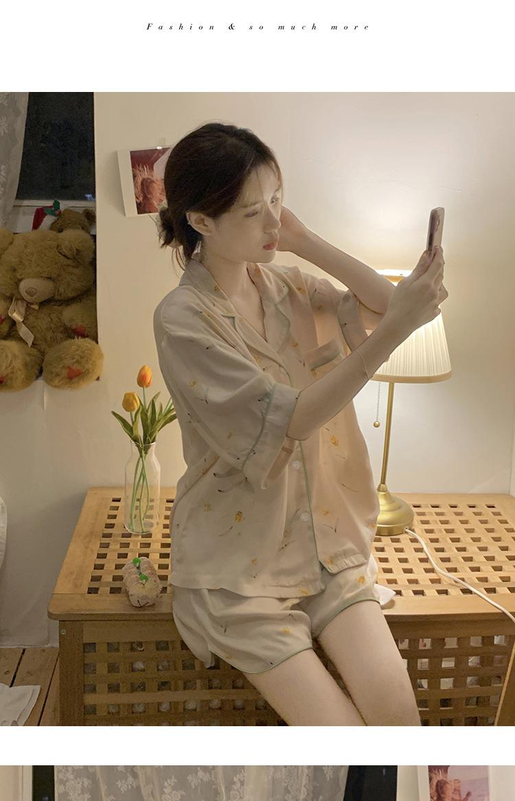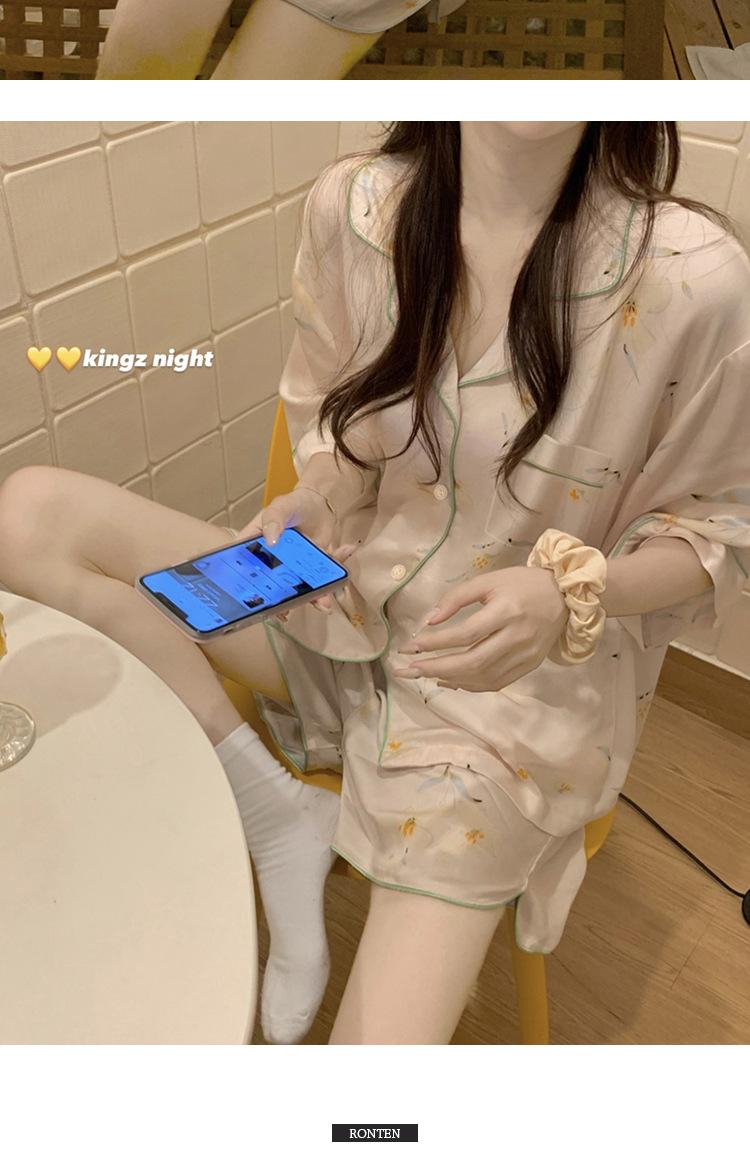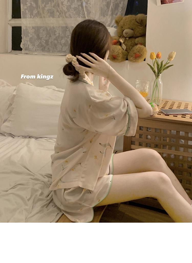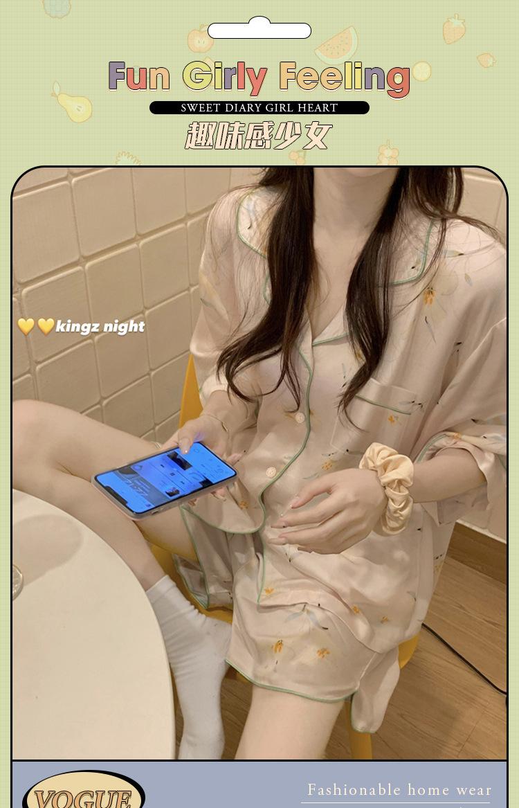 Compra Pijama Francés de Alta Gama de Seda de Hielo Floral para Mujer Verano Ropa para el Hogar Traje de Manga Corta Conjunto de Verano de Dos Piezas Ropa Exterior Venta al por Mayor al por mayor en Joom.pro