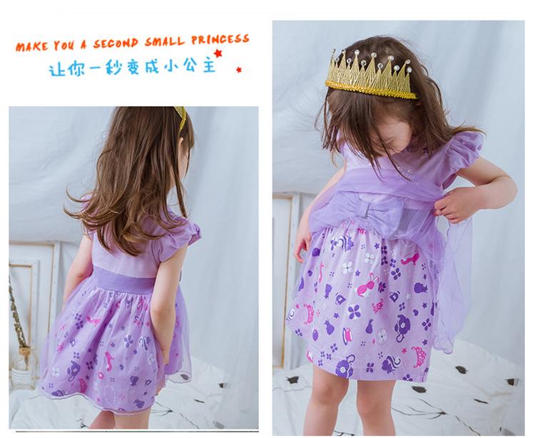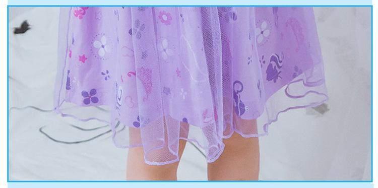 Vestido de princesa Elsa de Frozen de manga corta colorido, ropa infantil de comercio exterior, vestido de niña, disfraz de actuación para el Día del Niño