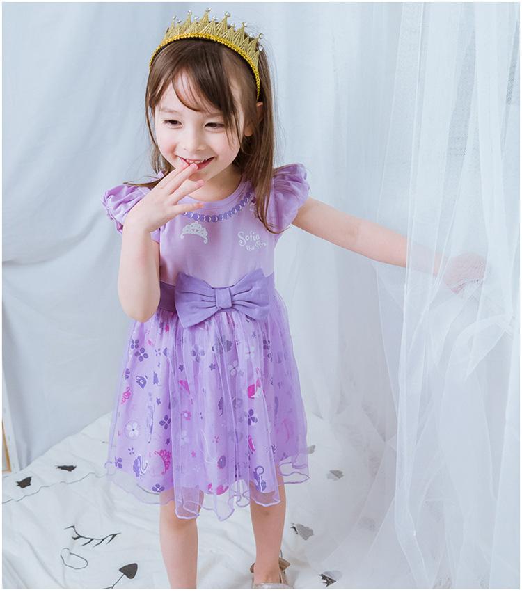 Vestido Nuevo para Niñas Vestido de Verano Ropa Nueva para Niños Lazo Encaje Vestido de Princesa Falda para Niñas Sofía