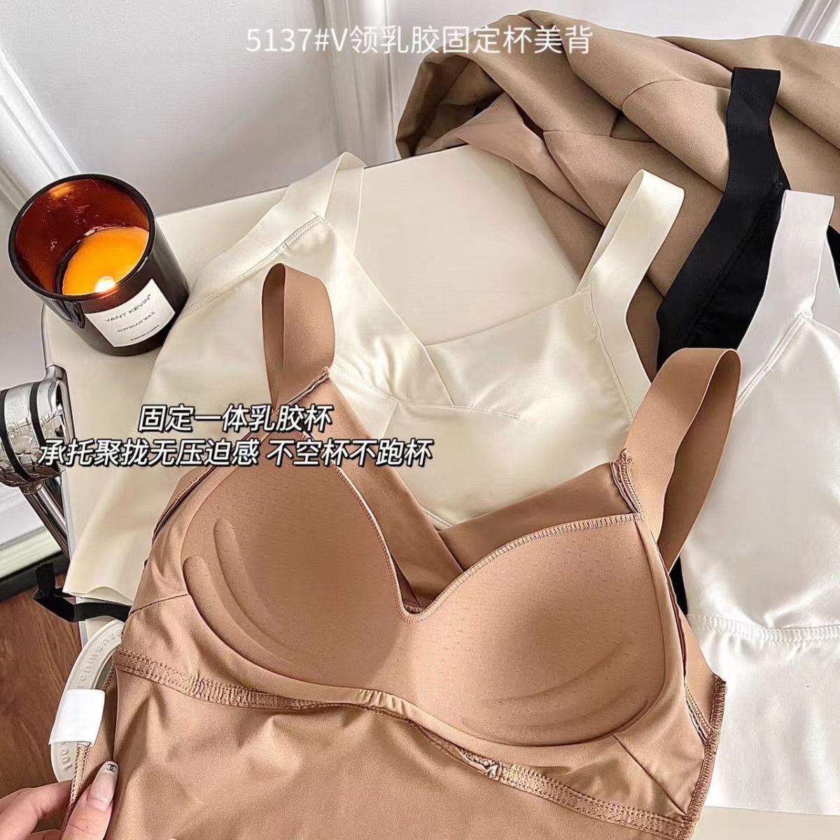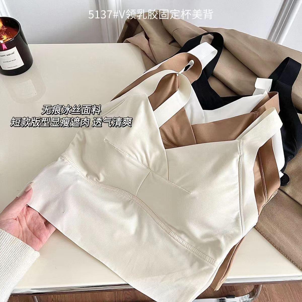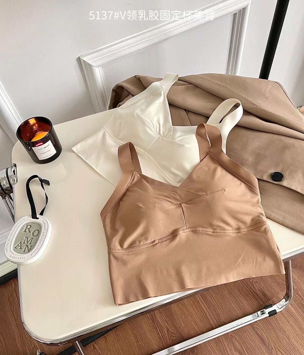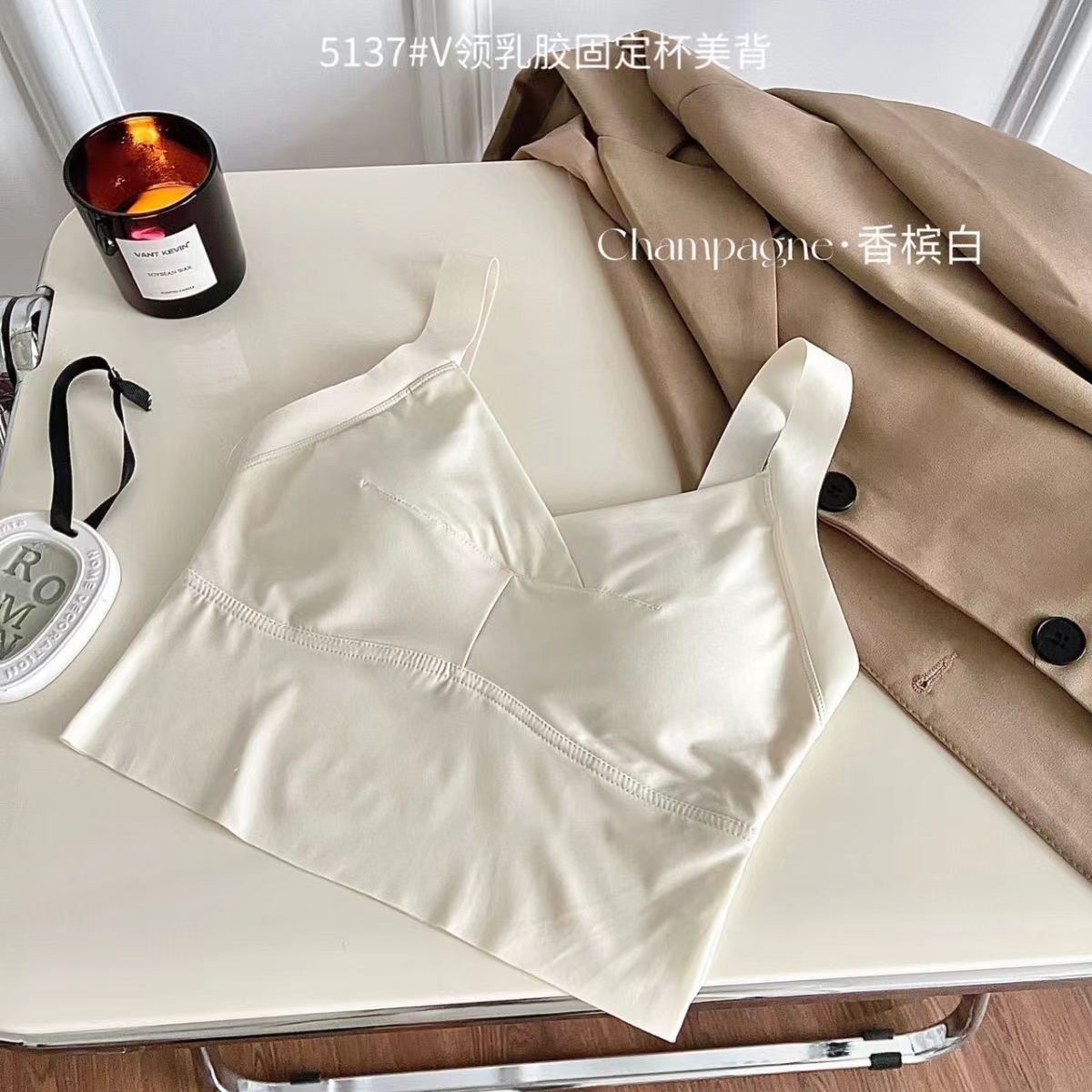 Camisola sexy de verano de seda helada con escote en V en la espalda y almohadilla para el pecho para mujer, sin costuras, interior antideslizante, ropa exterior