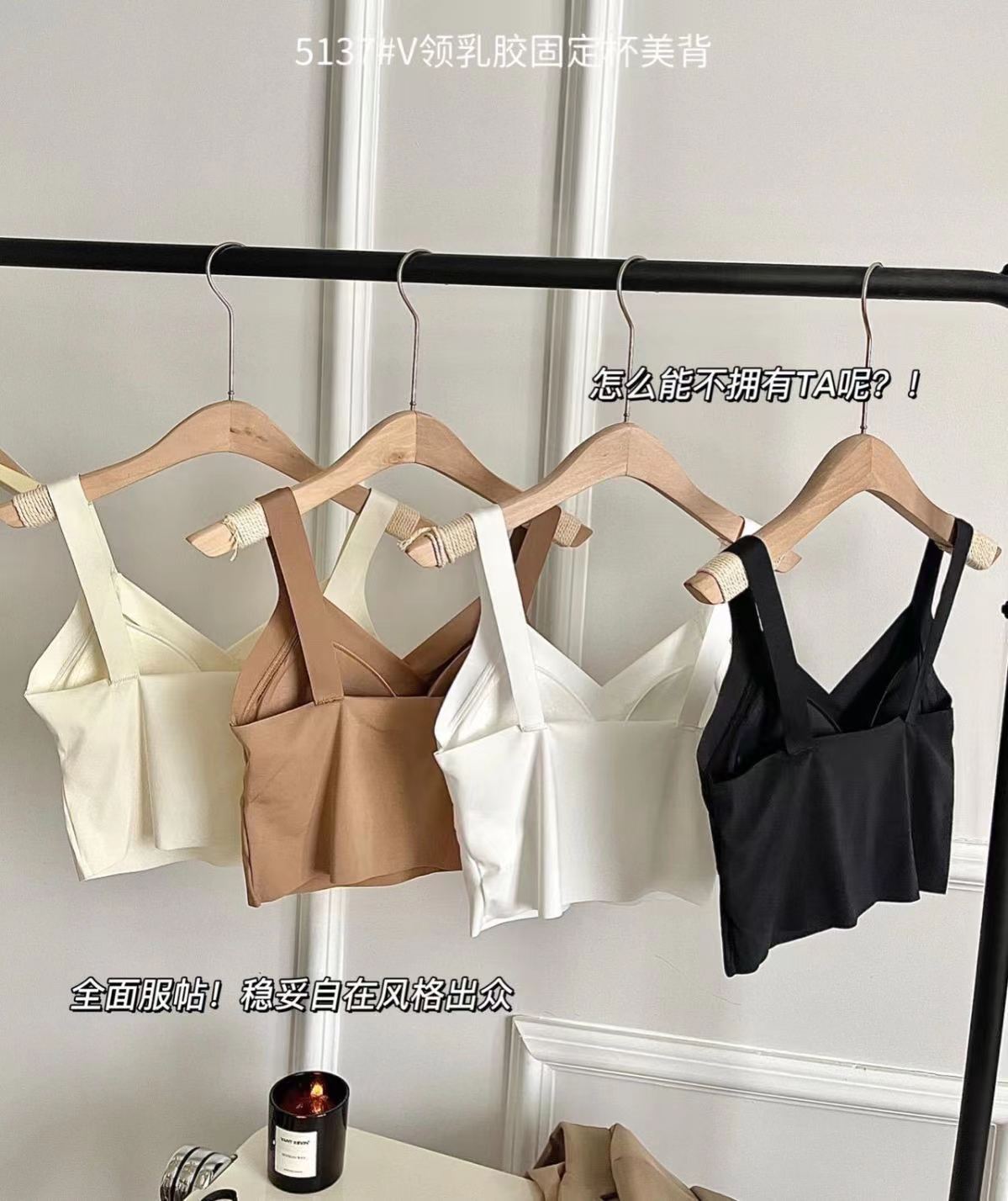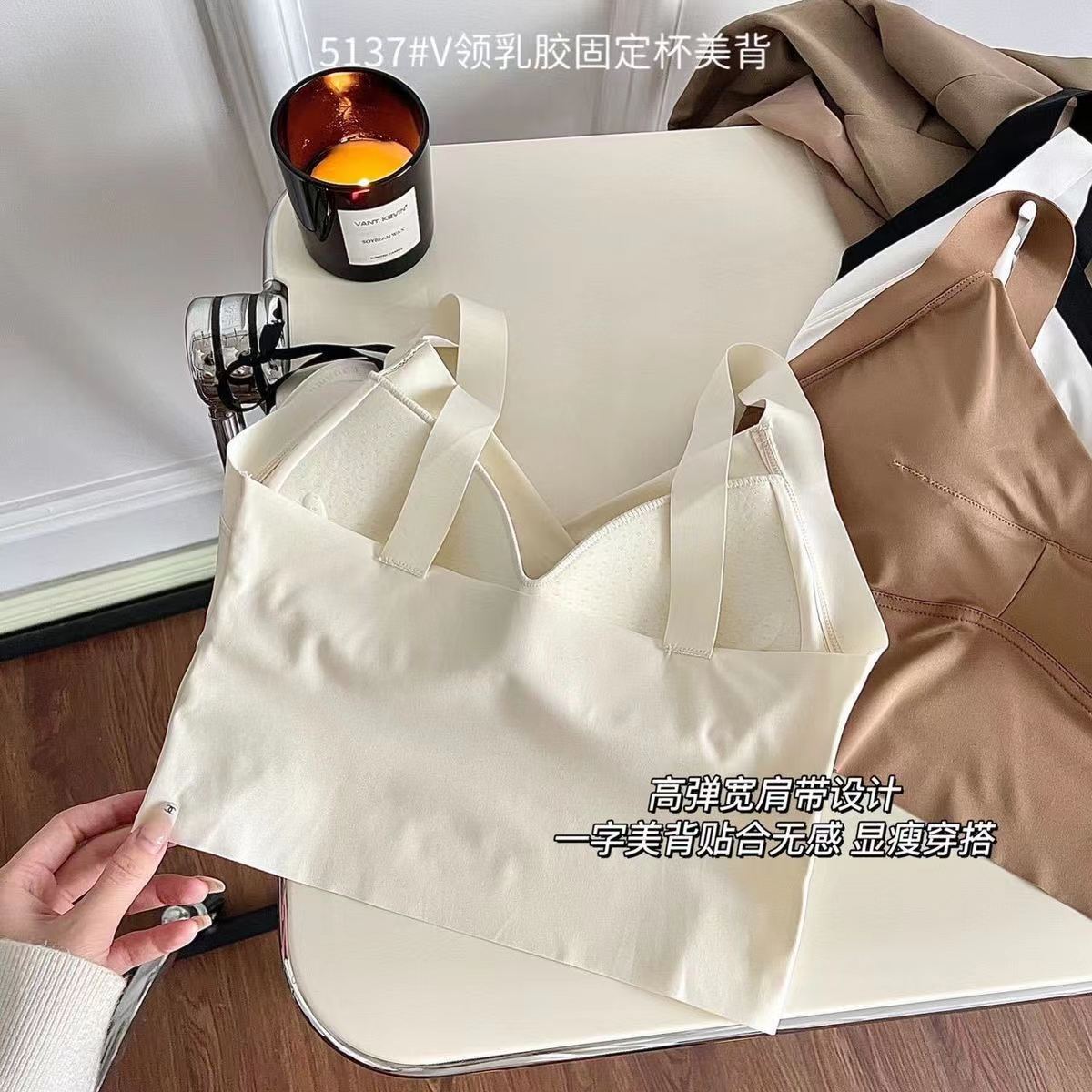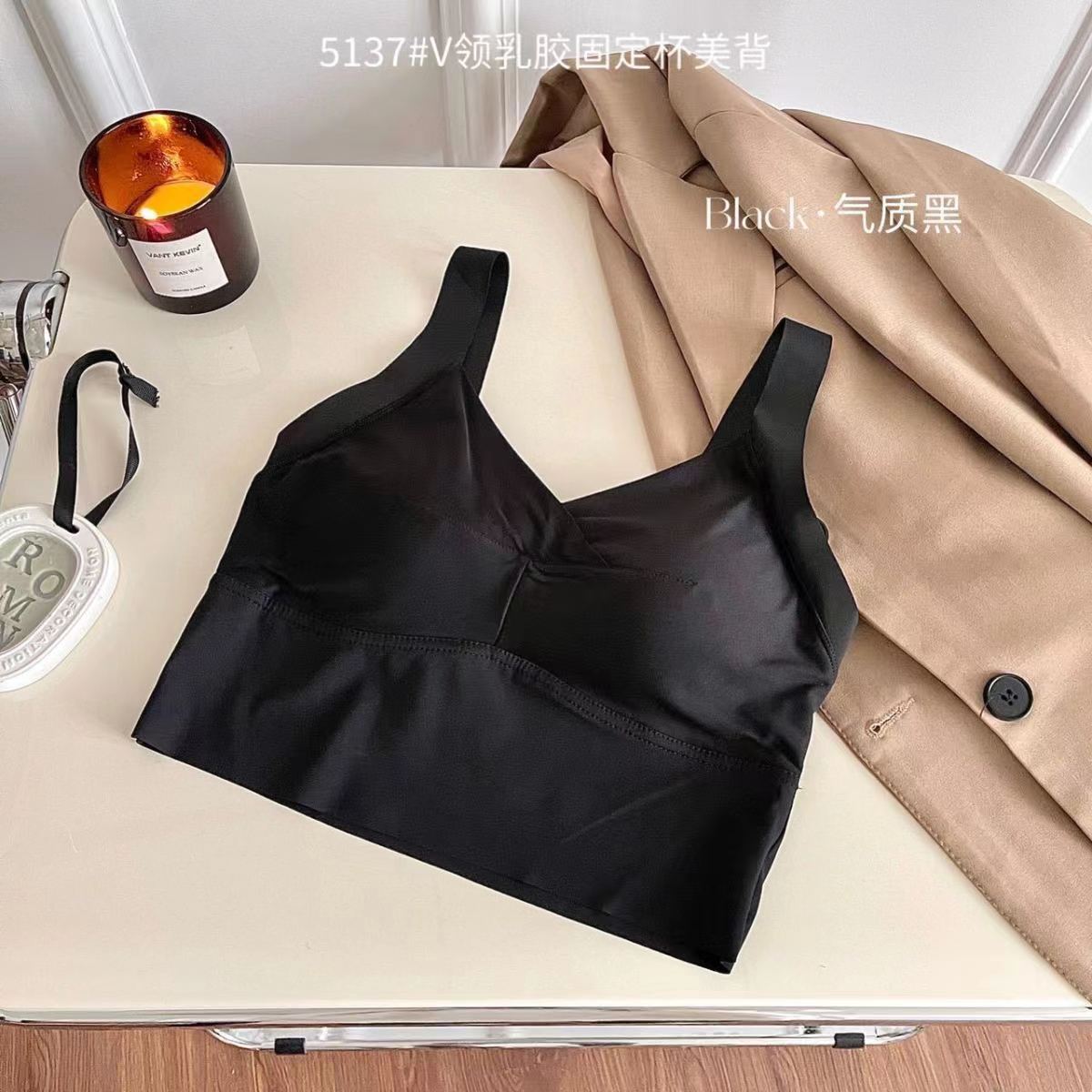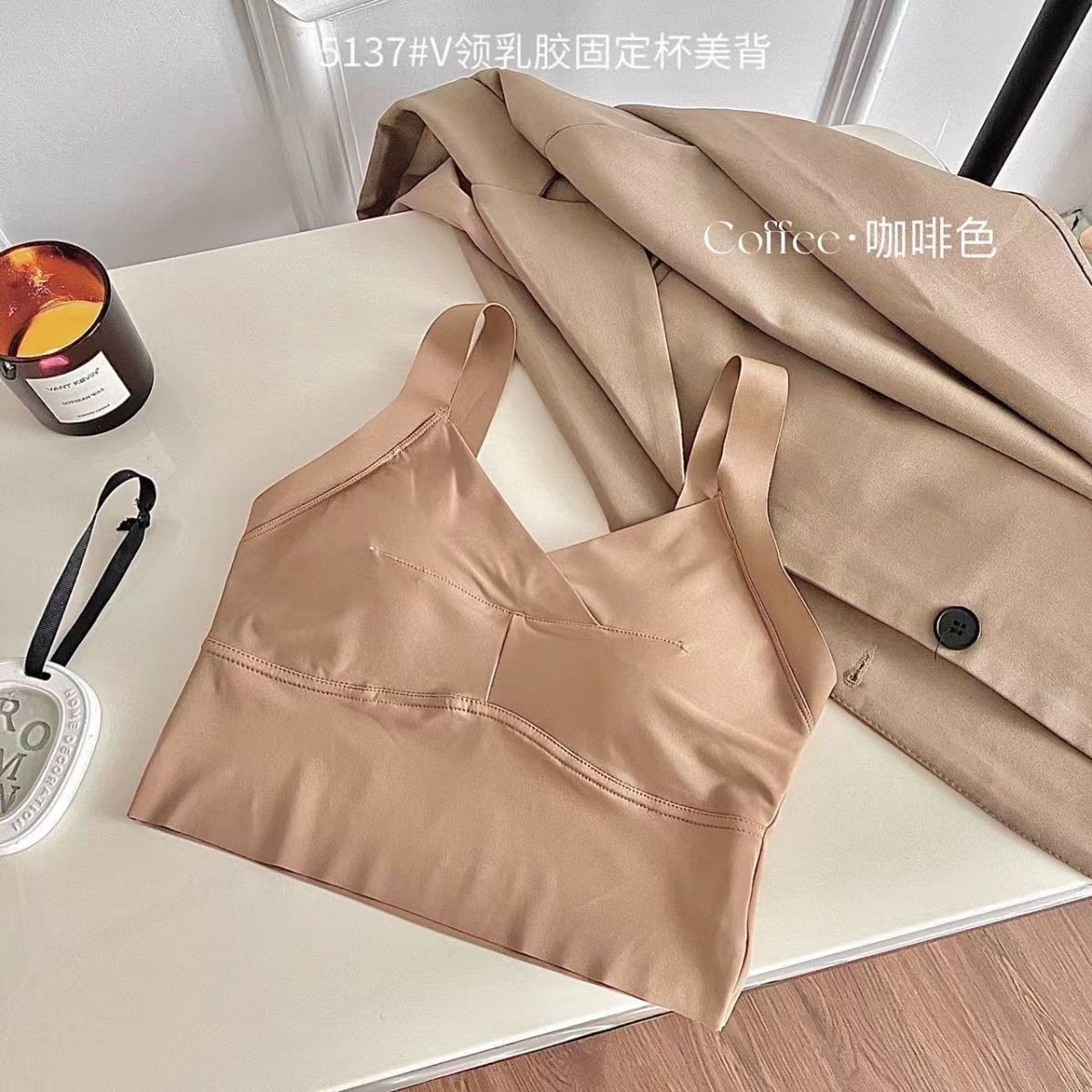 Camisola sexy de verano de seda helada con escote en V en la espalda y almohadilla para el pecho para mujer, sin costuras, interior antideslizante, ropa exterior