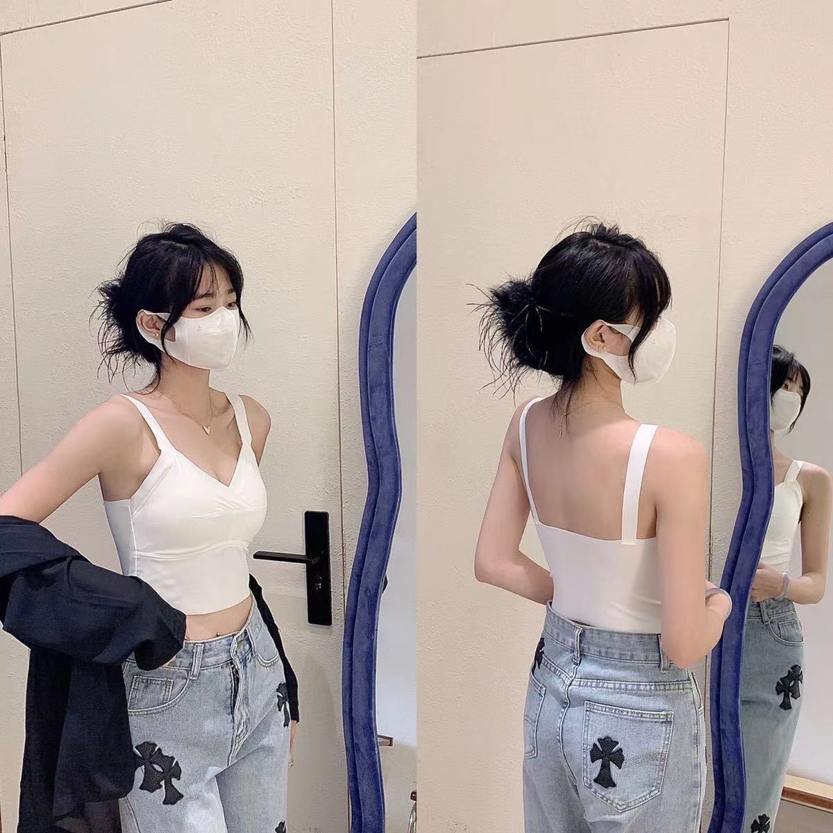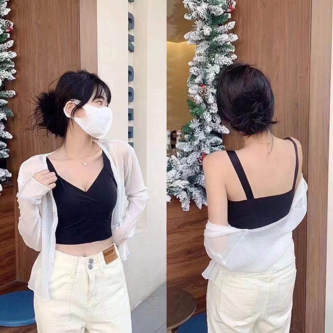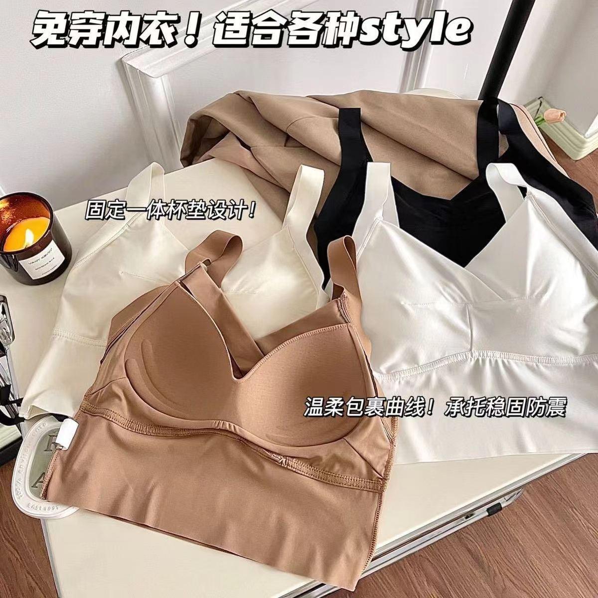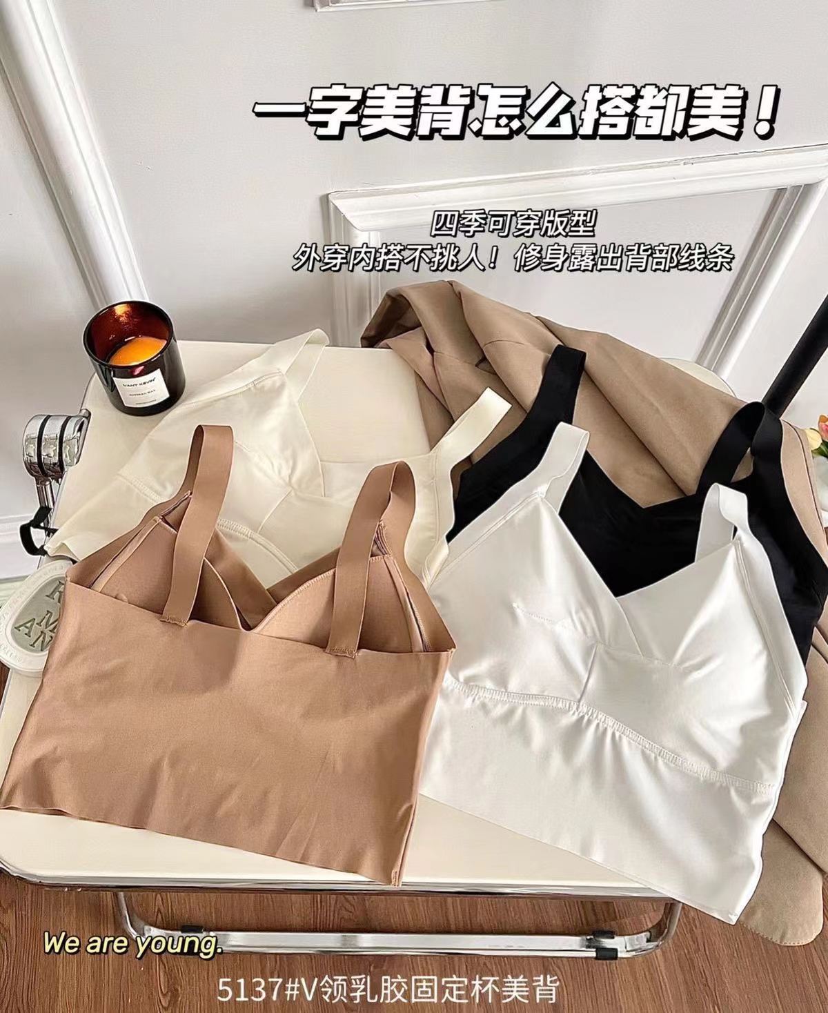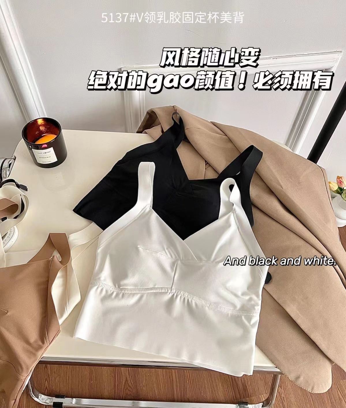 Camisola sexy de verano de seda helada con escote en V en la espalda y almohadilla para el pecho para mujer, sin costuras, interior antideslizante, ropa exterior