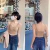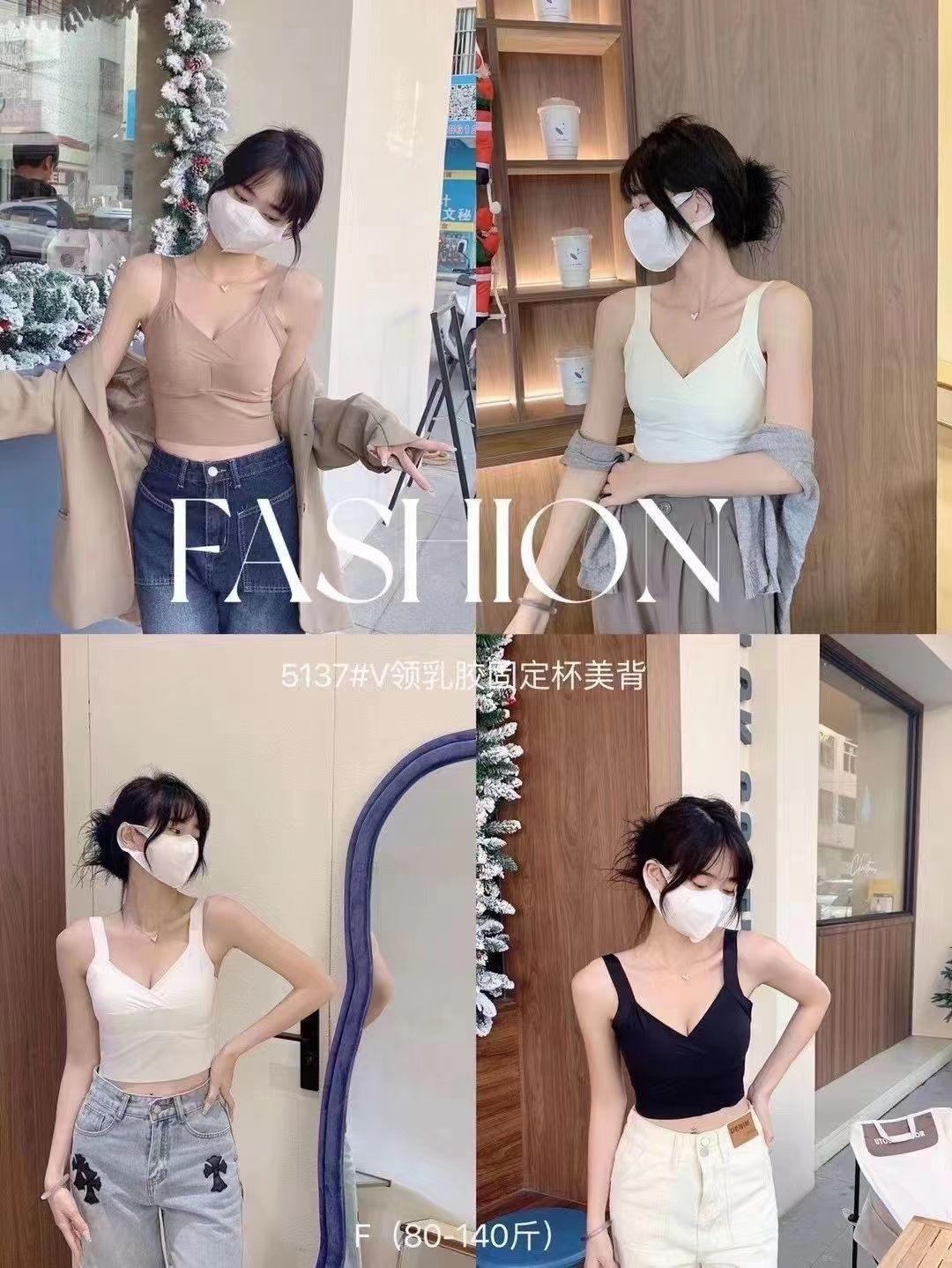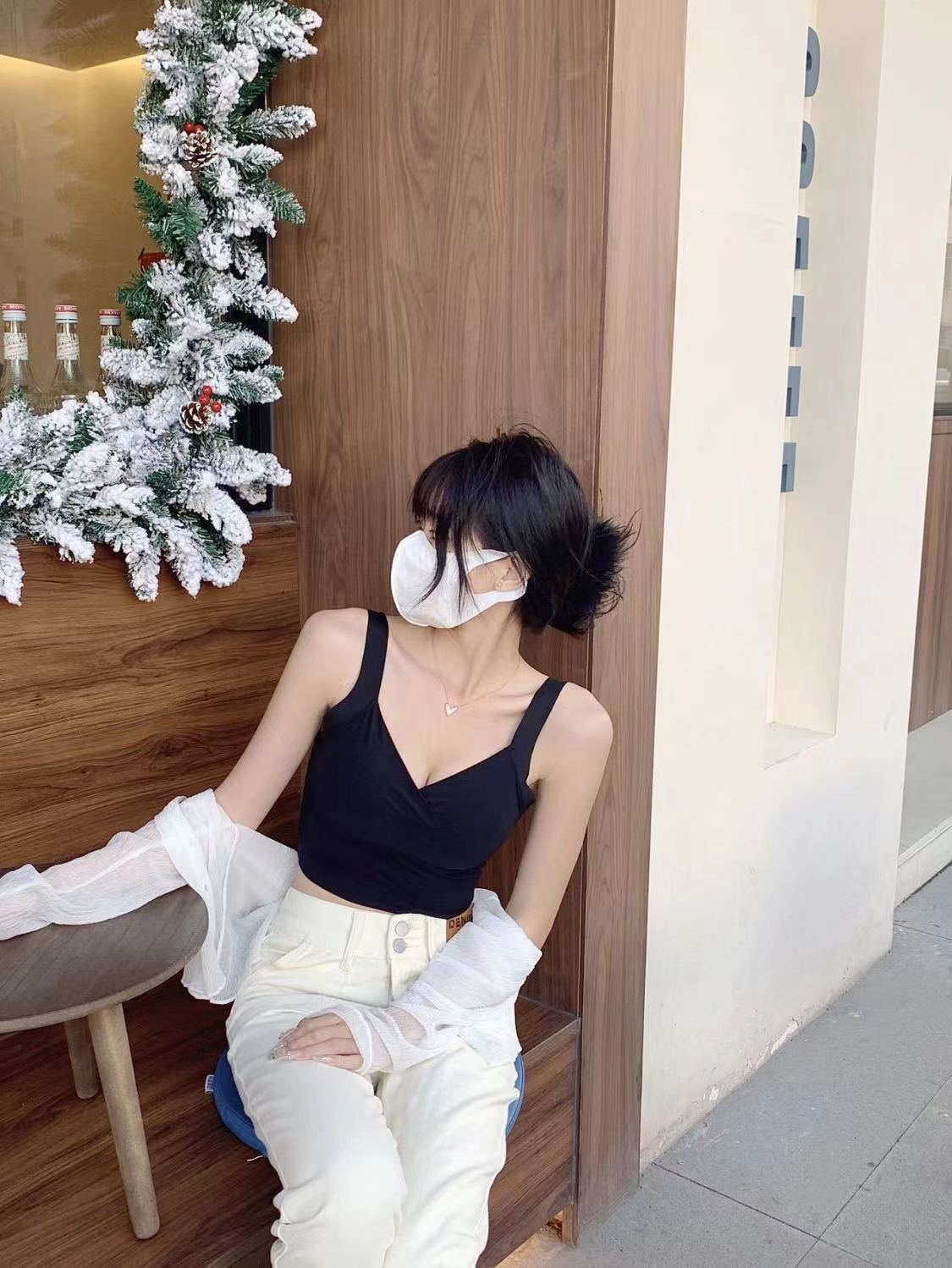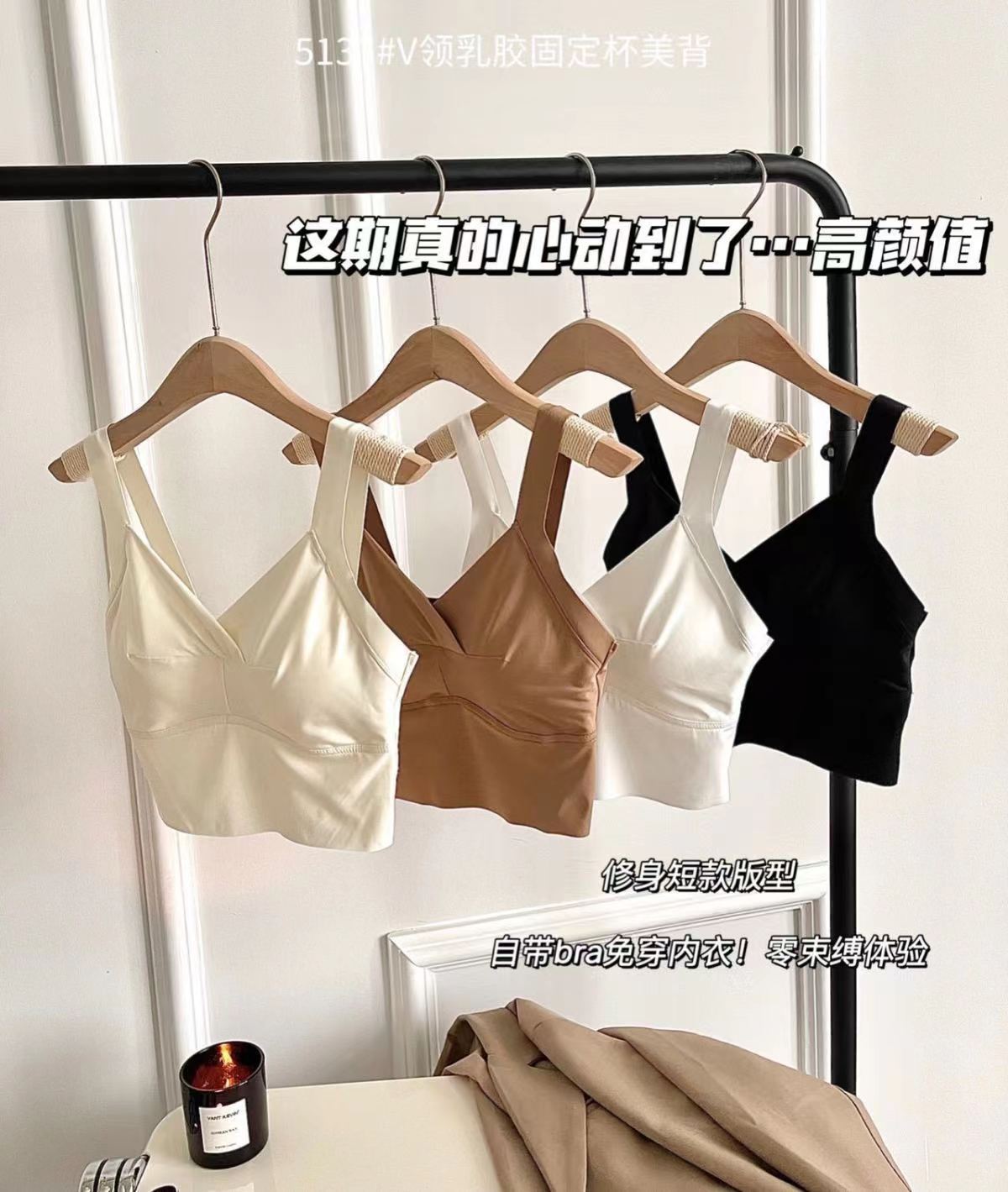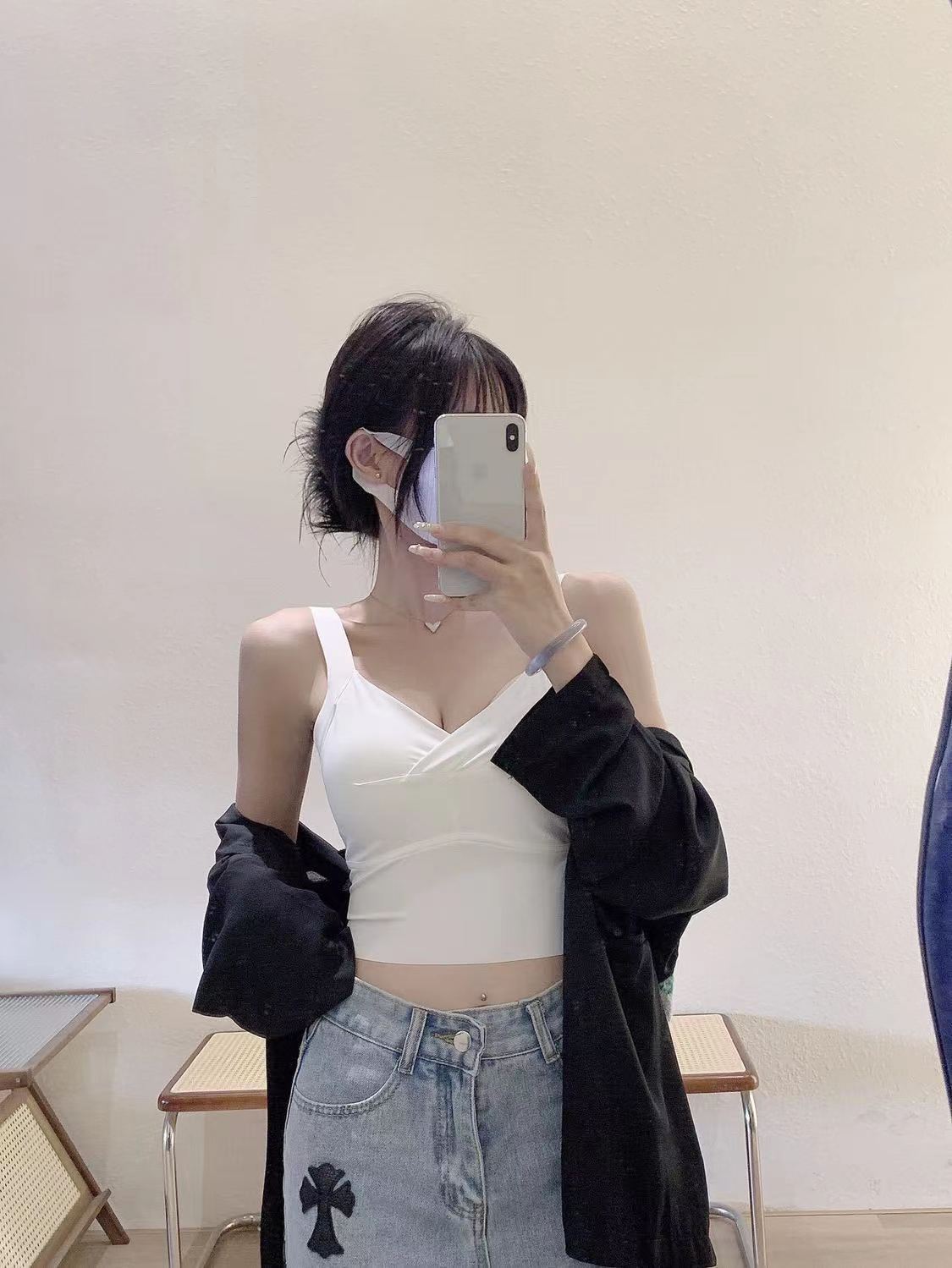Camisola sexy de verano de seda helada con escote en V en la espalda y almohadilla para el pecho para mujer, sin costuras, interior antideslizante, ropa exterior