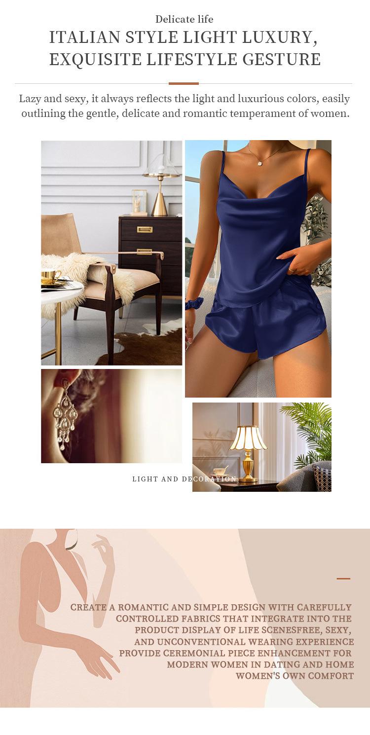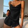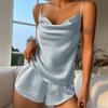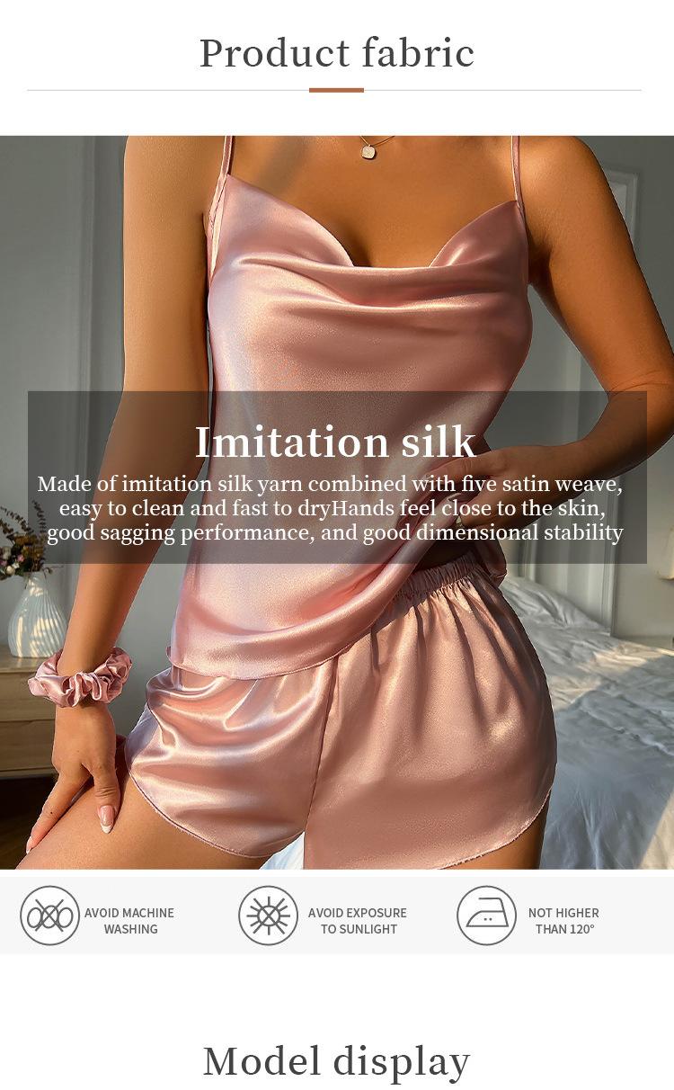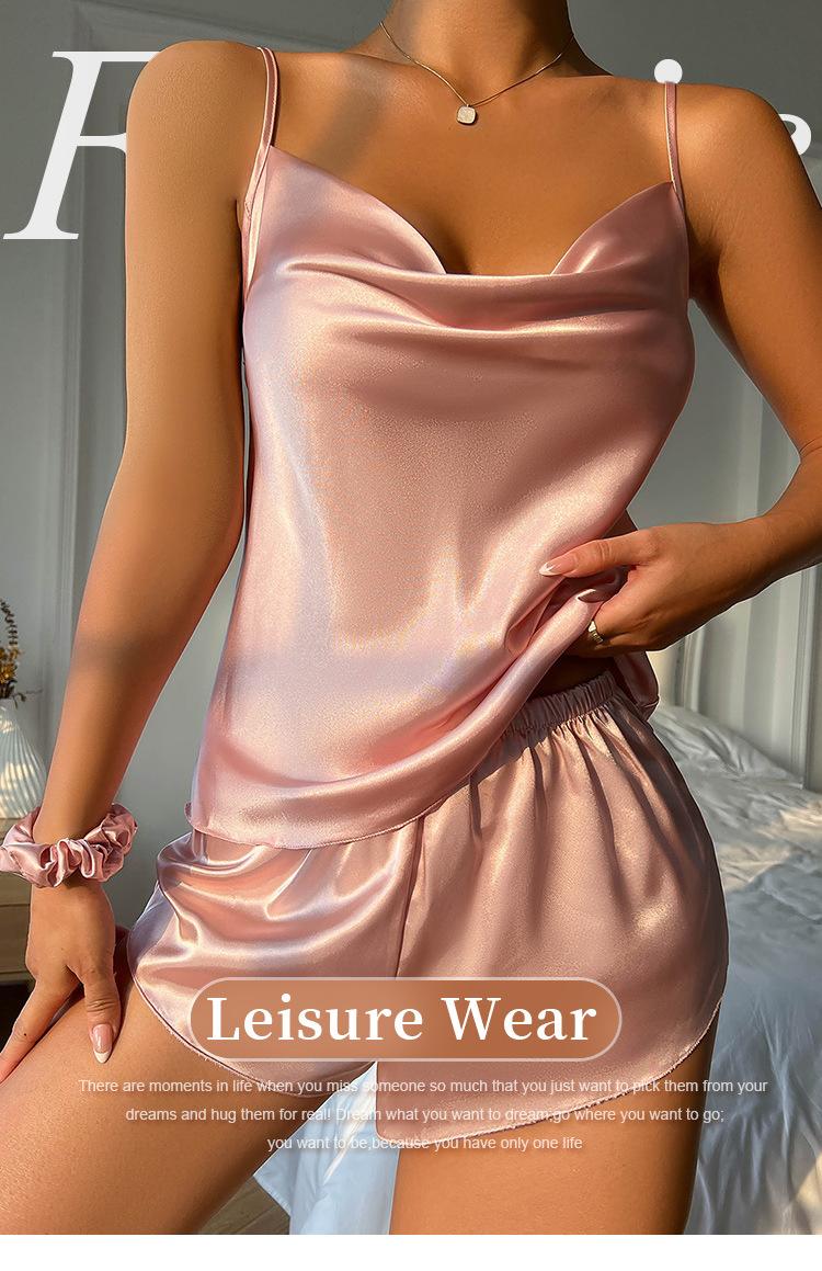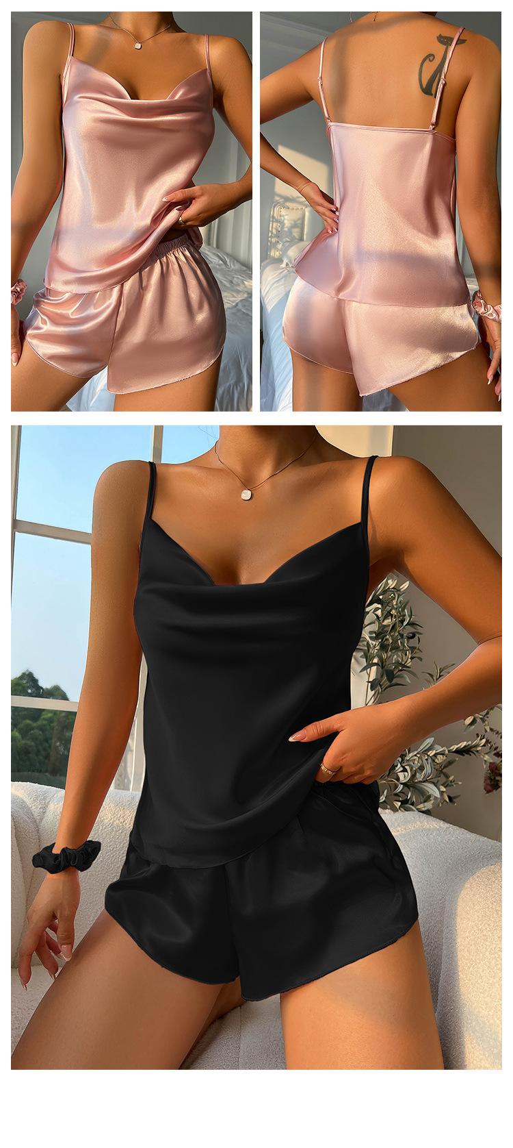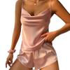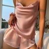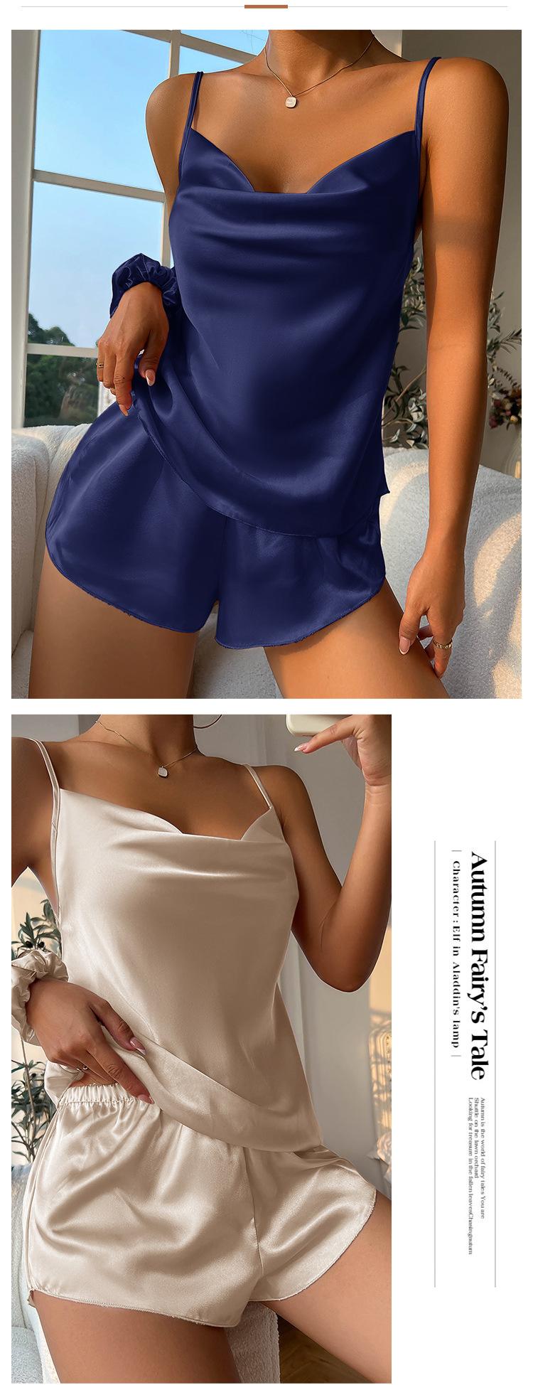 Pijama Nuevo de Seda de Hielo de Color Puro para Mujer, Conjunto Delgado de Shorts con Tirantes para el Hogar, Sexy y Ligero, Conjunto de Ropa para el Hogar de Dos Piezas