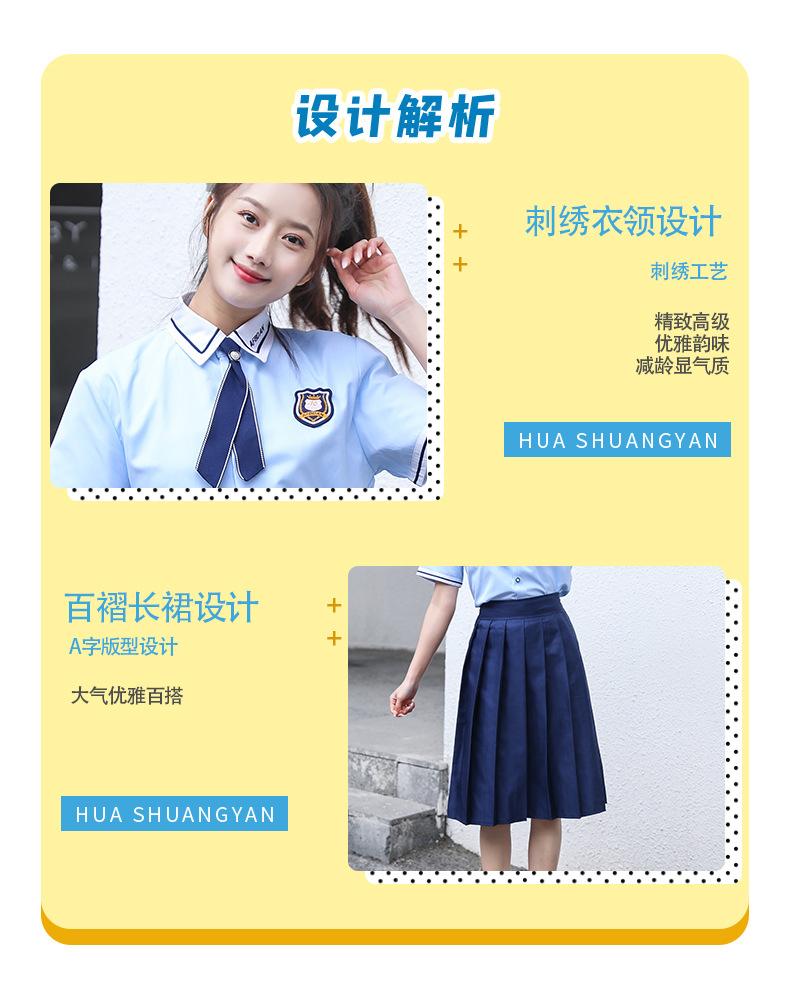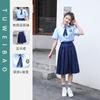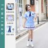 Women's blue short-sleeved shirt + blue long skirt + blue woven bow tie + badge, Women's blue short-sleeved + ...