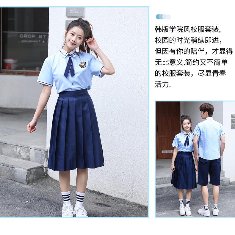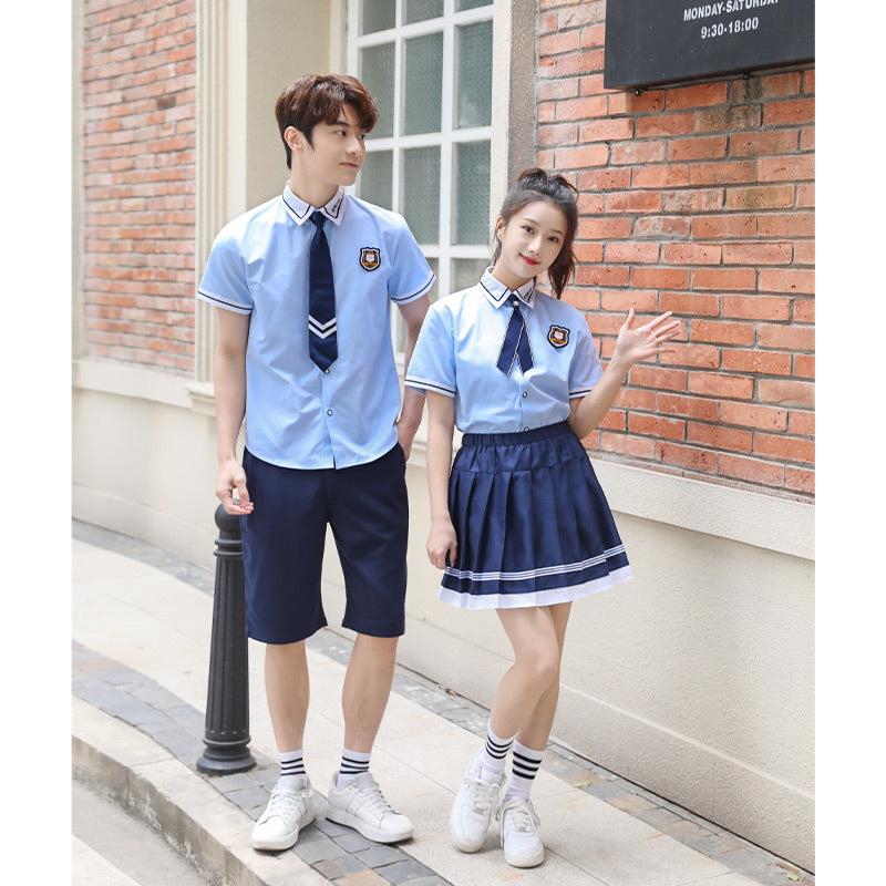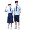 Uniforme escolar de secundaria traje vestido uniforme de clase camisa azul estudiantes jóvenes discurso ropa de actuación de pequeño anfitrión al por mayor
