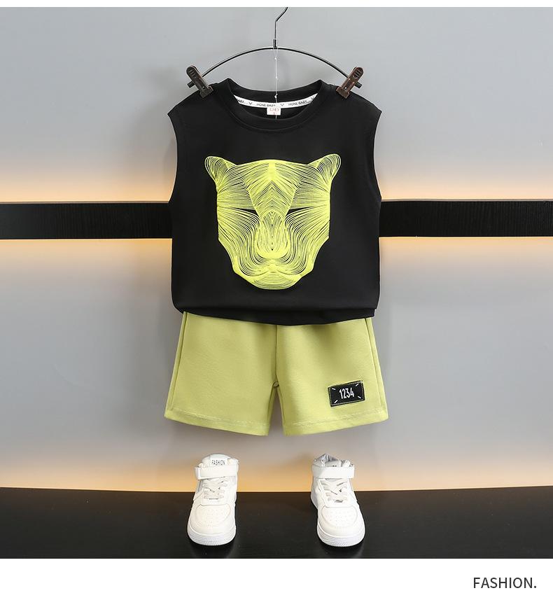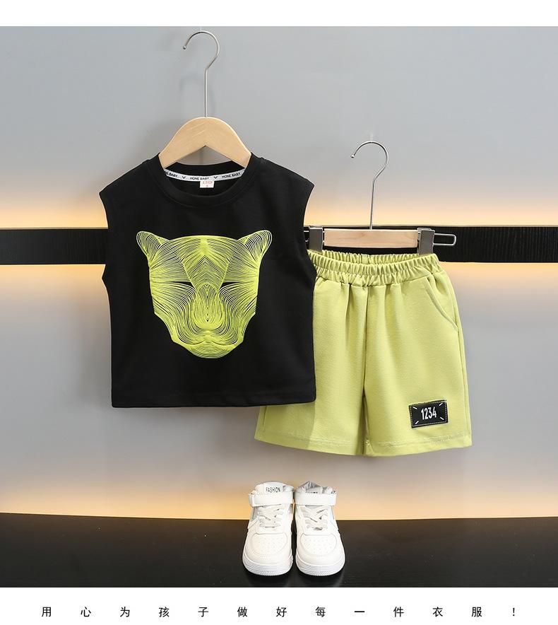 Traje de Verano para Niño Ropa de Moda para Niños Nuevo 2025 Chaleco sin Mangas Shorts Conjunto de Dos Piezas Guapo y a la Moda