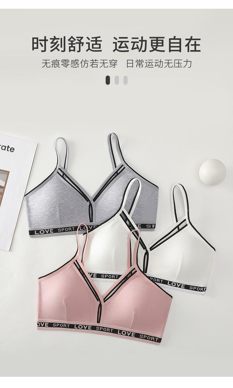 Sujetador deportivo transpirable y absorbente de sudor, ropa interior sexy de verano transfronterizo de algodón estilo francés con envoltorio de pecho para niña
