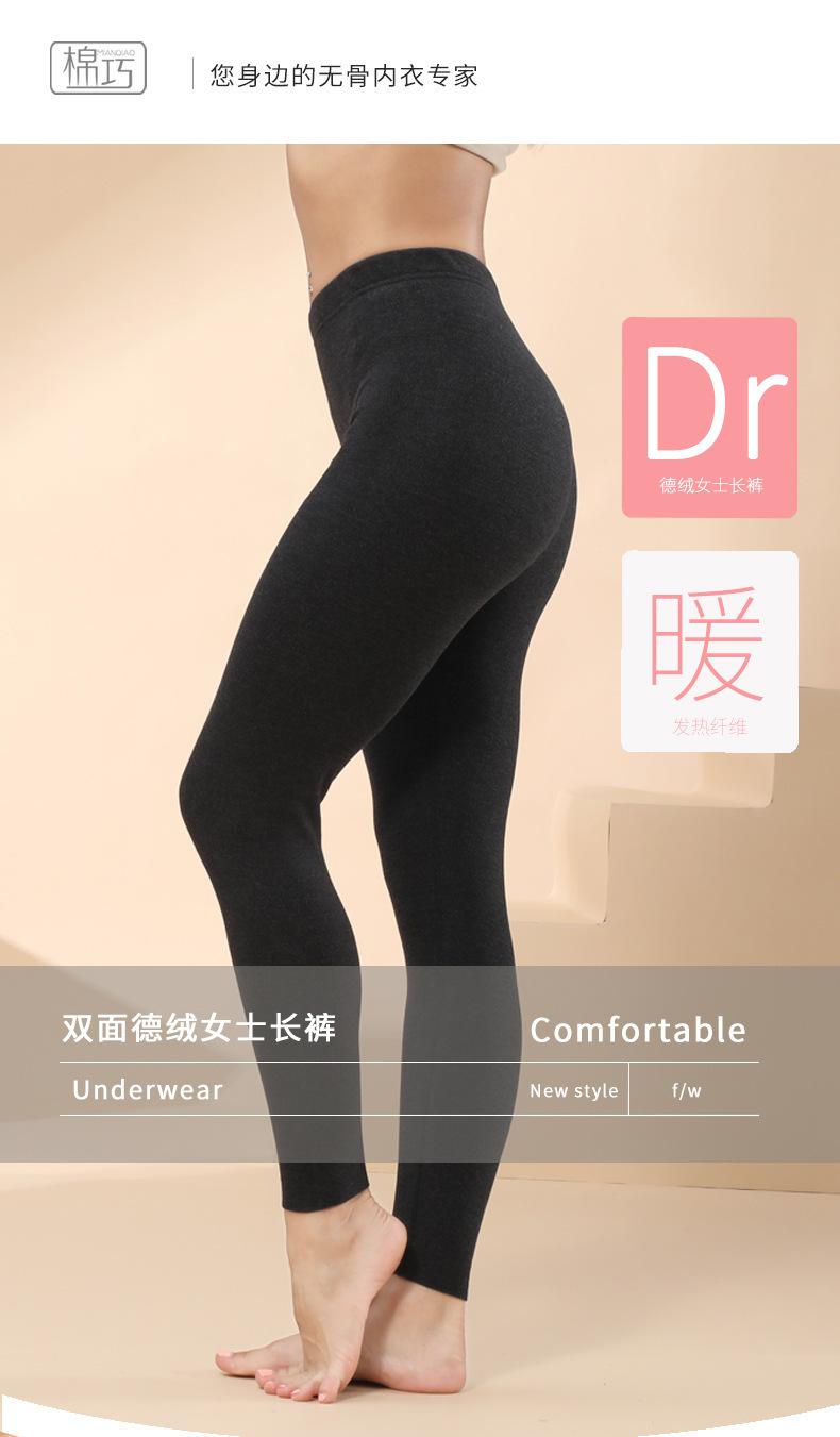Pantalones largos ajustados y cálidos de terciopelo de doble cara para otoño e invierno con contracción abdominal y calefacción para mujer, pantalones de protección abdominal con forro polar.