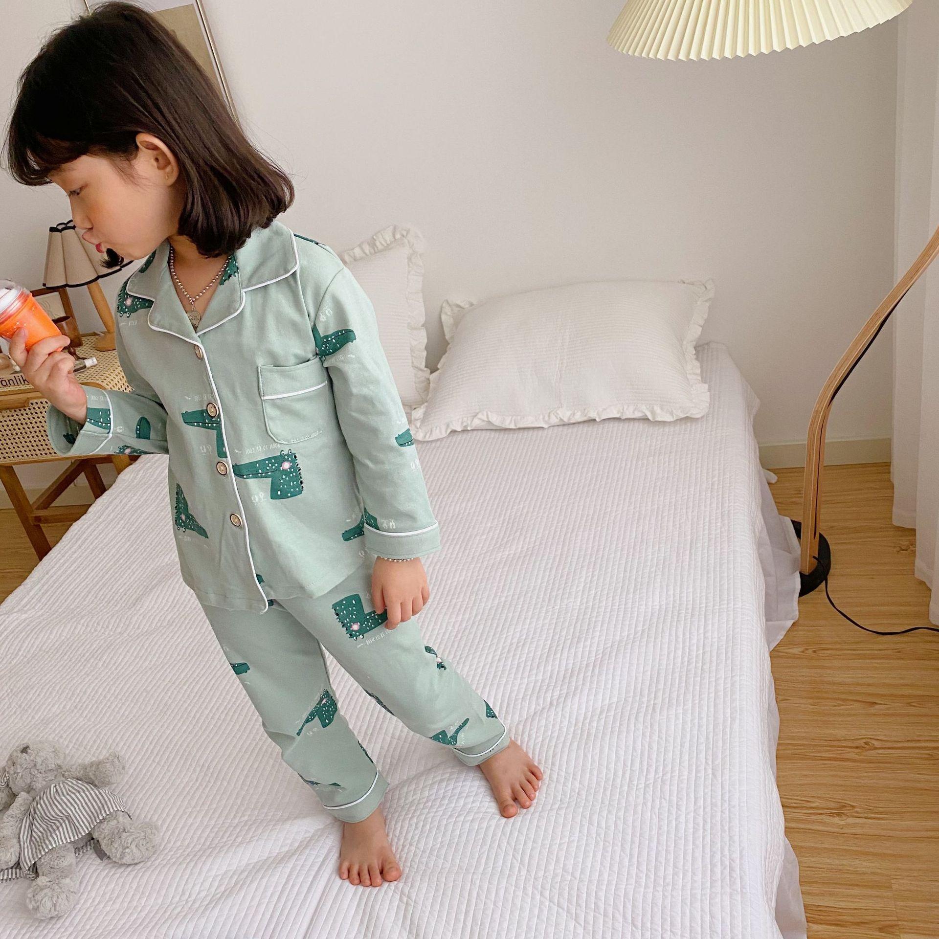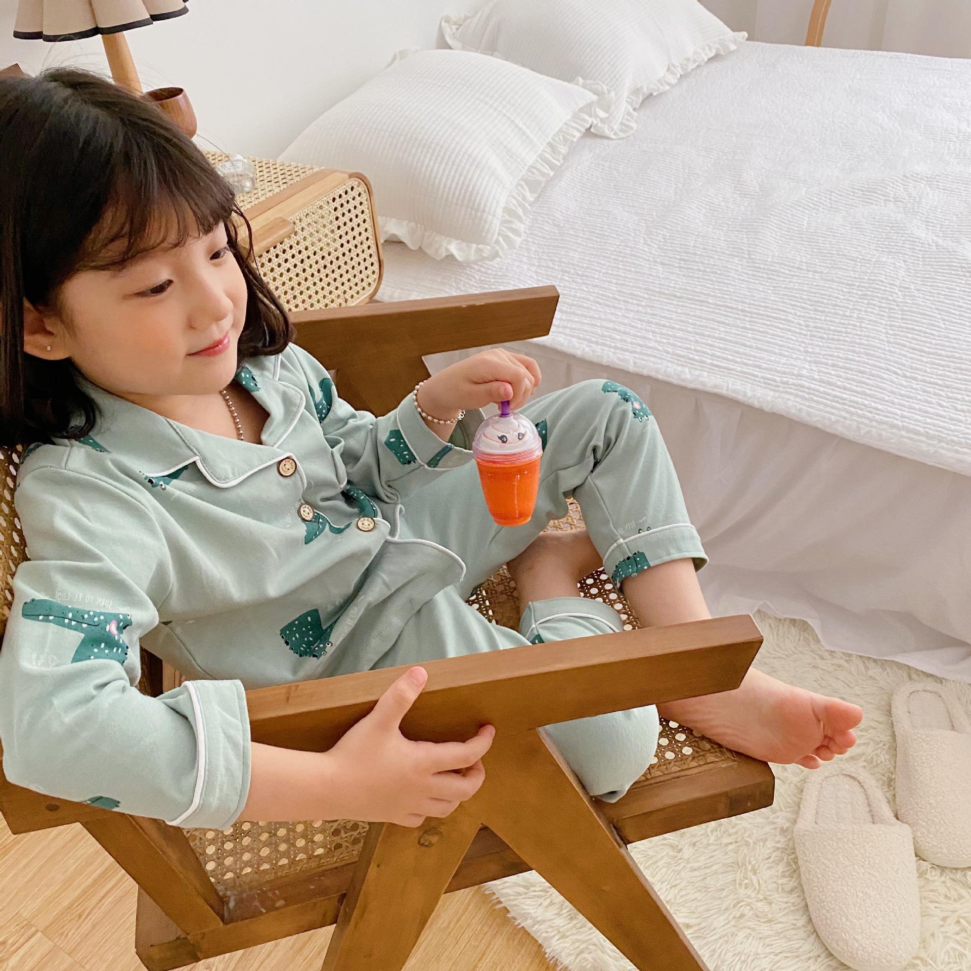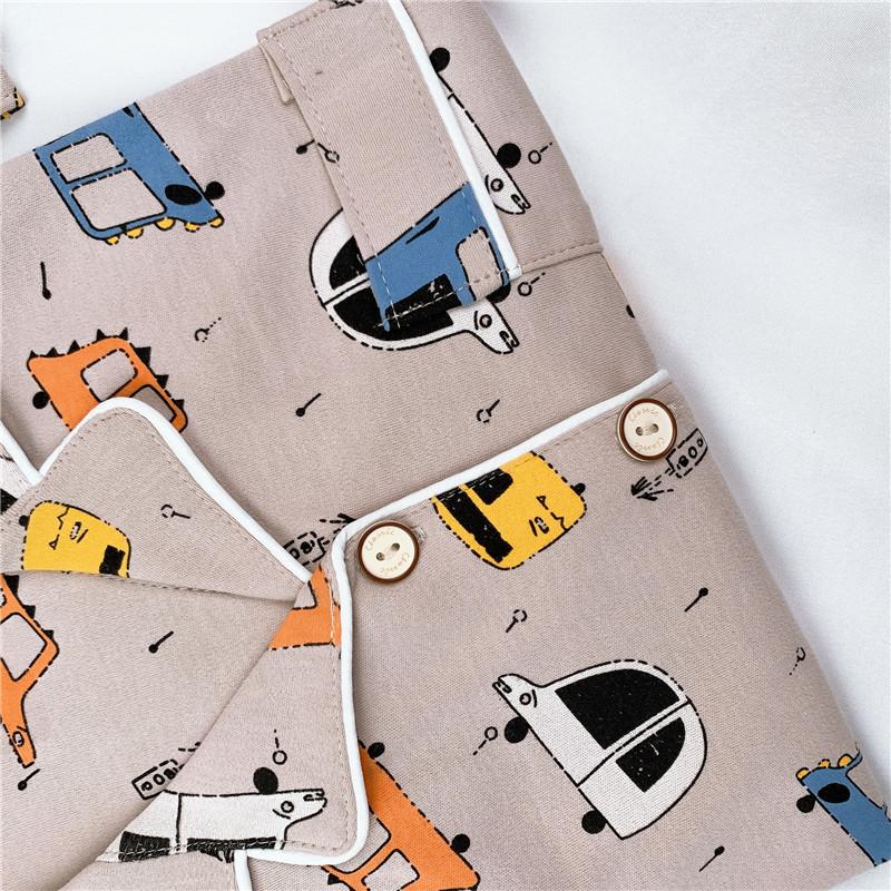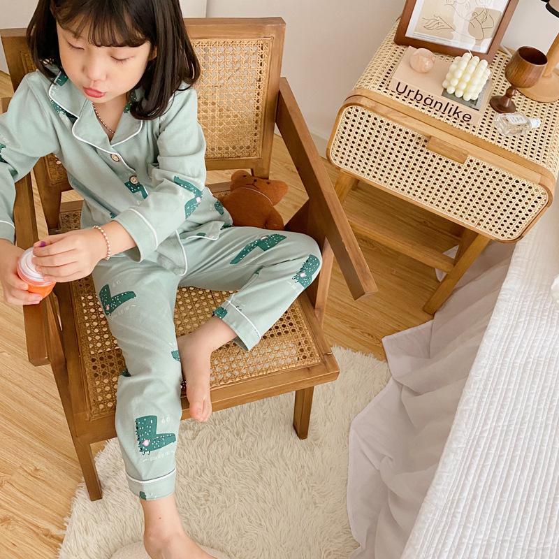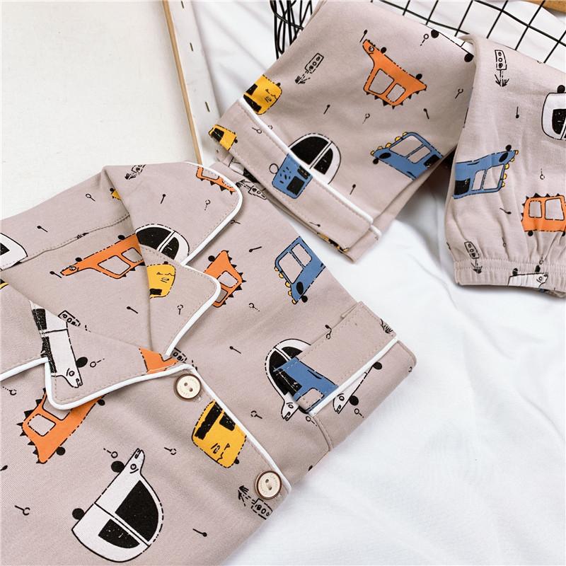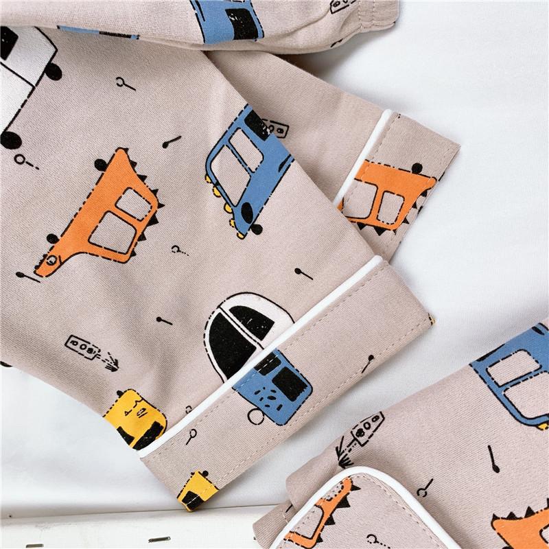Dropshipping Pijama Cárdigan de Algodón Puro para Niños y Niñas Pijama de Dibujos Animados de Manga Larga con Solapa Conjunto de Ropa para el Hogar de Algodón