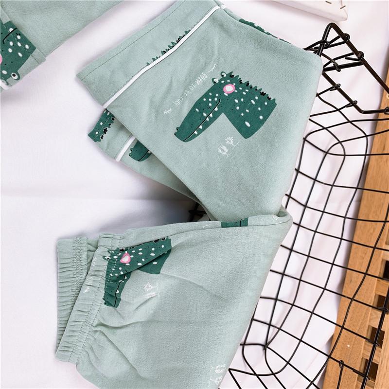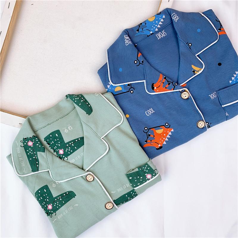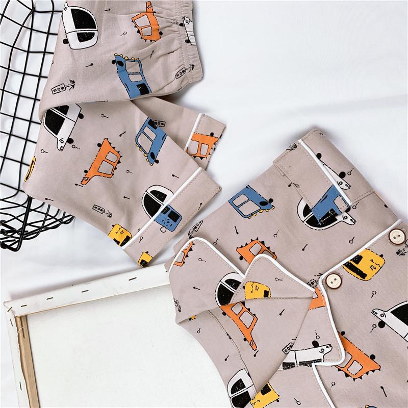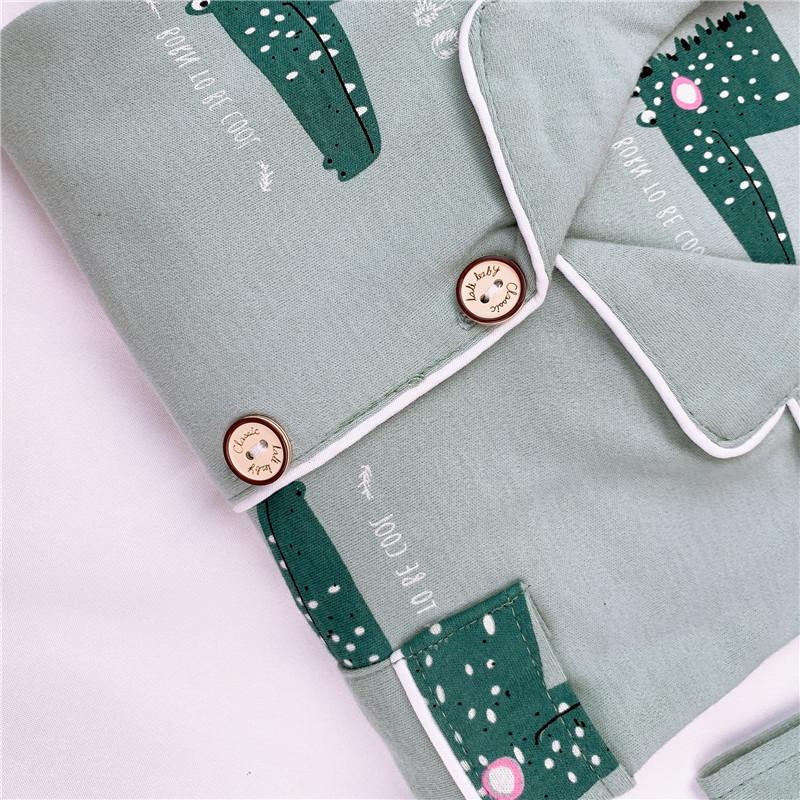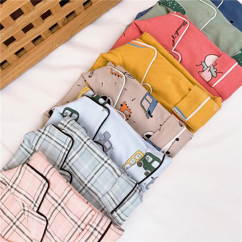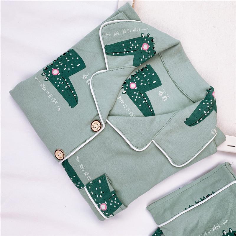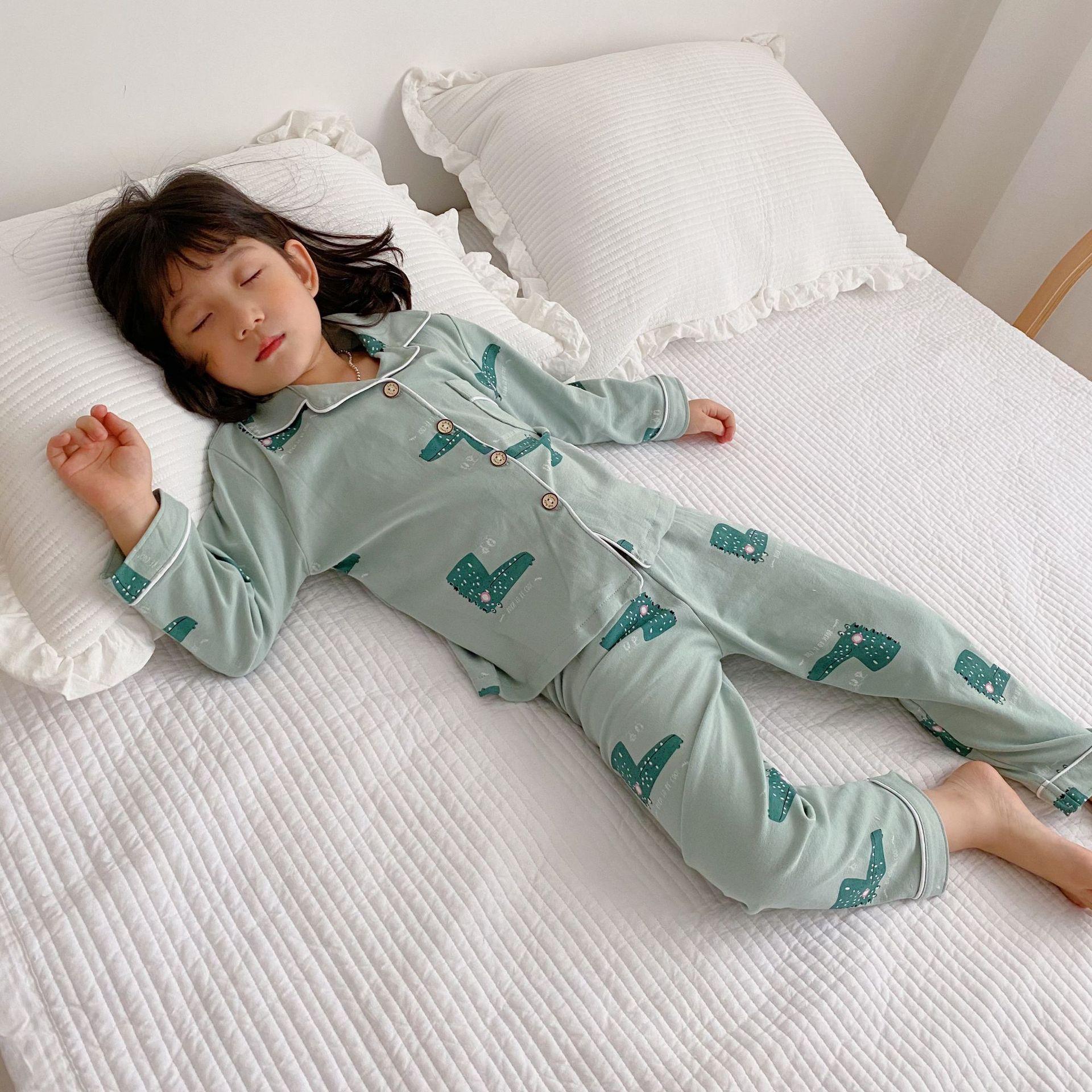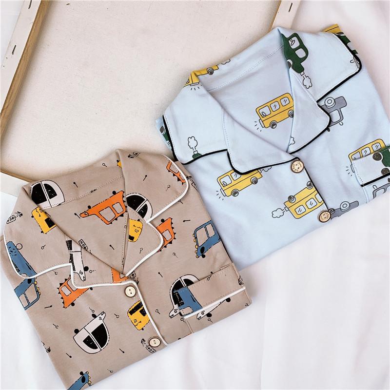 Dropshipping Pijama Cárdigan de Algodón Puro para Niños y Niñas Pijama de Dibujos Animados de Manga Larga con Solapa Conjunto de Ropa para el Hogar de Algodón
