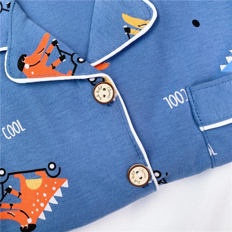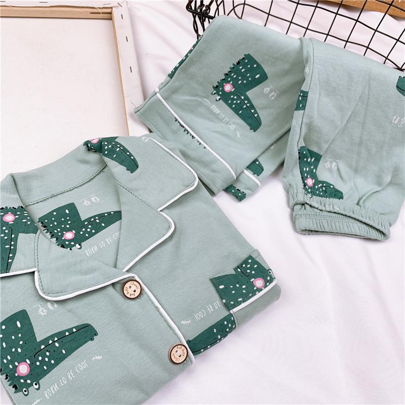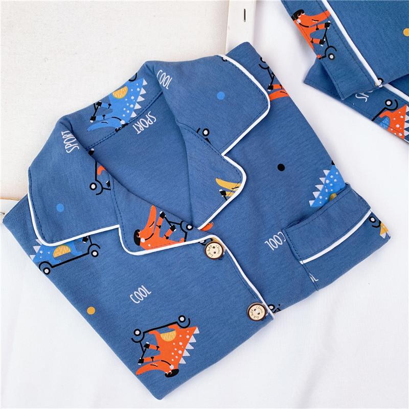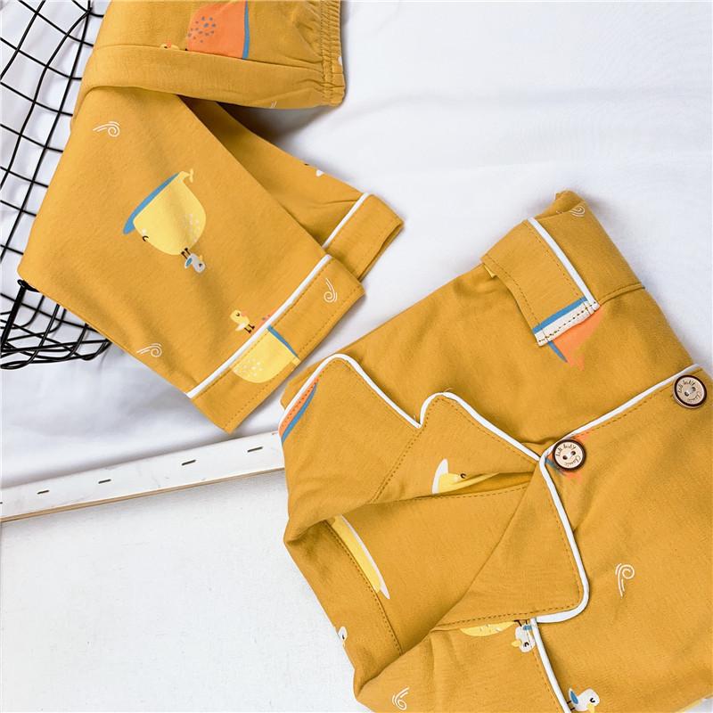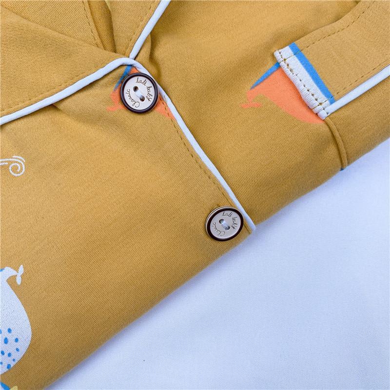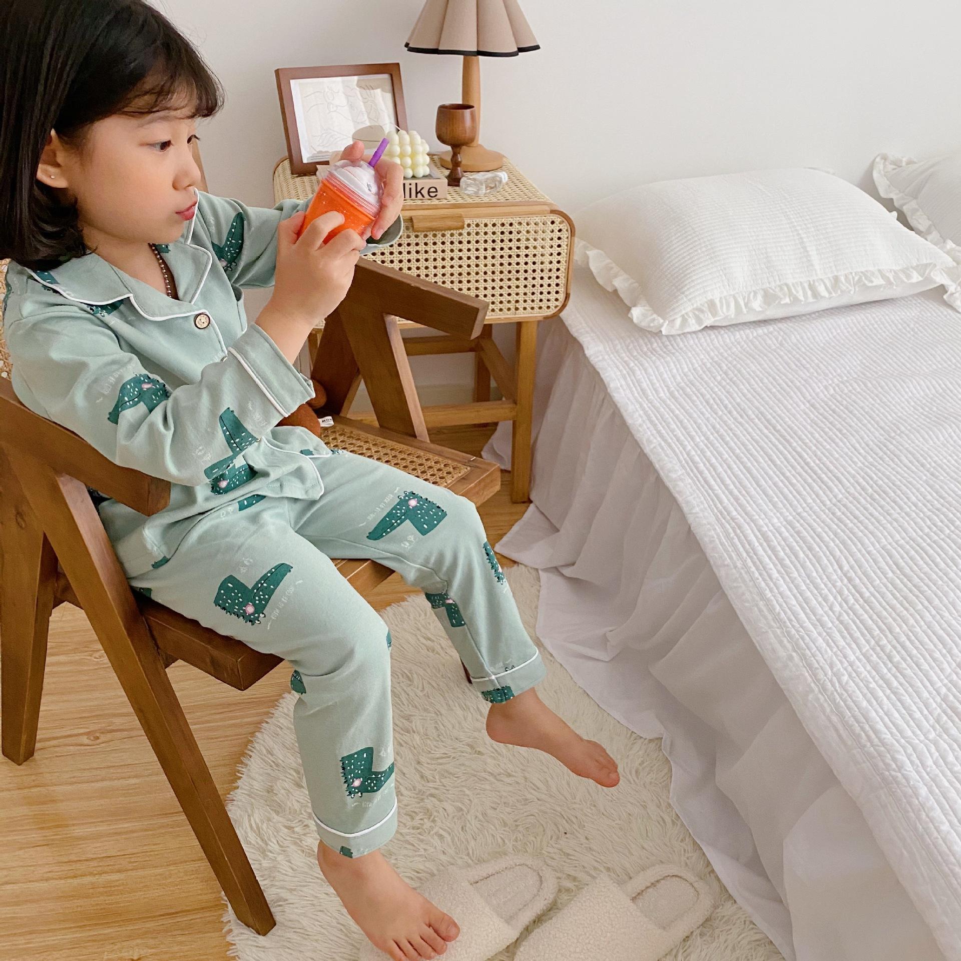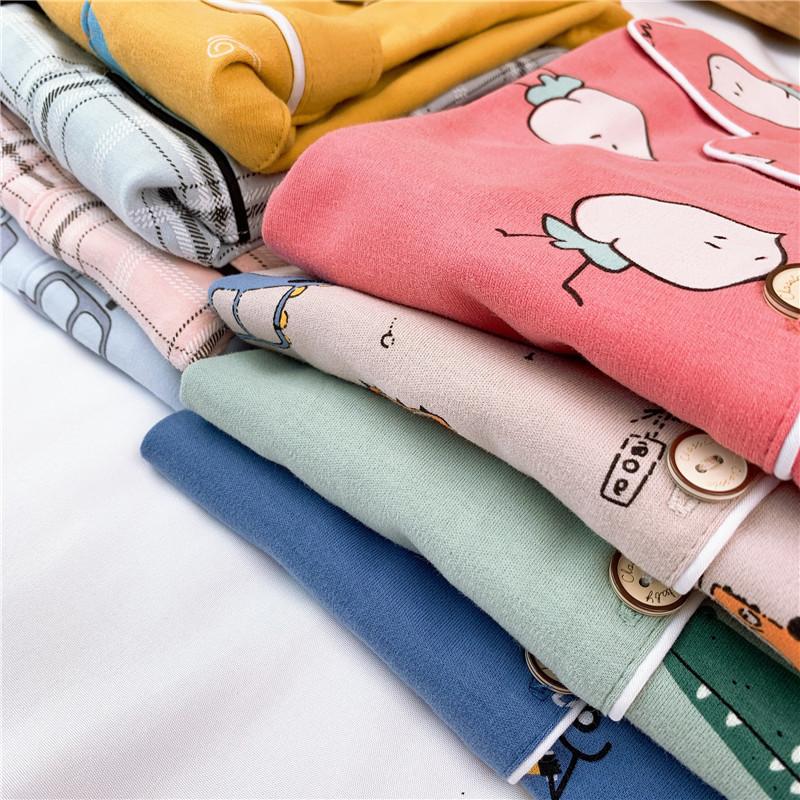 Dropshipping Pijama Cárdigan de Algodón Puro para Niños y Niñas Pijama de Dibujos Animados de Manga Larga con Solapa Conjunto de Ropa para el Hogar de Algodón