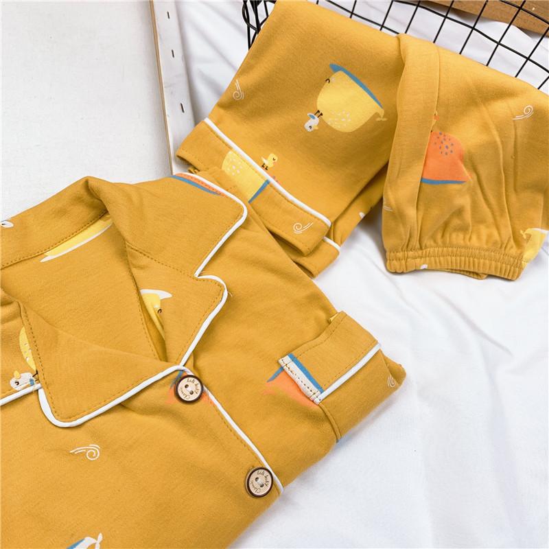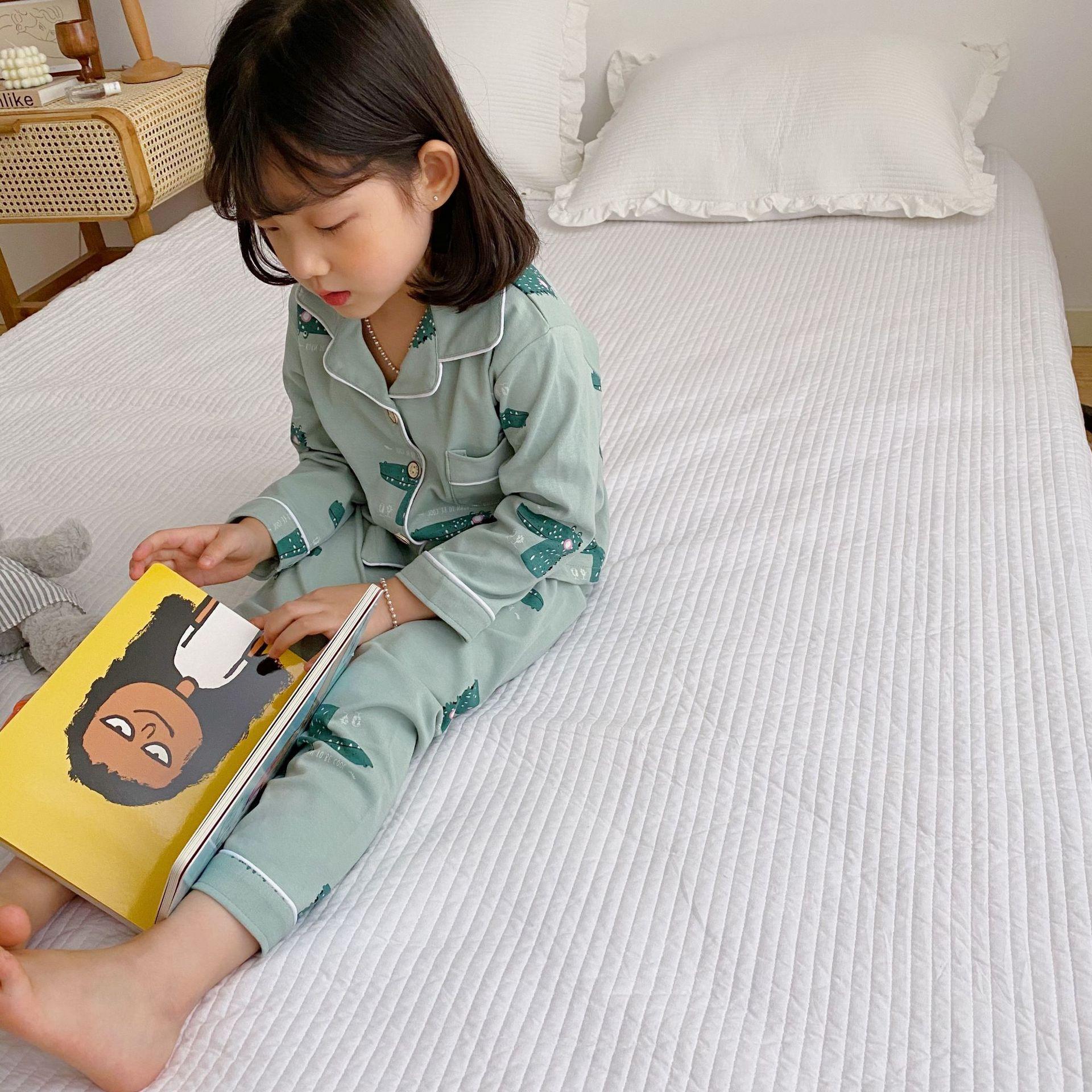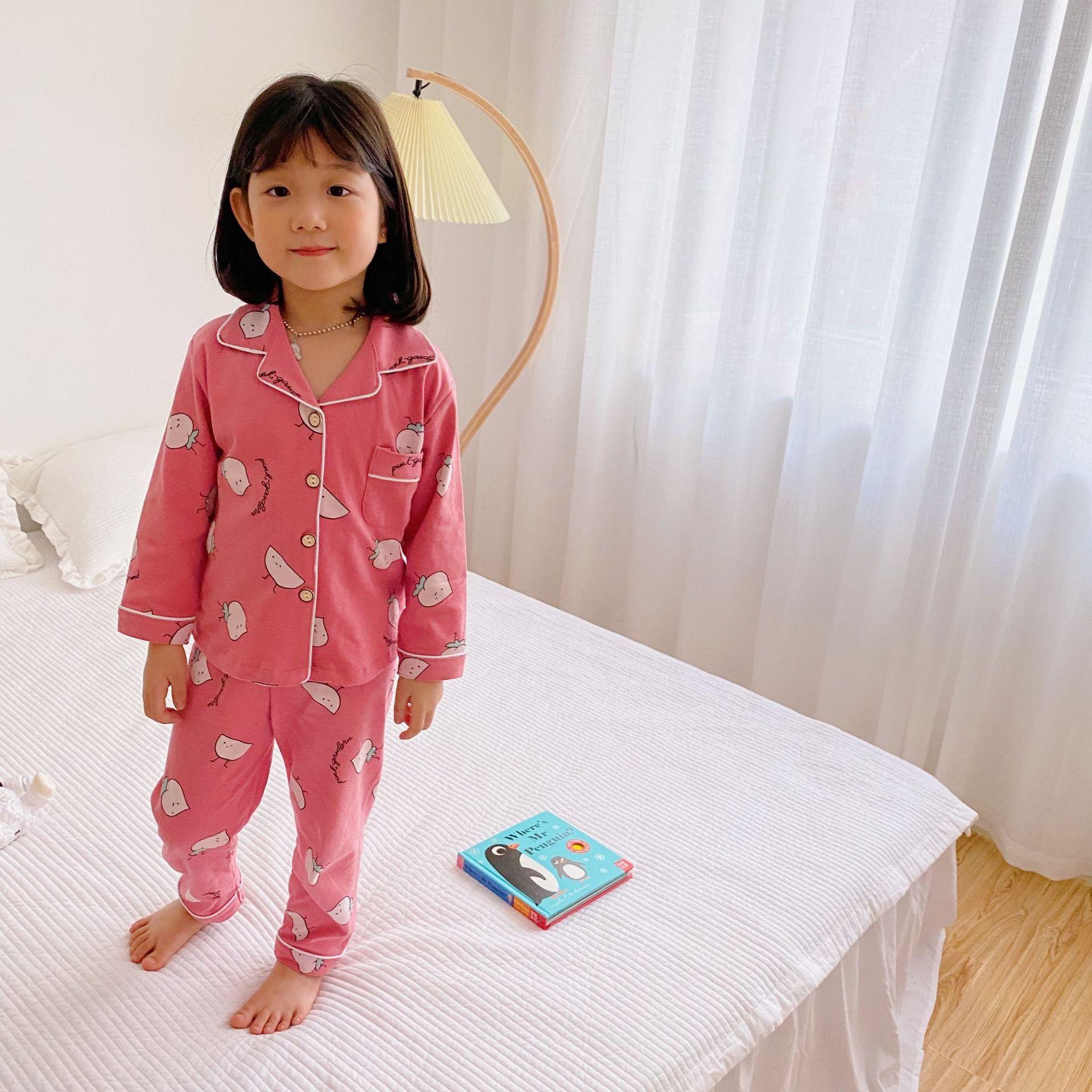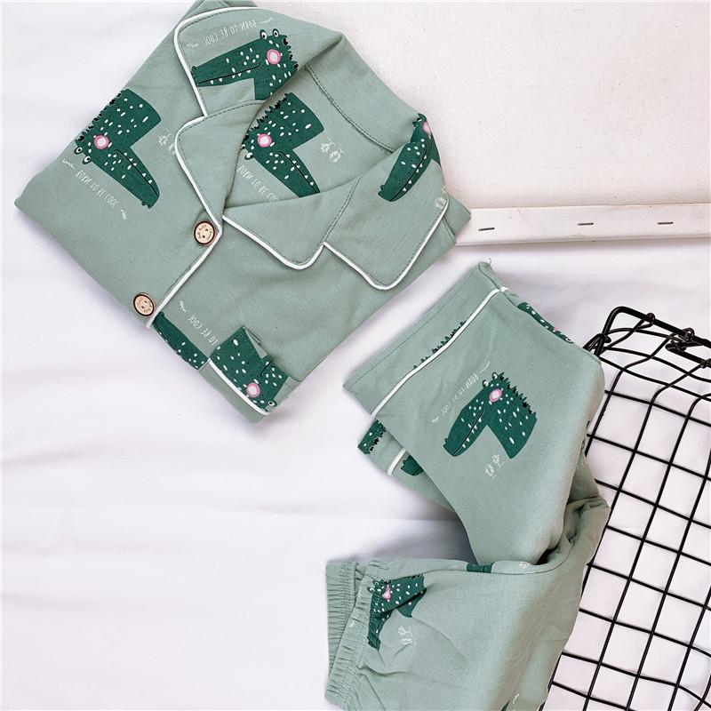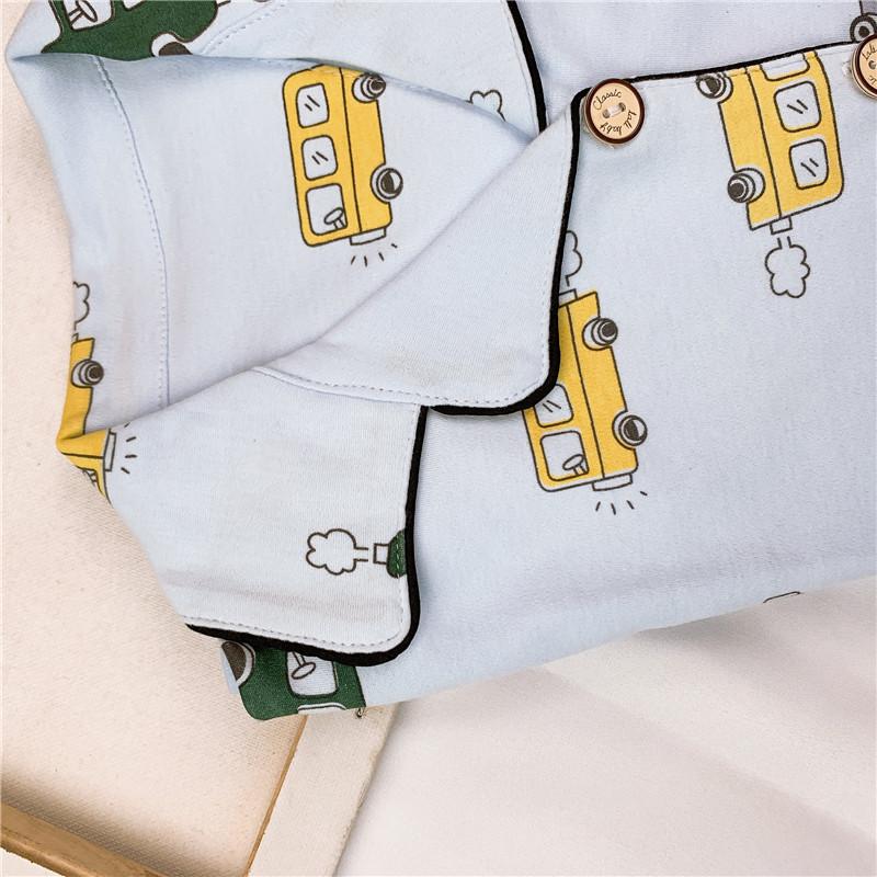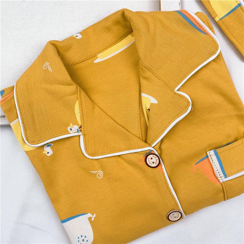 Dropshipping Pijama Cárdigan de Algodón Puro para Niños y Niñas Pijama de Dibujos Animados de Manga Larga con Solapa Conjunto de Ropa para el Hogar de Algodón