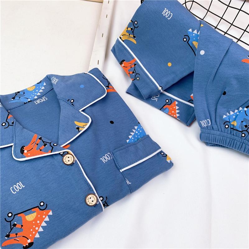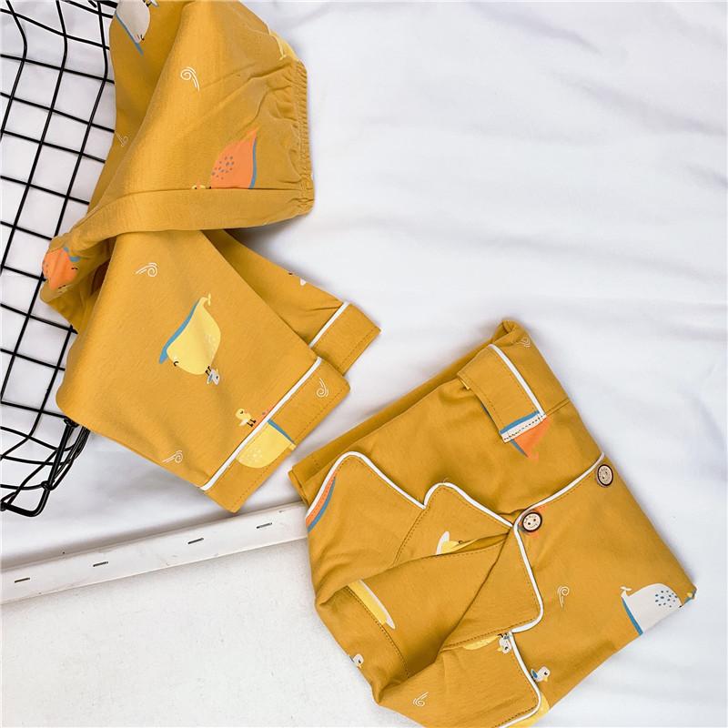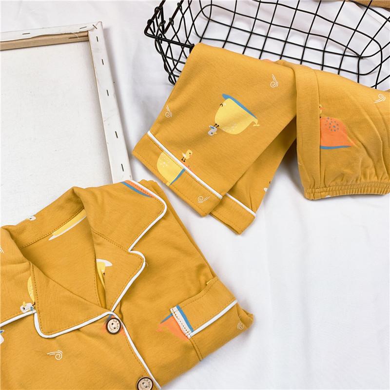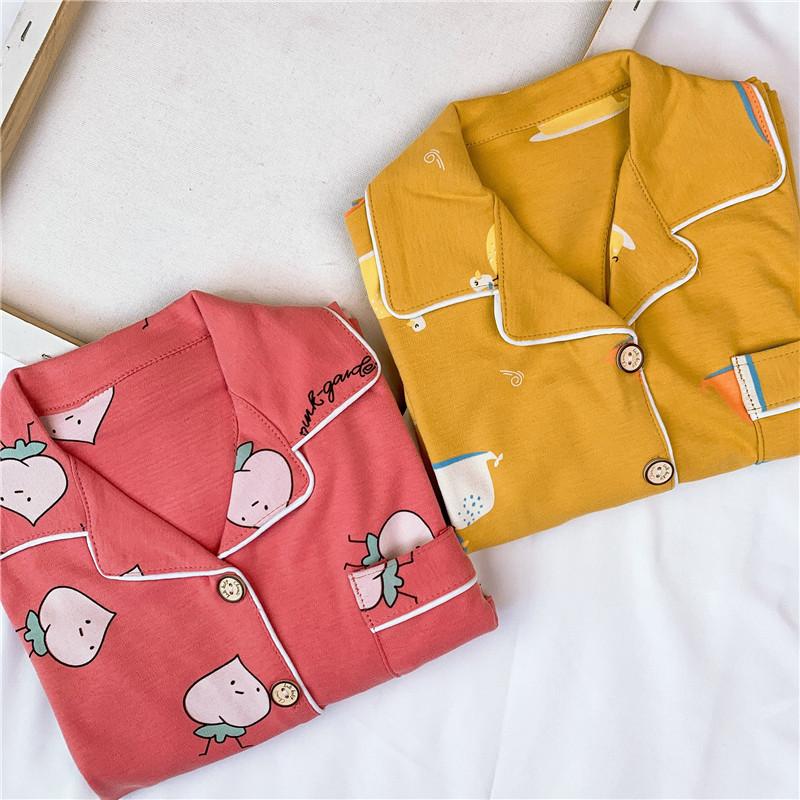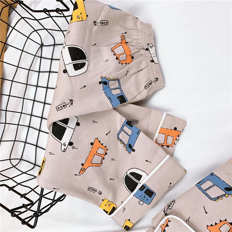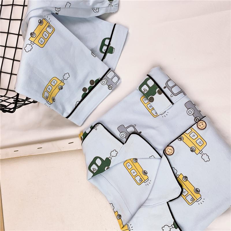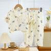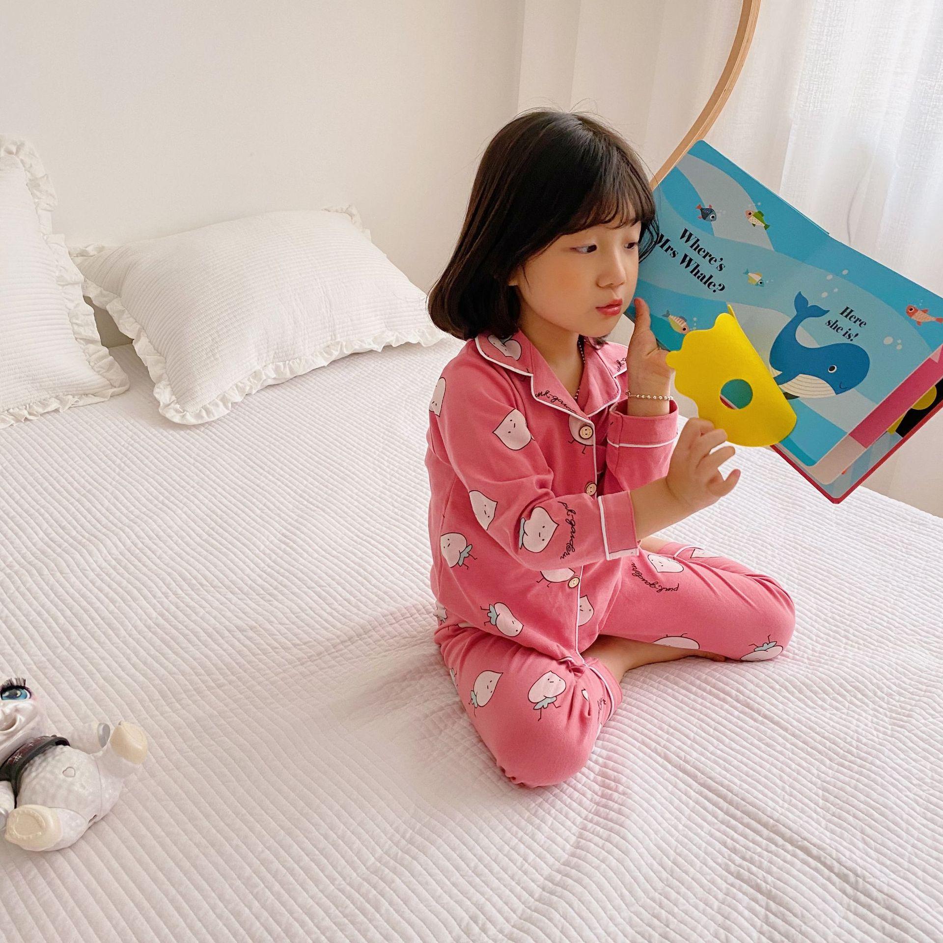 Dropshipping Pijama Cárdigan de Algodón Puro para Niños y Niñas Pijama de Dibujos Animados de Manga Larga con Solapa Conjunto de Ropa para el Hogar de Algodón
