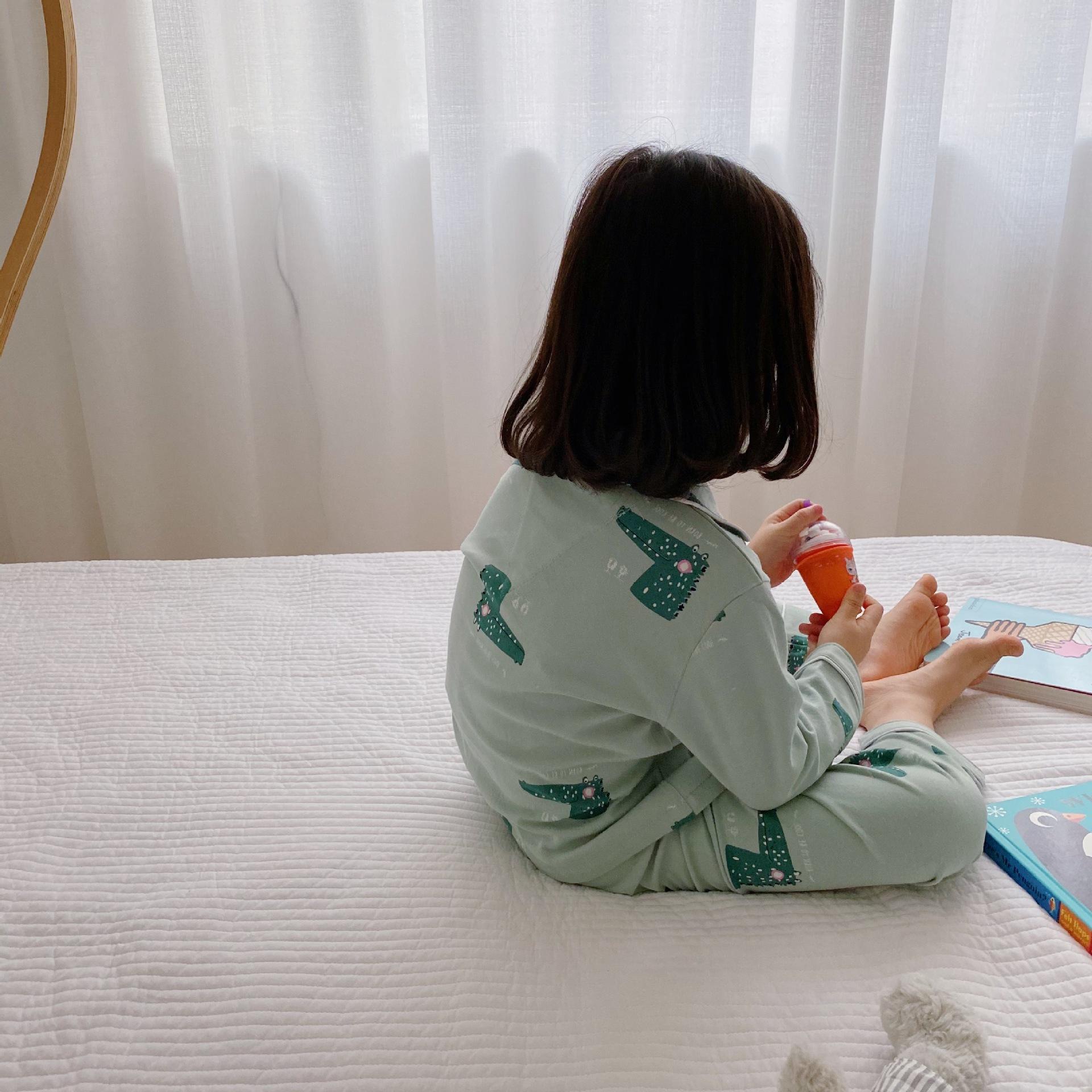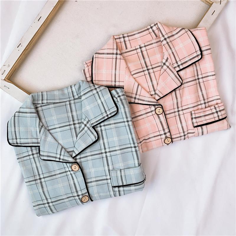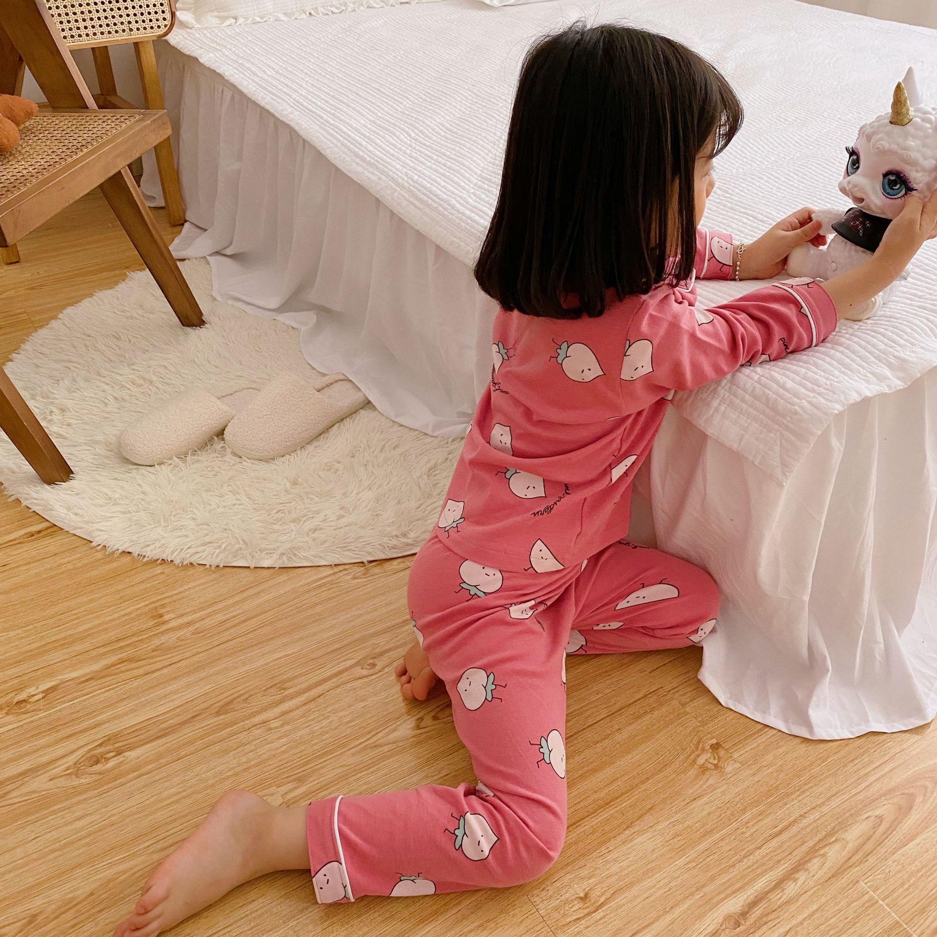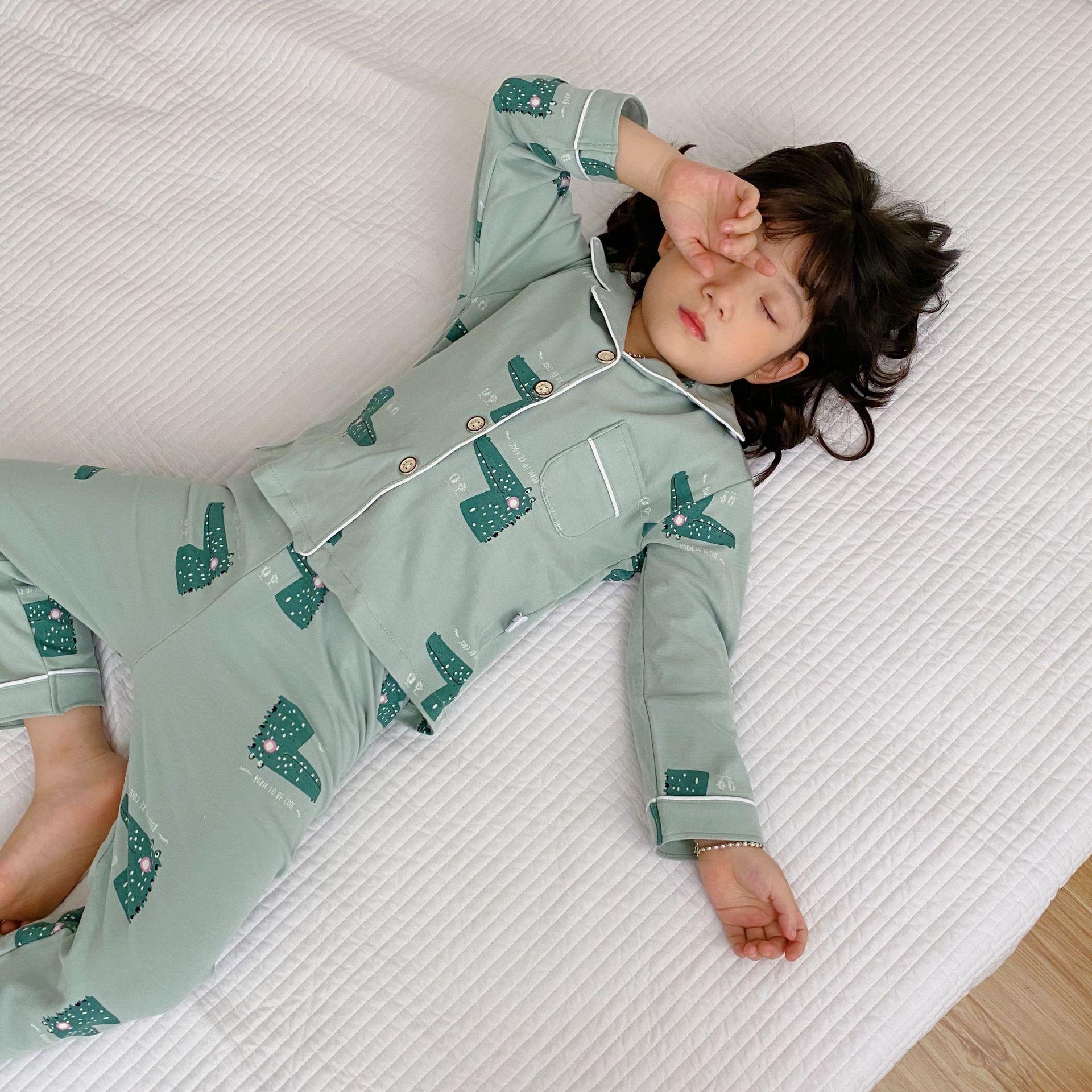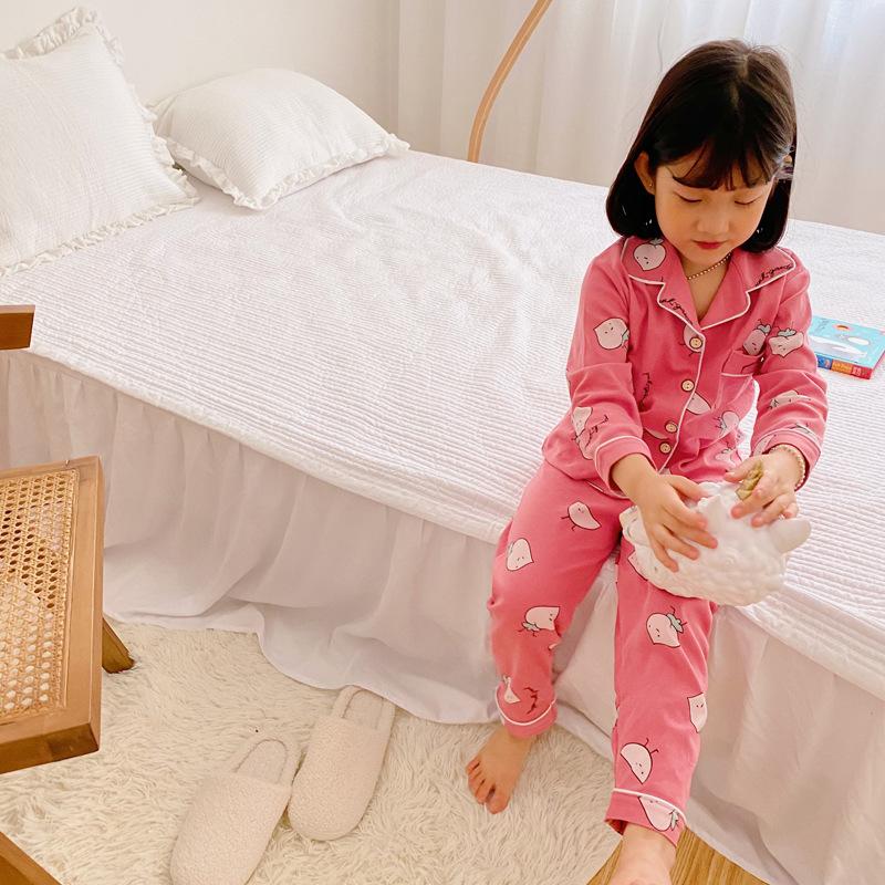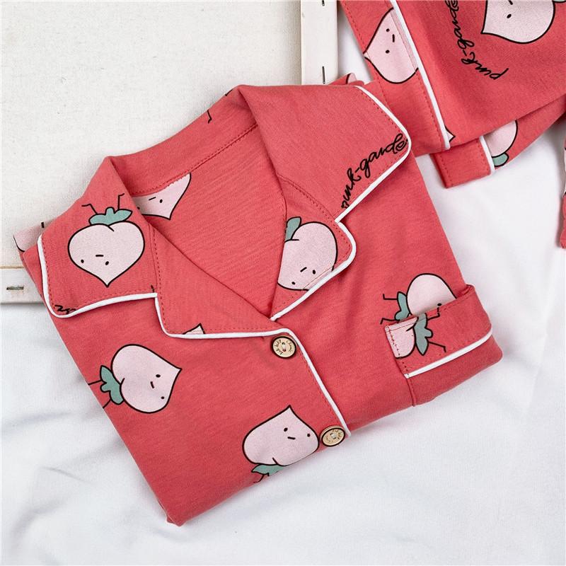 Dropshipping Pijama Cárdigan de Algodón Puro para Niños y Niñas Pijama de Dibujos Animados de Manga Larga con Solapa Conjunto de Ropa para el Hogar de Algodón