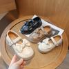Zapatos de cuero para niñas, primavera 2024, nuevos zapatos de princesa con lazo de perla para niñas, zapatos negros de suela suave para niños